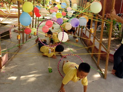 Các em tham gia các trò chơi lớn (có dụng cụ) bổ ích cho sự phát triển tinh thần và thể lực