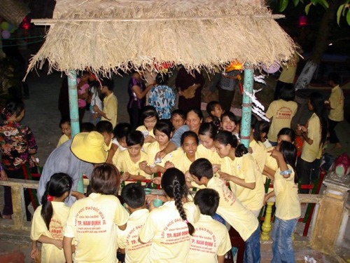 Hình ảnh Hội chợ quê em thật náo nhiệt tại sân chùa vào đêm cuối trước khi kết thúc khóa tu học
