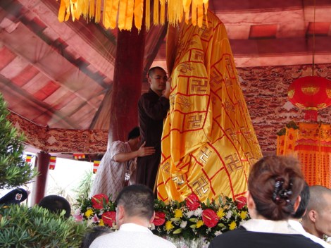 Khách VIP lễ Phật ngọc trước khi mở tấm vải phủ