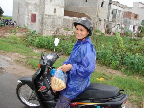 Xe ôm chở ba. Một chuyến xe vào chùa có giá khoảng 15.000 đồng