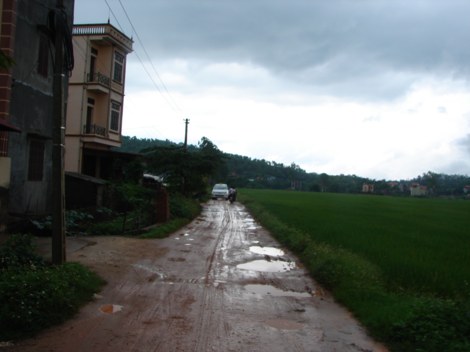 … nên người khách tham quan phải đi vào con đường làng lầy lội