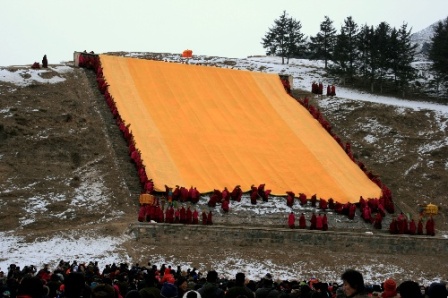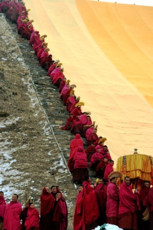 Chùm ảnh: bức tranh Phật lớn nhất thế giới tại lễ hội Shotan (Tây Tạng)