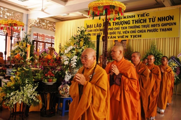 Các phái đoàn phúng viếng tang lễ gồm có: Chùa Phú Long – Quận Phú Nhuận, Ban Trị Sự PG Tỉnh Cần Thơ, Phân Ban Đặc Trách Ni giới Trung Ương và các tỉnh thành, Ban Trị Sự PG Tỉnh Bình Phước, Ban Trị Sự PG Tỉnh Long An, Bộ Công An, Ban đại diện PG.Quận 12, HĐND – UBND – UBMTTQ Quận 10, Ban đại diện PG.Quận10, Ban Trị Sự PG.Dak Nông, Ban Trị Sự PG.Tỉnh Vĩnh Long, Ban PG Quốc Tế TW, Học Viện PG.TP.Hồ Chí Minh (Hội Đồng điều hành + Hội Đồng Giáo sư + Trưởng Phó khoa + Nhân viên + Tăng Ni Sinh Khóa VIII & IX – Đào Tạo Từ Xa), Vietcombank TP.HCM, Chùa Bát Nhã – Quận Bình Thạnh.