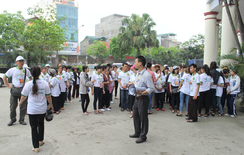 Hơn 8h00”, tại cổng chính của khách sạn, các Tiểu ban từ các nơi đã về tập trung. Lúc đầu, do lạ lẫm nên các TNV còn khá lộn xộn. Nhưng được sự điều hành của những người phụ trách, các TNV đó nhanh chóng ổn định trật tự và xếp hàng tại khu vực của Tiểu ban mình. Mọi người sẽ khó tìm thấy Tiểu ban của mình nếu không có những chiếc áo đồng phục chỉ dẫn. Mỗi màu áo đặc trưng cho một Tiểu ban, hòa quyện vào nhau trong một dòng chảy của tình thương yêu.
