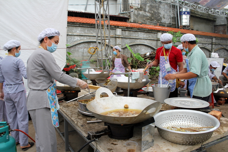 Do đóng tại khách sạn từ những hôm trước nên các Tiểu ban: Trai soạn, Hành đường, Y tế, Cơ động, Bảo vệ, v.v…đã không ngừng làm việc để phục vụ. Ngày nào cũng từ 4h00” sáng cho đến rất khuya tại khu bếp nấu ăn, các cô chú Phật tử trong các Tiểu ban dưới sự điều phối của Chư Tăng Ni Thiền Tôn Phật Quang đã miệt mài xắt – gọt – nấu nướng, chế biến bao món ăn ngon, bổ dưỡng, hợp vệ sinh nhằm phục vụ cho khách tham dự.