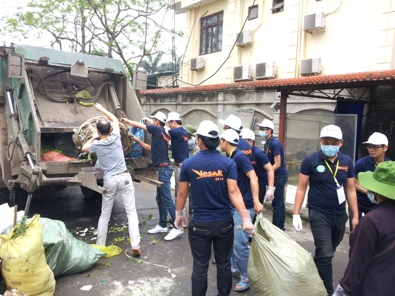 Gần Cổng phụ của khách sạn, chúng tôi gặp Bác Nguyễn Thị Thu – 74 tuổi – Pháp danh Thanh Tâm Hậu đến từ Hải Phòng (Phật tử chùa Phật Quang). Bác ở Tiểu ban Vệ sinh nên công việc chủ yếu là thu gom và phân loại rác. Bác nói rằng: “Rác nào có thể tái chế và sử dụng thì không nên lãng phí. Bằng không sẽ có tội”. Vì vậy, khi mọi người gom rác, Bác lại ngồi phân loại. Bác Thanh Tâm Hậu cho biết công việc này Bác thực hiện hằng ngày, ngay cả khi ở nhà. Tiền bán phế liệu từ việc phân loại rác, Bác gom để dành đem đi làm từ thiện giúp đỡ bệnh nhân ung thư.