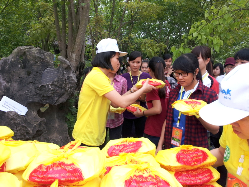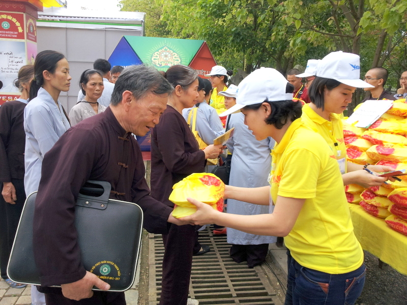 Không quản trời mưa, các tình nguyện viên sau khi nhận thẻ đều nhanh chóng bắt tay vào thực hiện nhiệm vụ của mình. Mọi công việc đều được thực hiện khẩn trương, chuẩn bị chu đáo cho buổi khai mạc Đại lễ Vesak 2014 vào ngày mai.