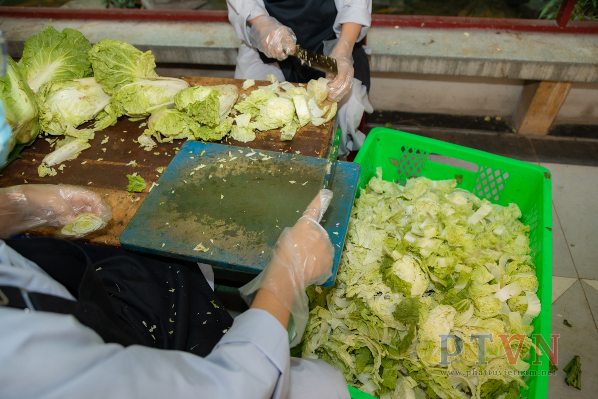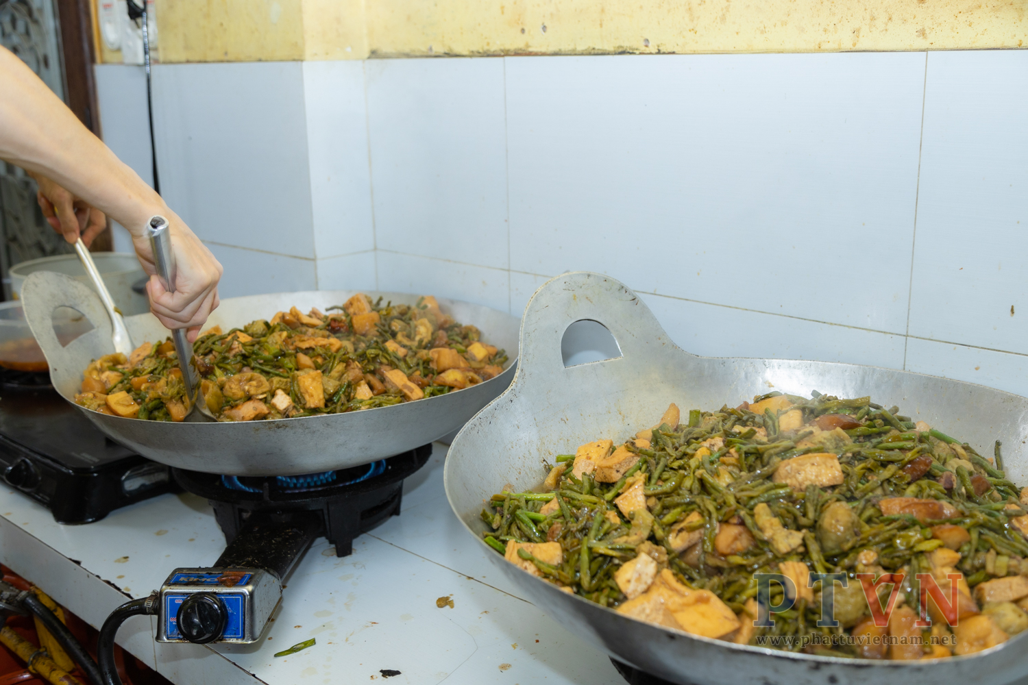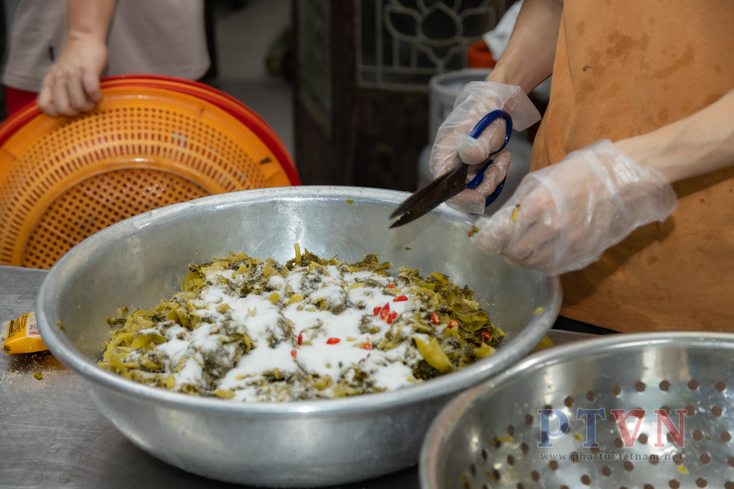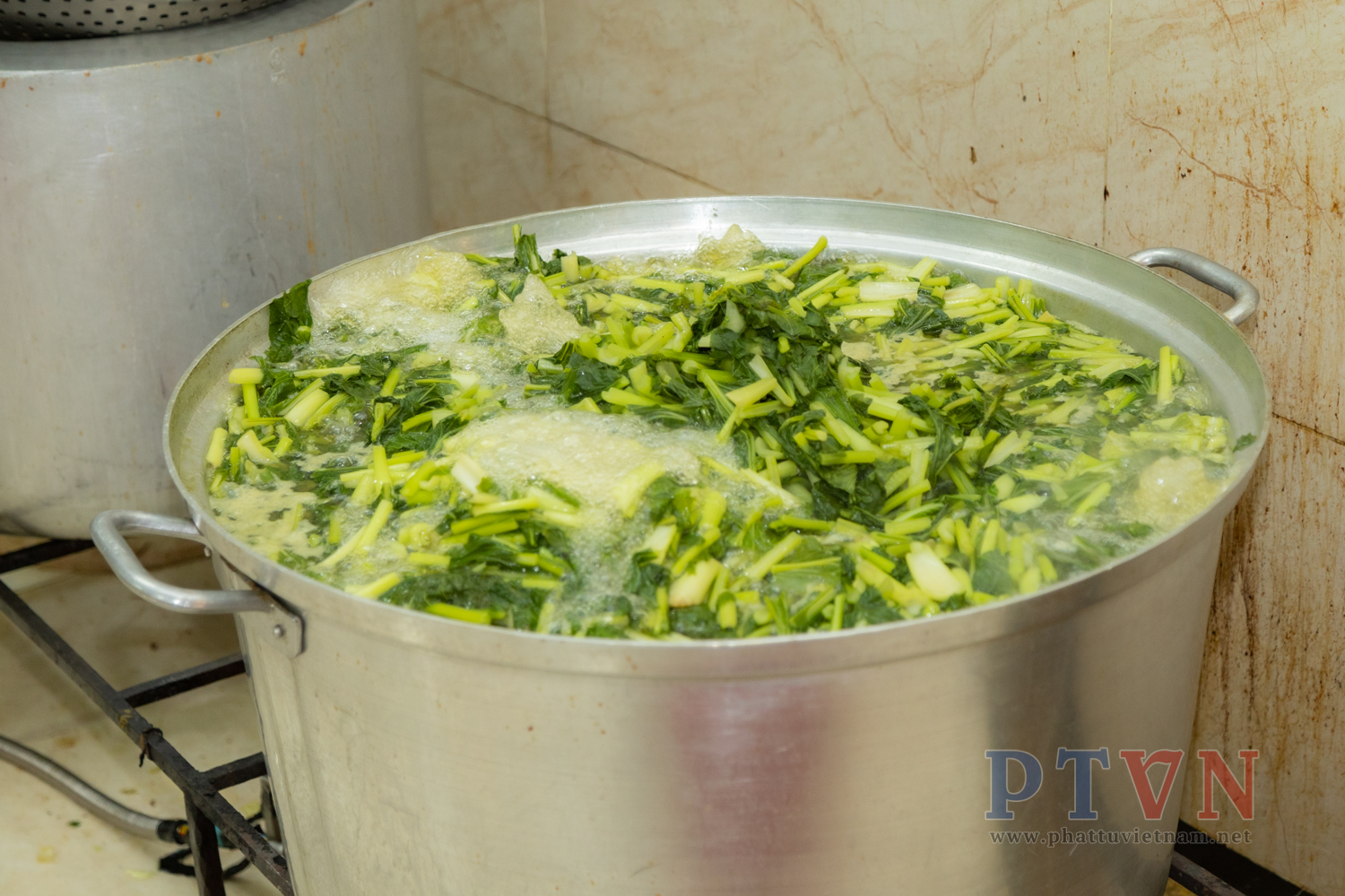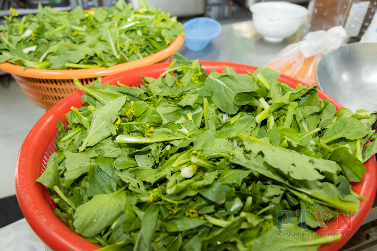 Công việc của bếp ăn tại chùa phân chia cụ thể theo từng khâu vận chuyển, sơ chế, xào nấu, đóng hộp,… được thực hiện bởi hơn 90 vị Tăng Ni và hơn 120 Phật tử, tình nguyện viên. Toàn bộ nhân sự tham gia phục vụ bếp ăn được bố trí nơi ăn ngủ tại chùa. Mỗi ngày, bếp ăn sử dụng hơn 1,2 tấn gạo.