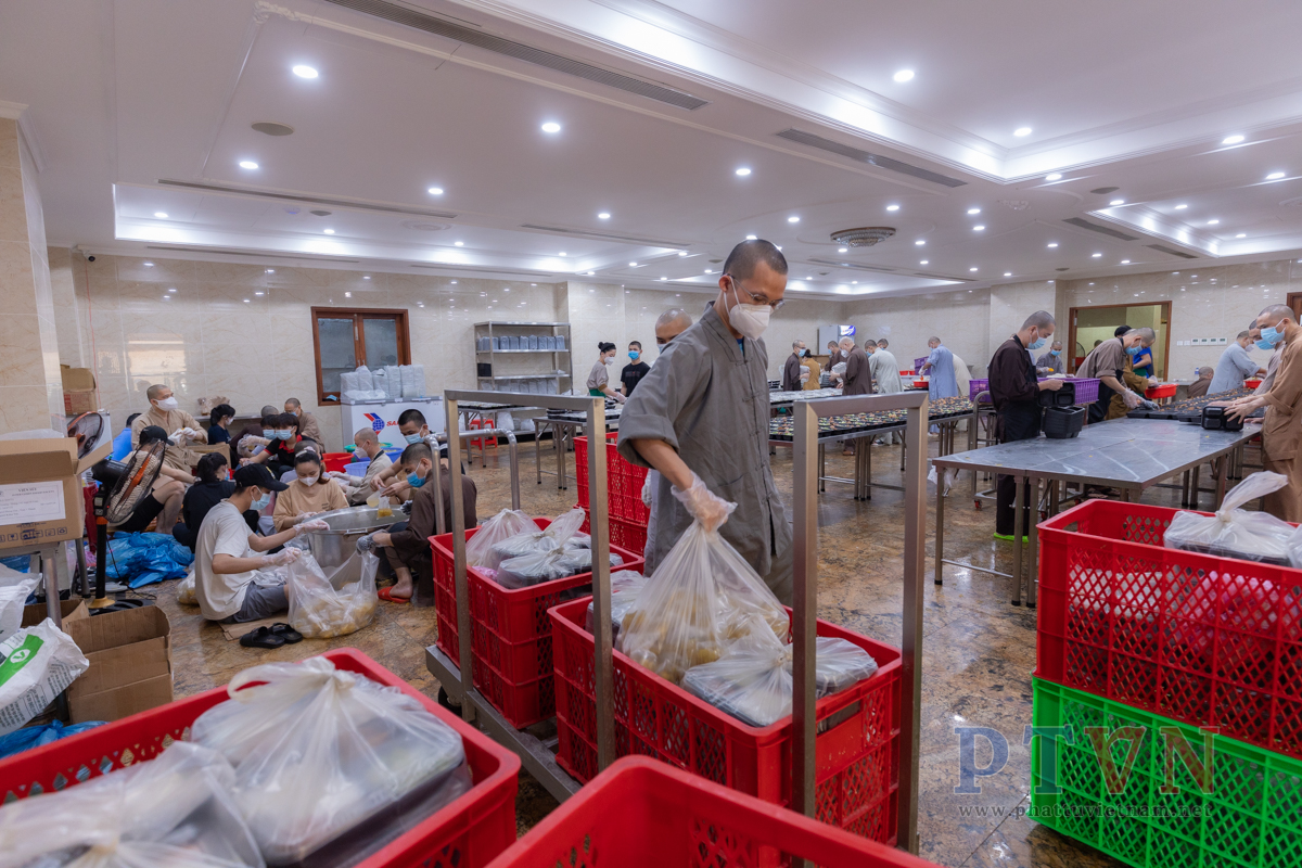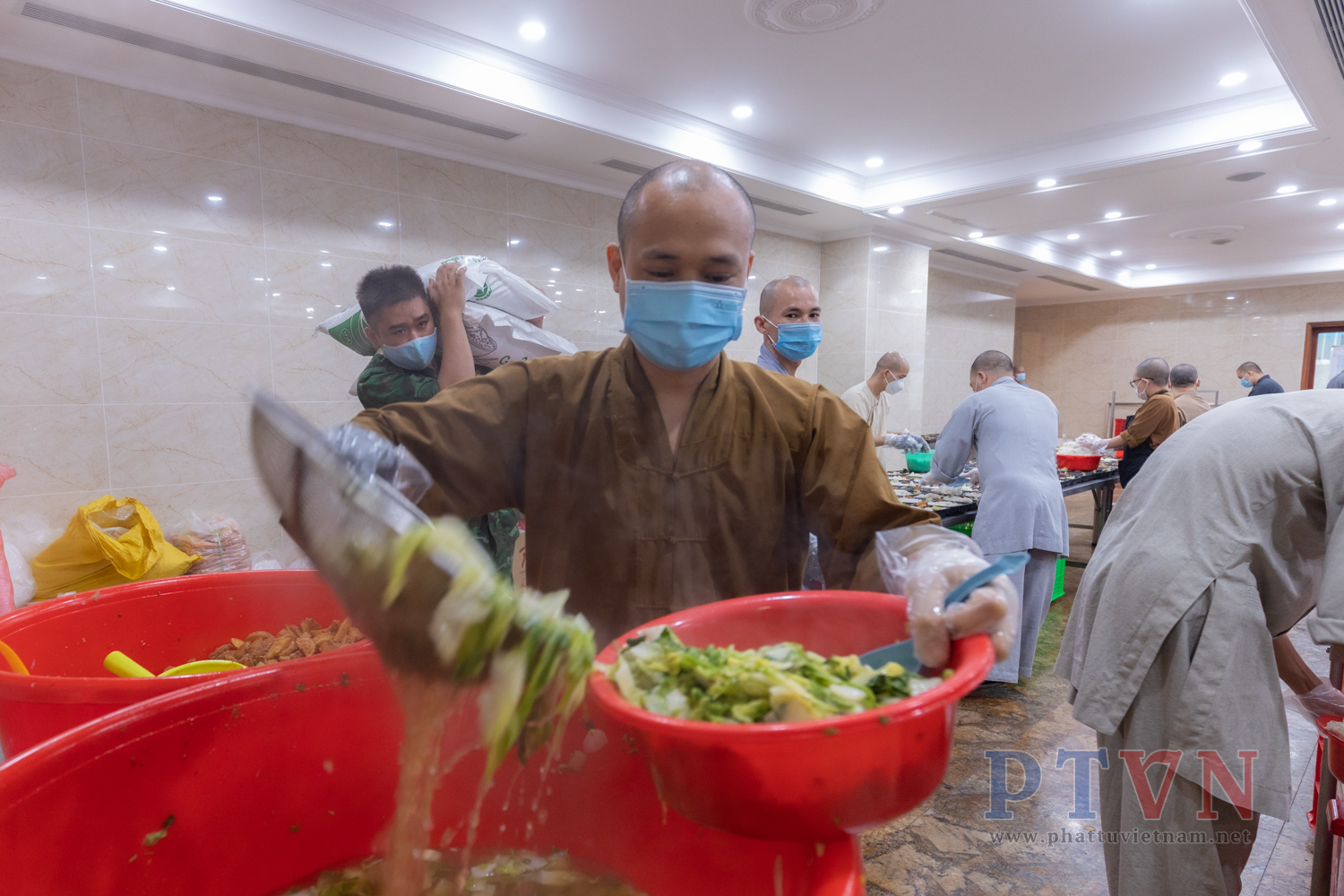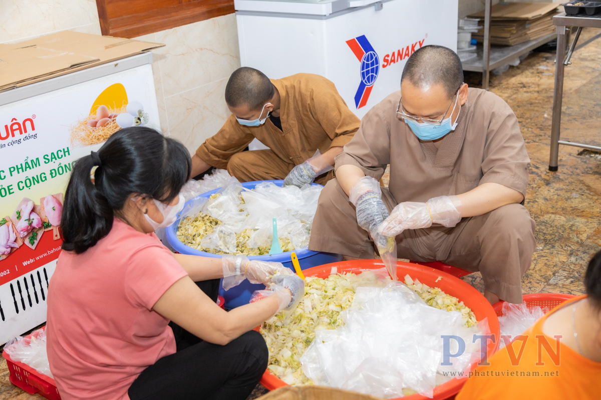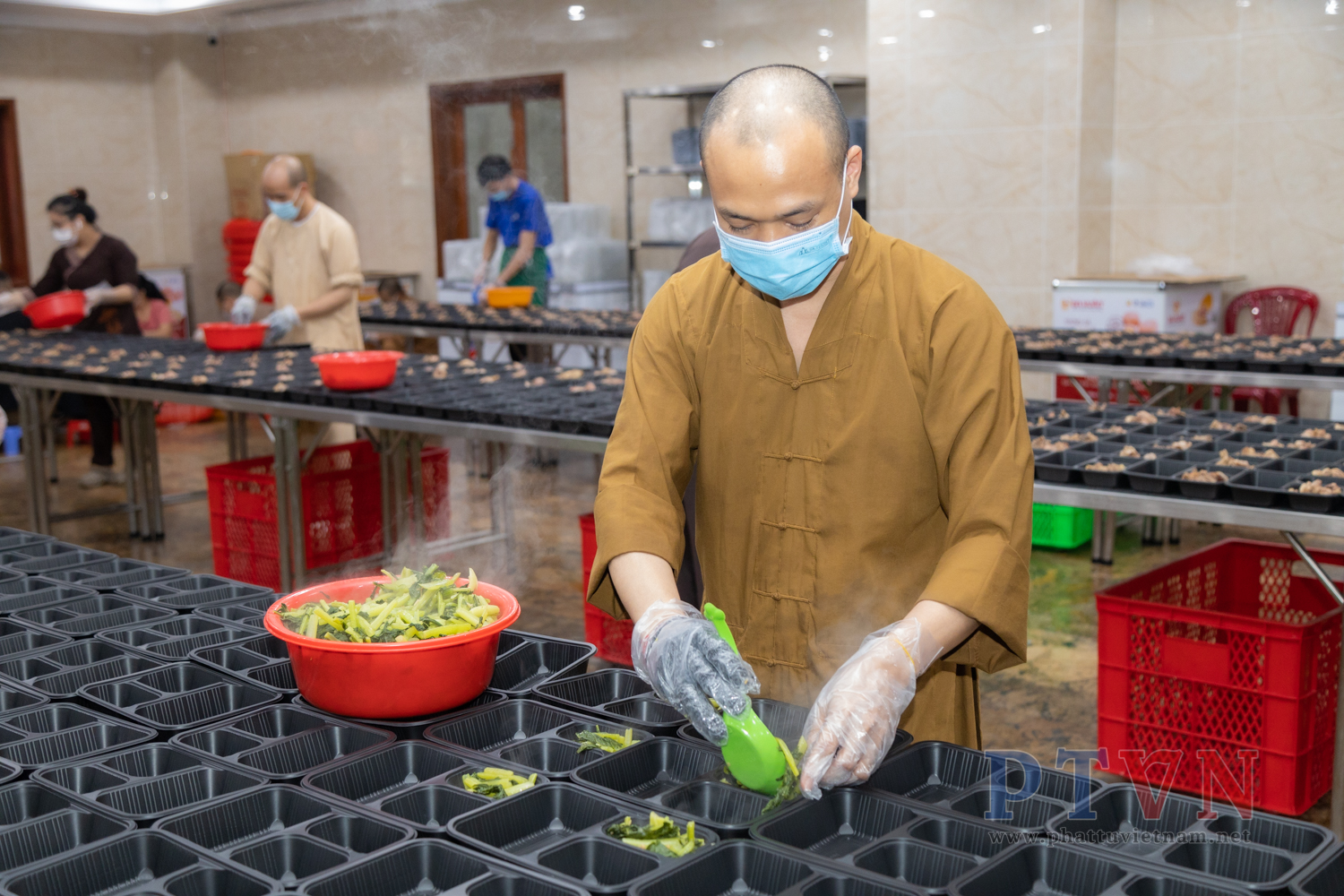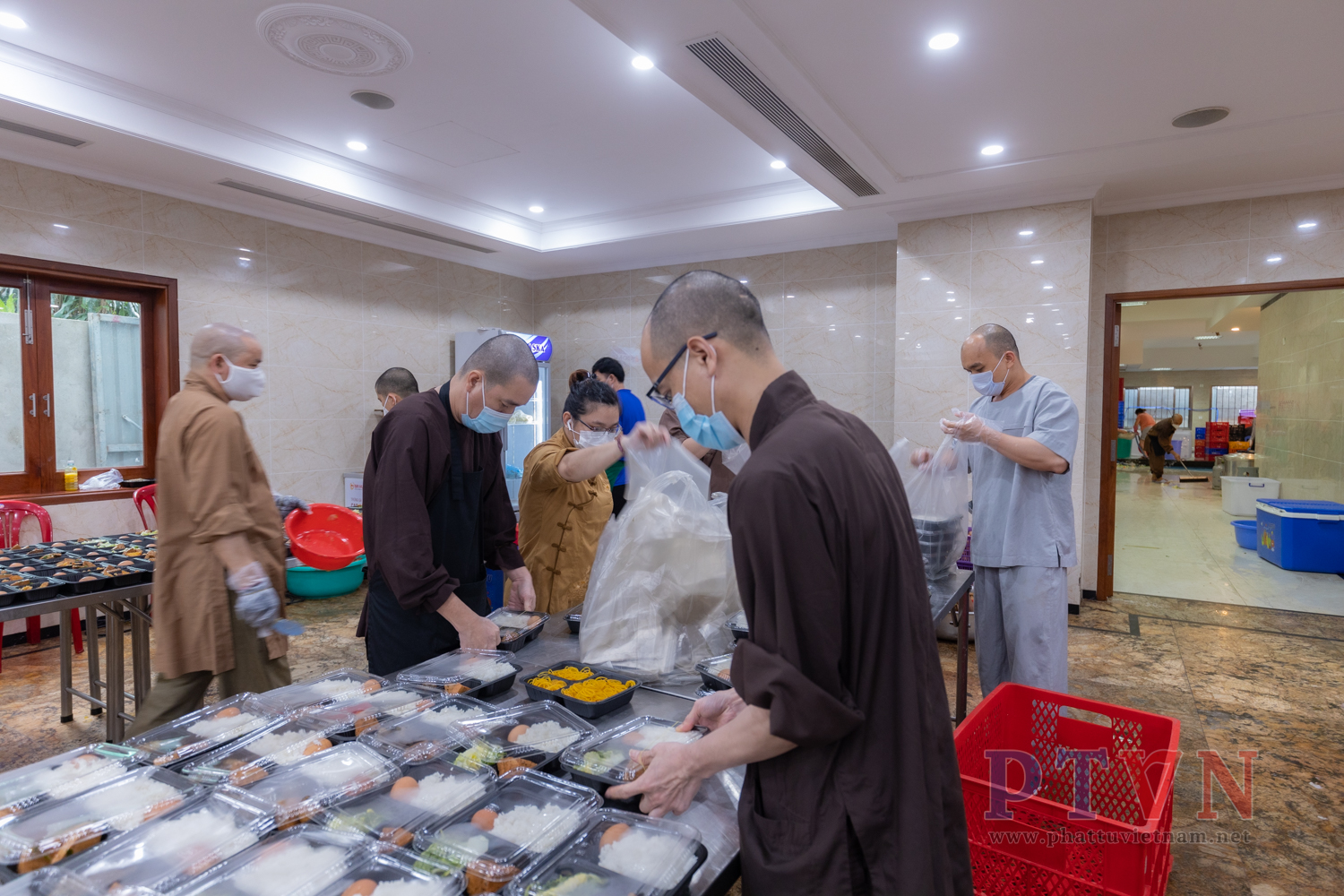 Ngoài việc đều đặn chuẩn bị các bữa ăn trong ngày cho các đơn vị tuyến đầu, các khu cách ly tập trung, thời gian này nhà chùa còn đảm trách toàn bộ các suất ăn chay cho chư Tăng, Ni đang điều trị tại Bệnh viện dã chiến thu dung điều trị Covid-19 số 10; hỗ trợ thực phẩm cho một số chùa ở các khu vực khác trên địa bàn thành phố, trao 10.000 túi thuốc hỗ trợ đến các trường hợp F0 điều trị tại nhà, nhằm chung tay chia sẻ áp lực cho tuyến đầu chống dịch.
