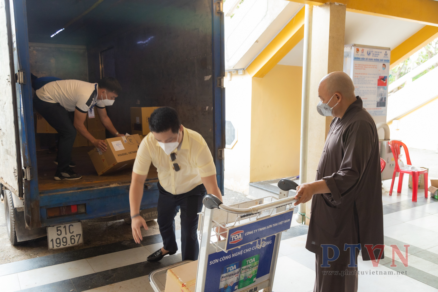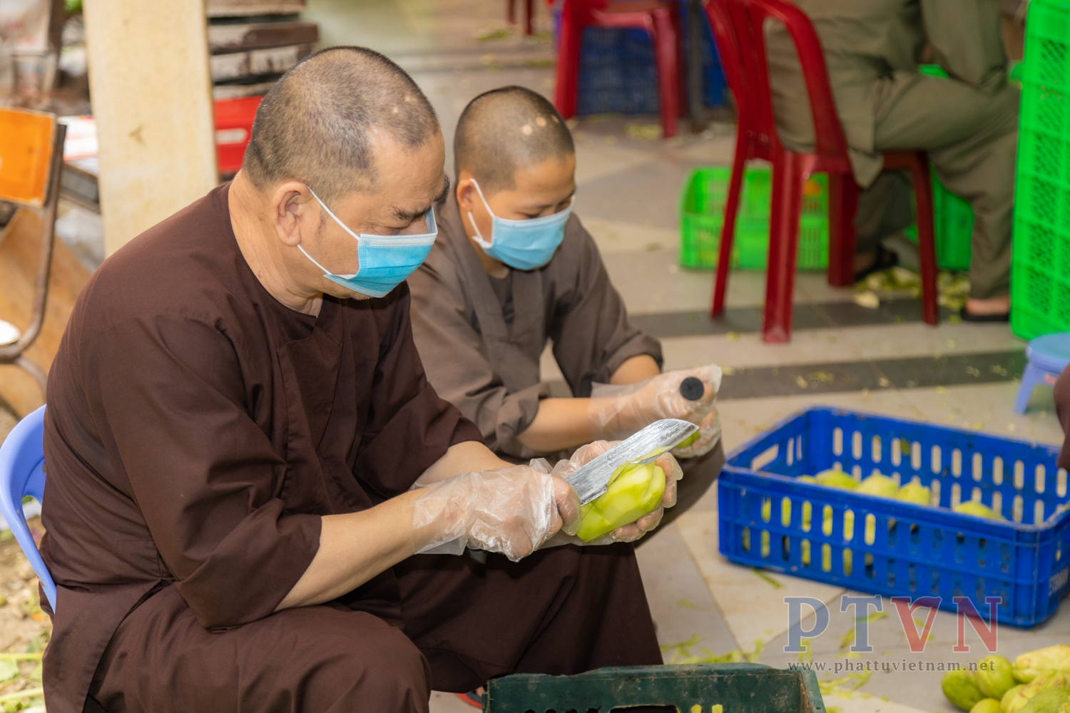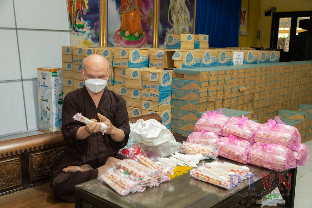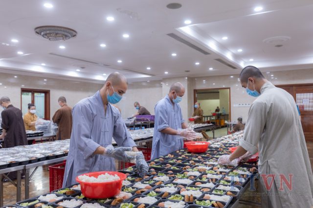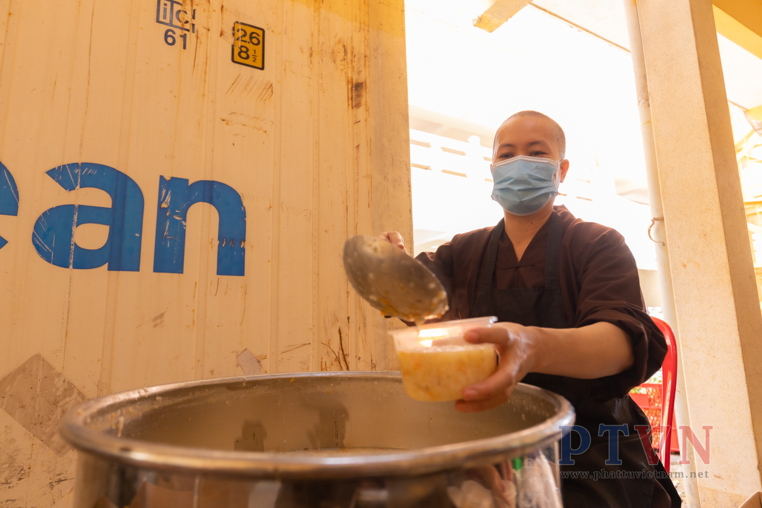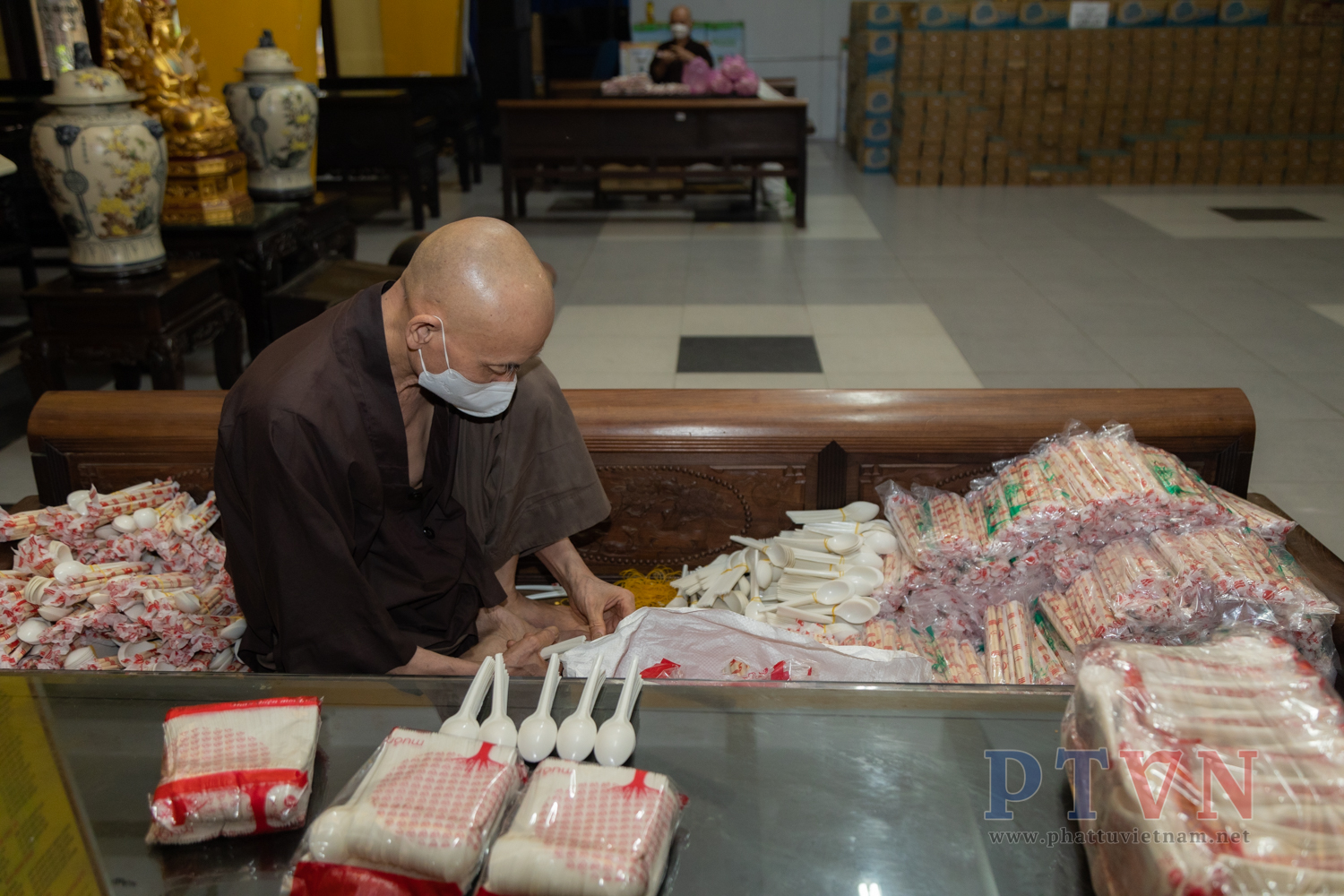 Ngoài việc đều đặn chuẩn bị các bữa ăn trong ngày cho các đơn vị tuyến đầu, các khu cách ly tập trung, thời gian này nhà chùa còn đảm trách toàn bộ các suất ăn chay cho chư Tăng, Ni đang điều trị tại Bệnh viện dã chiến thu dung điều trị Covid-19 số 10; hỗ trợ thực phẩm cho một số chùa ở các khu vực khác trên địa bàn thành phố, trao 10.000 túi thuốc hỗ trợ đến các trường hợp F0 điều trị tại nhà, nhằm chung tay chia sẻ áp lực cho tuyến đầu chống dịch.