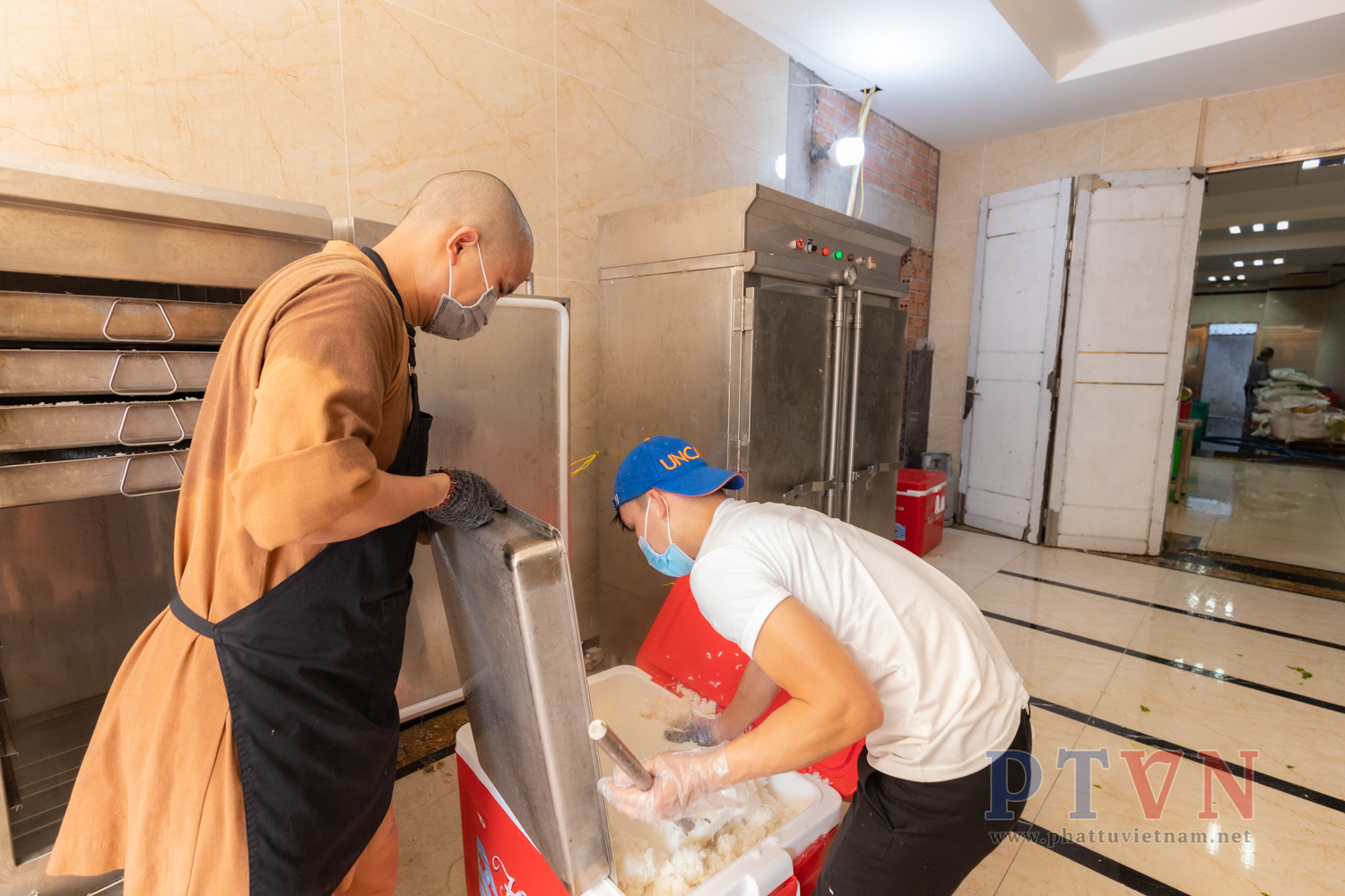 PTVN – Vài ngày sau khi TP.HCM bắt đầu giãn cách xã hội theo chỉ thị 16, kể từ ngày 14/7, tại khu nhà mới xây trong khuôn viên chùa Vĩnh Nghiêm được sử dụng làm bếp dã chiến đến nay nấu gần 10.000 suất cơm mỗi ngày gửi đến đội ngũ y tế, tình nguyện viên và góp phần chăm lo bà con, bệnh nhân ở các trung tâm cách ly tập trung, bệnh viện dã chiến điều trị Covid-19 trên địa bàn thành phố.