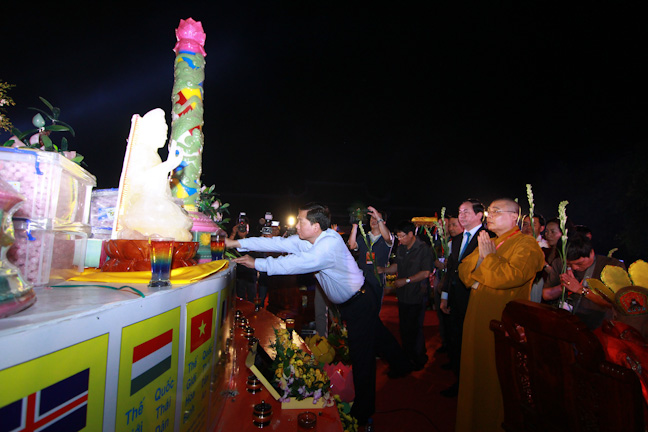 Cung thỉnh chứng minh và tham dự chương trình có sự hiện diện HT. Thích Thanh Đạm, HT. Thích Thanh Nhiễu, HT. Thích Trí Quảng, đức Tăng vương Campuchia Tep Vong, TS. Buma Simmaphom Lào, Quốc vương Toro, Lama Lobzang – Secretary Genaral of UNDV, TS. Dhammarattana. Về phía lãnh đạo đảng, nhà nước có sự tham dự của Bộ trưởng bộ tài chính Đinh Tiến Dũng, Bộ trưởng Bộ Giao thông Vận tải Đinh La Thăng, Bí thư tỉnh Ủy tỉnh Ninh Bình Nguyễn Thị Thanh cùng chư tôn đức tăng ni, quý vị đại biểu trong cũng như ngoài nước, các vị chức sắc lãnh đạo đảng, nhà nước Việt Nam, khoảng 500 bạn tình nguyện viên và gần 10.000 Phật tử cùng tham dự đại lễ.