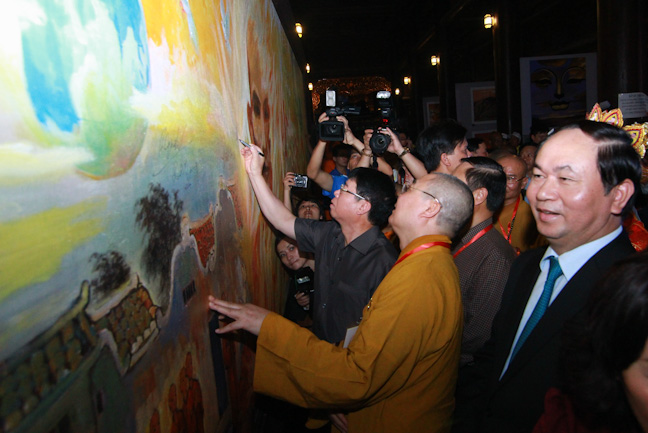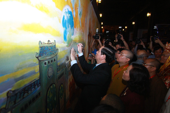 Cuối chương trình, BTC cung thỉnh chư tôn đức tăng ni các nước, lãnh đạo đảng, nhà nước ký vào bức tranh “Hòa bình” do 10 họa sĩ tại TP.HCM thực hiện. Đây là bức tranh được BTC tặng lại cho nhà nước Việt Nam, trở thành bức thông điệp tâm linh về ước mơ hòa bình vĩnh cửu trong lòng những người con dân nước Việt.