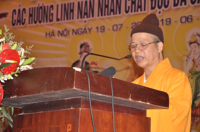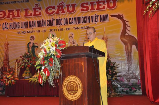 Đại lễ tưởng niệm cầu siêu các nạn nhân chất độc da cam – dioxin là dịp để toàn xã hội và những người yêu công lý, yêu hoà bình ở Việt Nam cũng như bạn bè quốc tế hiểu và biết thêm về những thảm hoạ da cam – dioxin trong chiến tranh Việt Nam. Trong lời phát biểu khai mạc, Thượng tọa Thích Thanh Nhiễu – Phó chủ tịch HĐTS TW GHPGVN đã thay mặt Giáo hội nói lên sự sẻ chia của cộng đồng nói chung và của Giáo hội Phật giáo Việt Nam nói riêng với nỗi đau của những nạn nhân chất độc màu da cam, những nạn nhân do hậu quả của cuộc chiến tranh chống Mỹ năm xưa gây nên.