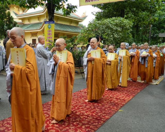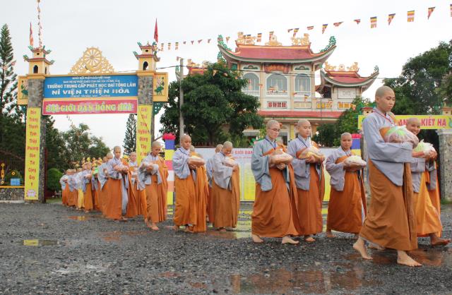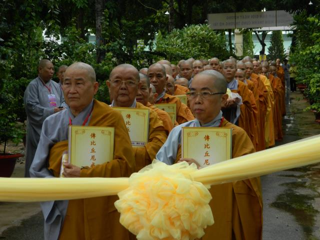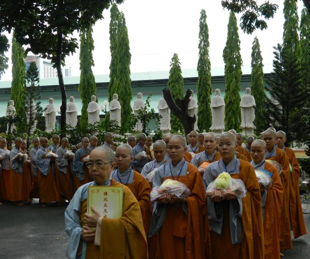 Đúng 14 giờ, chư giới tử thọ Tỳ-kheo ni với tinh thần đầu đội trời, chân đạp đất, y hậu trang nghiêm, mang theo 3 y, bình bát, tọa cụ,…thứ tự bộ hành qua giới trường Tăng, một lòng thiết tha cần cầu chánh giới. Nhìn thấy chư Ni thiết tha cầu pháp, vượt mọi gian nan để có được giới thể cho mình, hình ảnh đó thật cảm động, thật thiêng liêng.