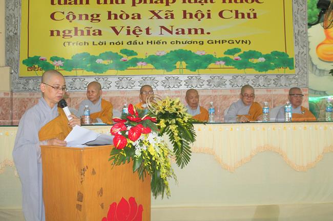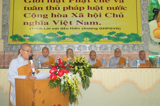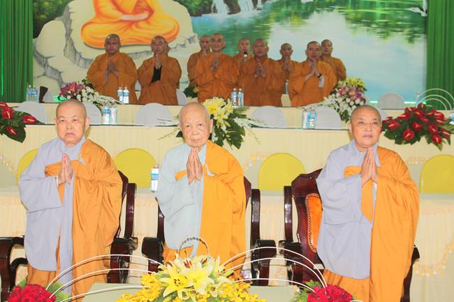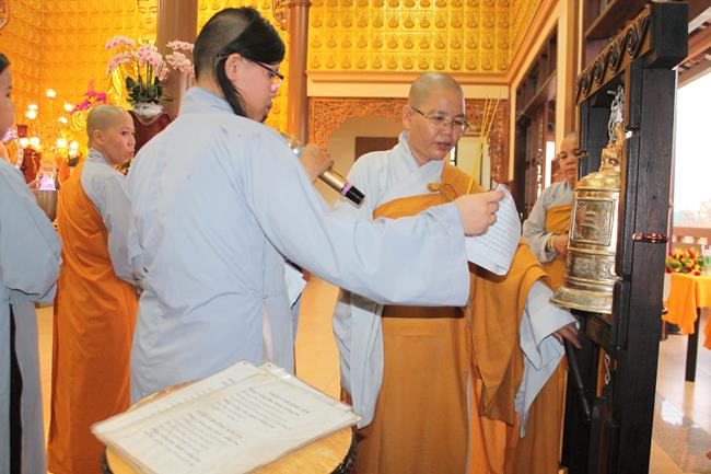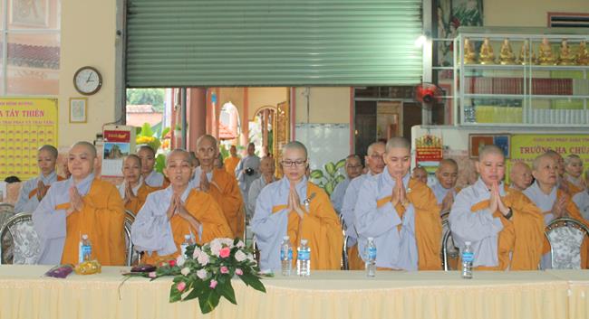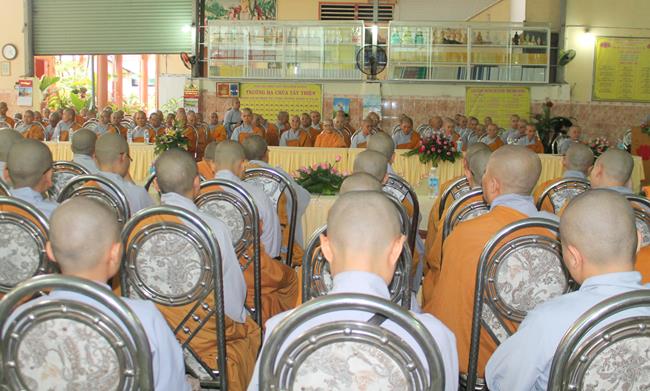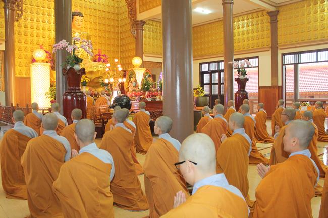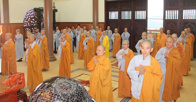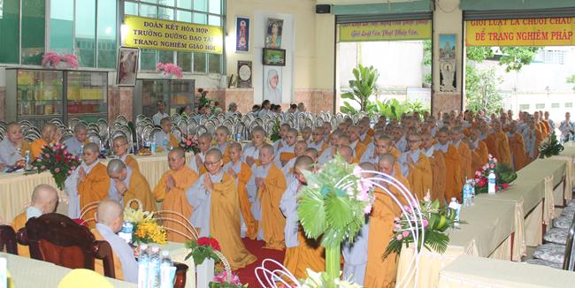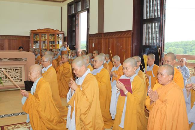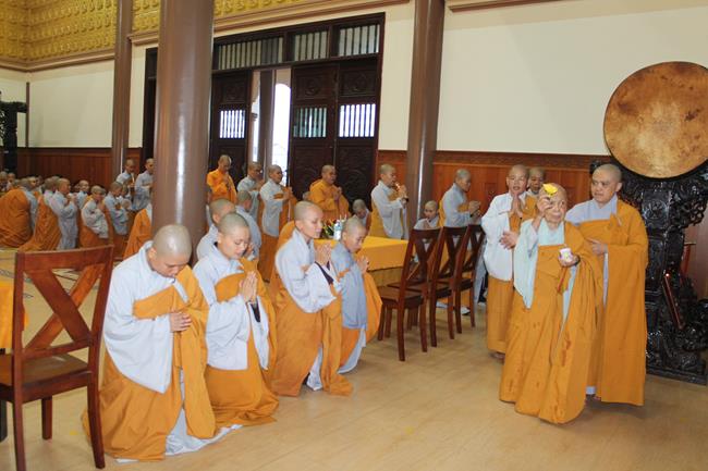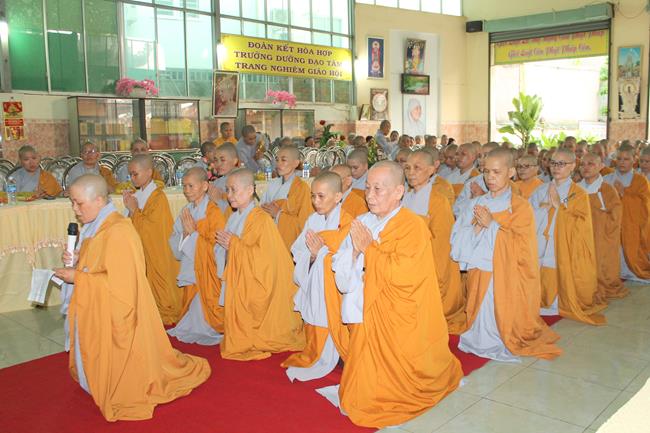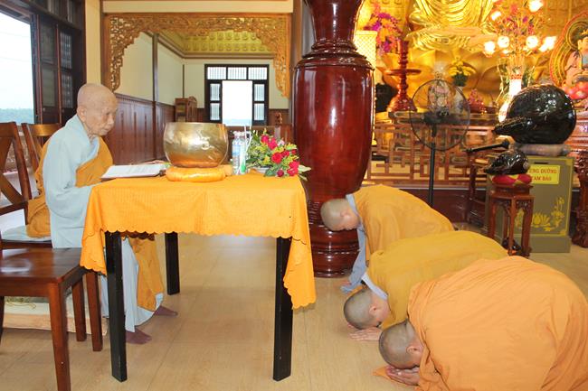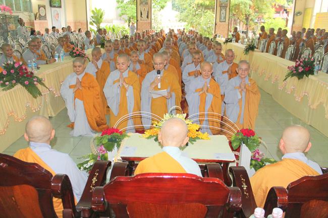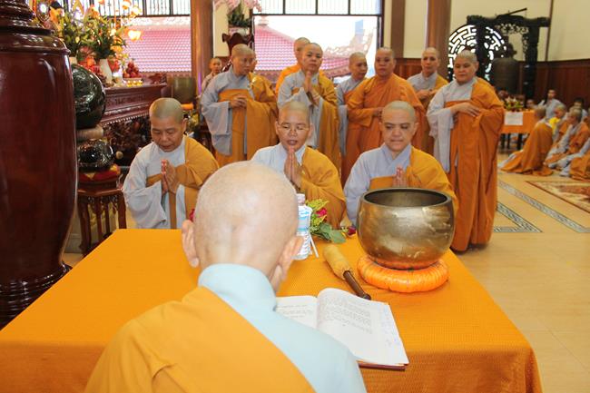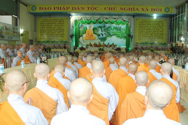 Buổi khai hạ diễn ra trong không khí trang nghiêm theo nghi thức quy cũ thiền môn, tuyên đọc thanh quy, cung an chức sự, đạo từ của Hòa thượng Trưởng Ban Trị sự đến với tất cả hành giả an cư.