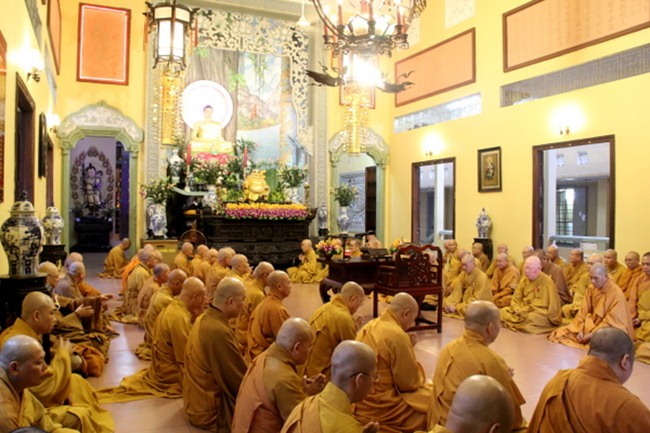 Sau khi bố tát xong, Chư tôn đức tiếp tục tham dự Hội nghị tổng kết Phật sự 2015 và đề ra phương hướng hoạt động năm 2016.