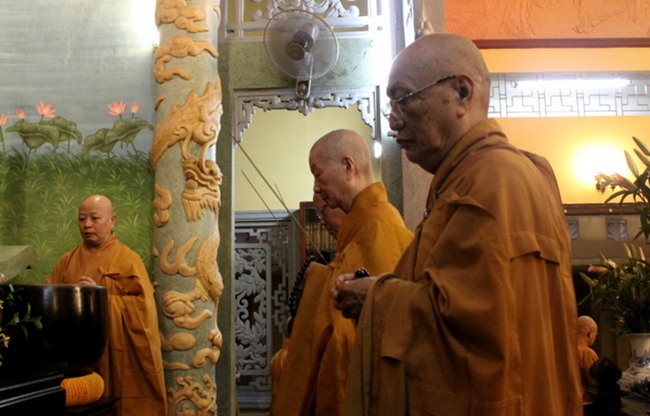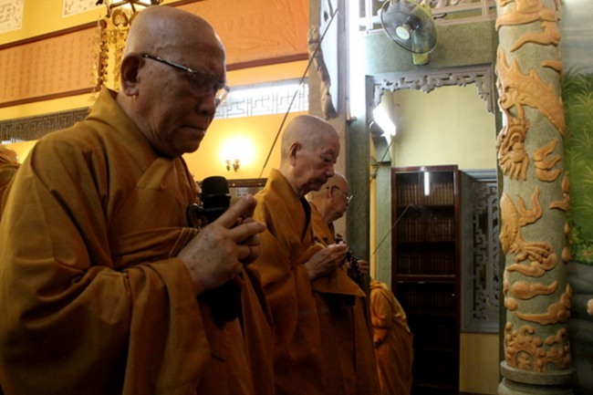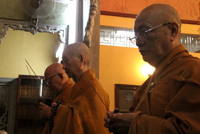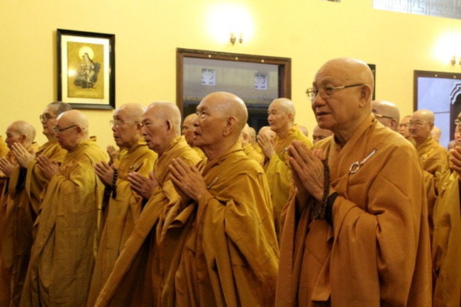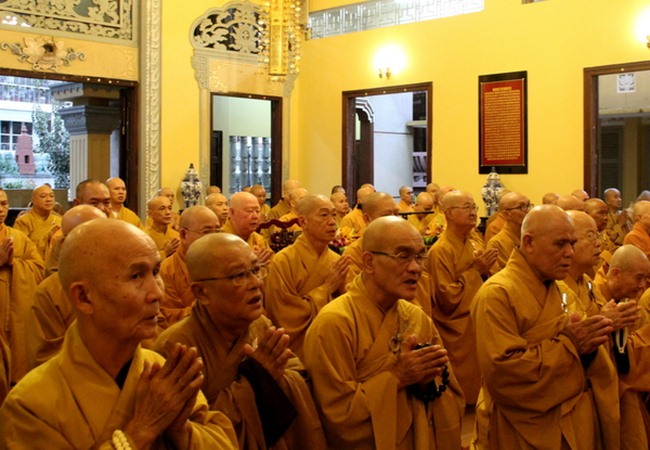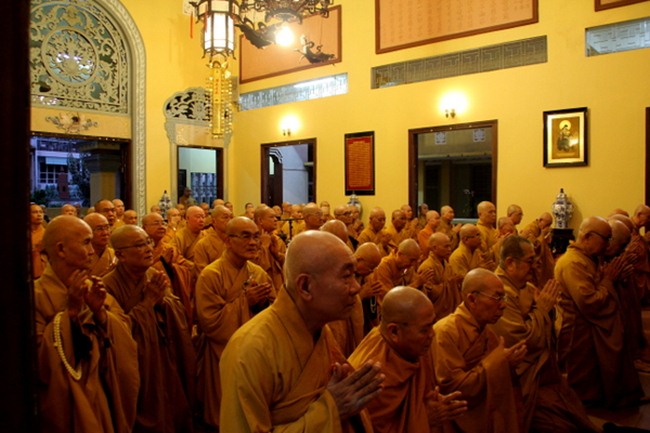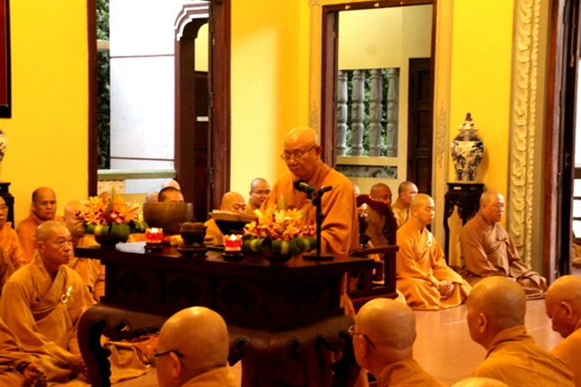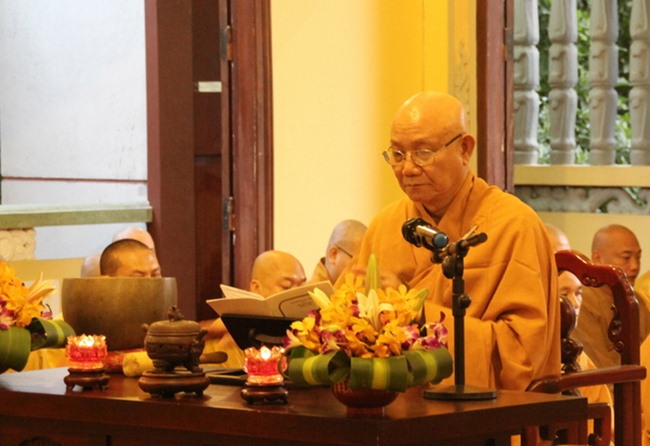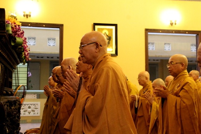 Buỗi lễ bố tát này, có sự hiện diện của chư tôn đức Ban Thượng Trực, Đại diện các ban ngành trực thuộc, chư tôn đức 24 quận huyện.