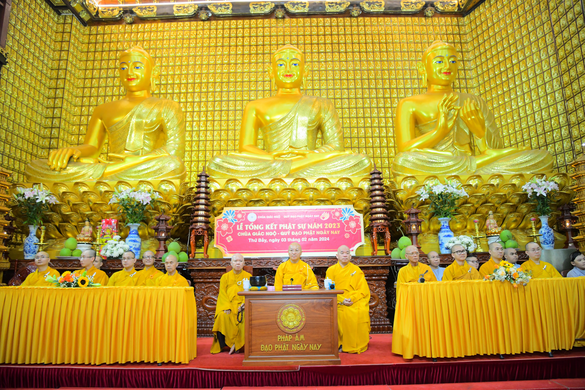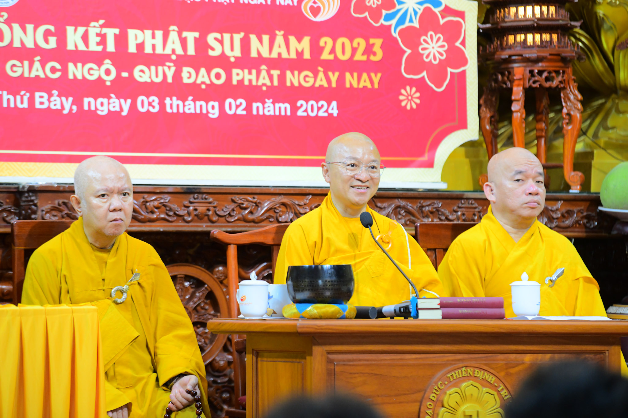 Ban lời đạo từ tại lễ tổng kết, TT. Thích Nhật Từ hoan hỷ tán dương sự cố gắng của tập thể Tăng đoàn, Ni đoàn, Quỹ Đạo Phật Ngày Nay và quý Phật tử chùa Giác Ngộ. Thượng toạ nhấn mạnh các thành tựu Phật sự đã đạt được trên 04 lĩnh vực: (1) Đào tạo Tăng, Ni. (2) Các hoạt động văn hoá. (3) Các hoạt động thể hiện giá trị cốt lõi của chùa. (4) Sử dụng các giá trị bổ trợ.