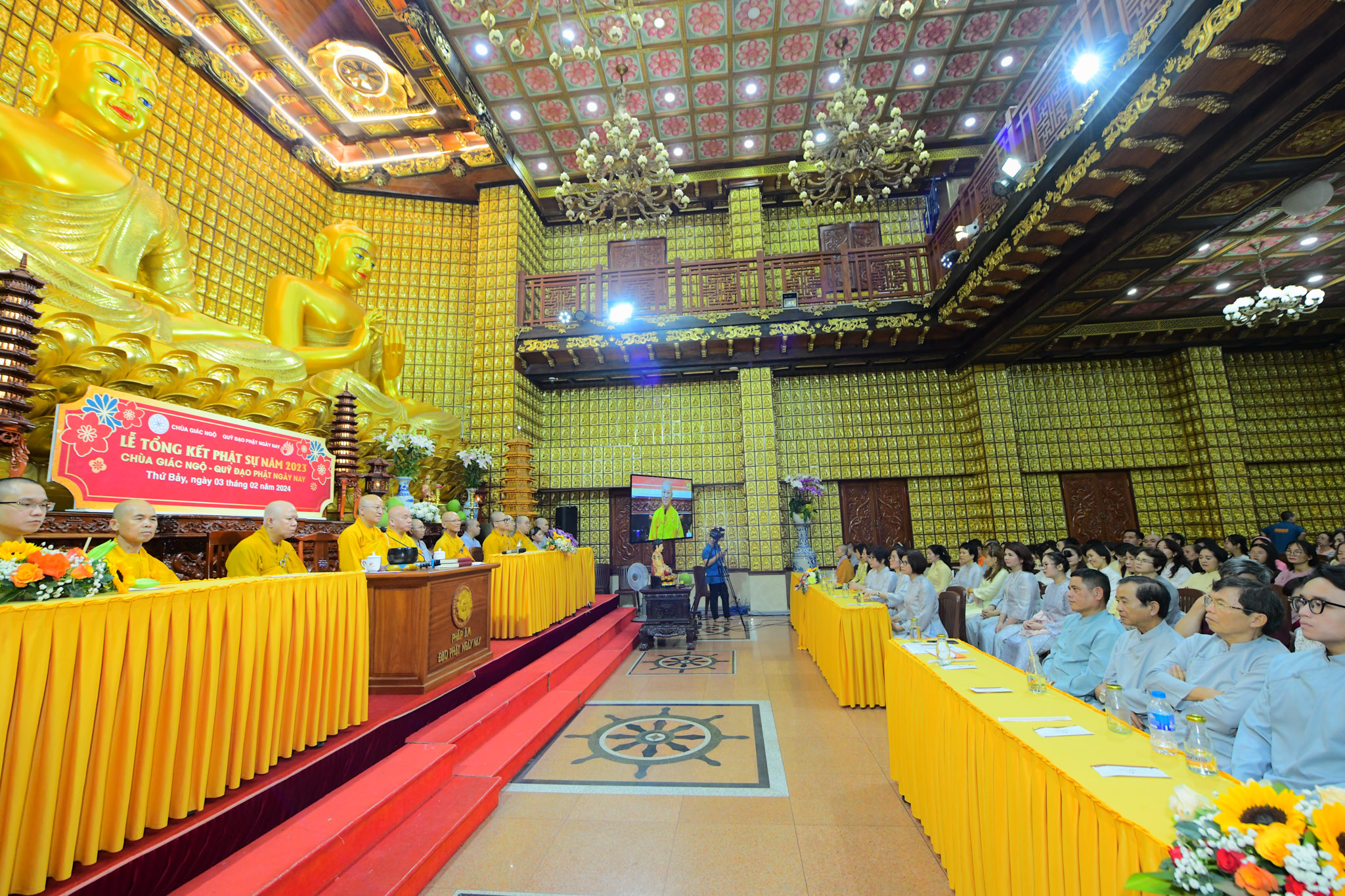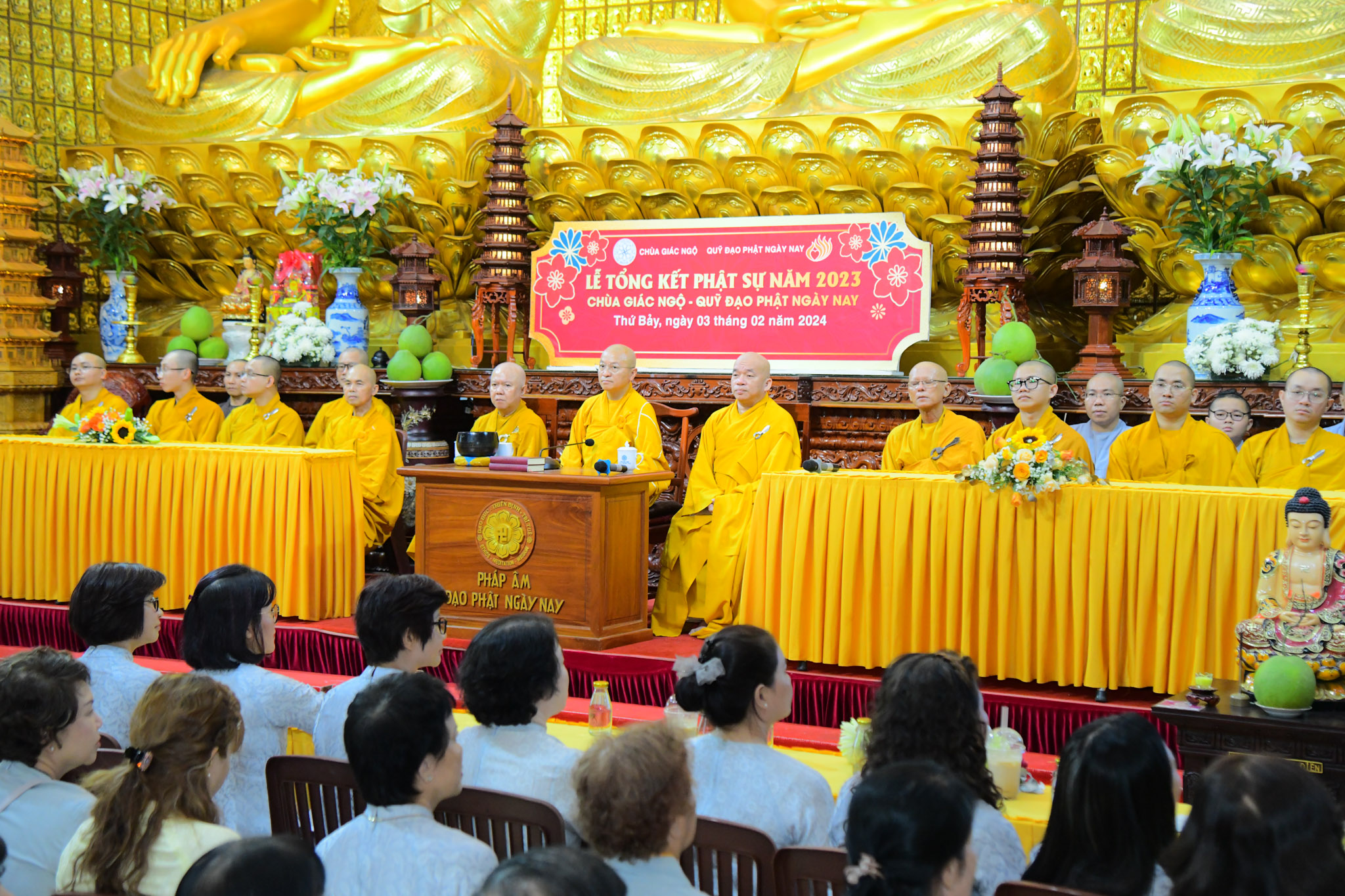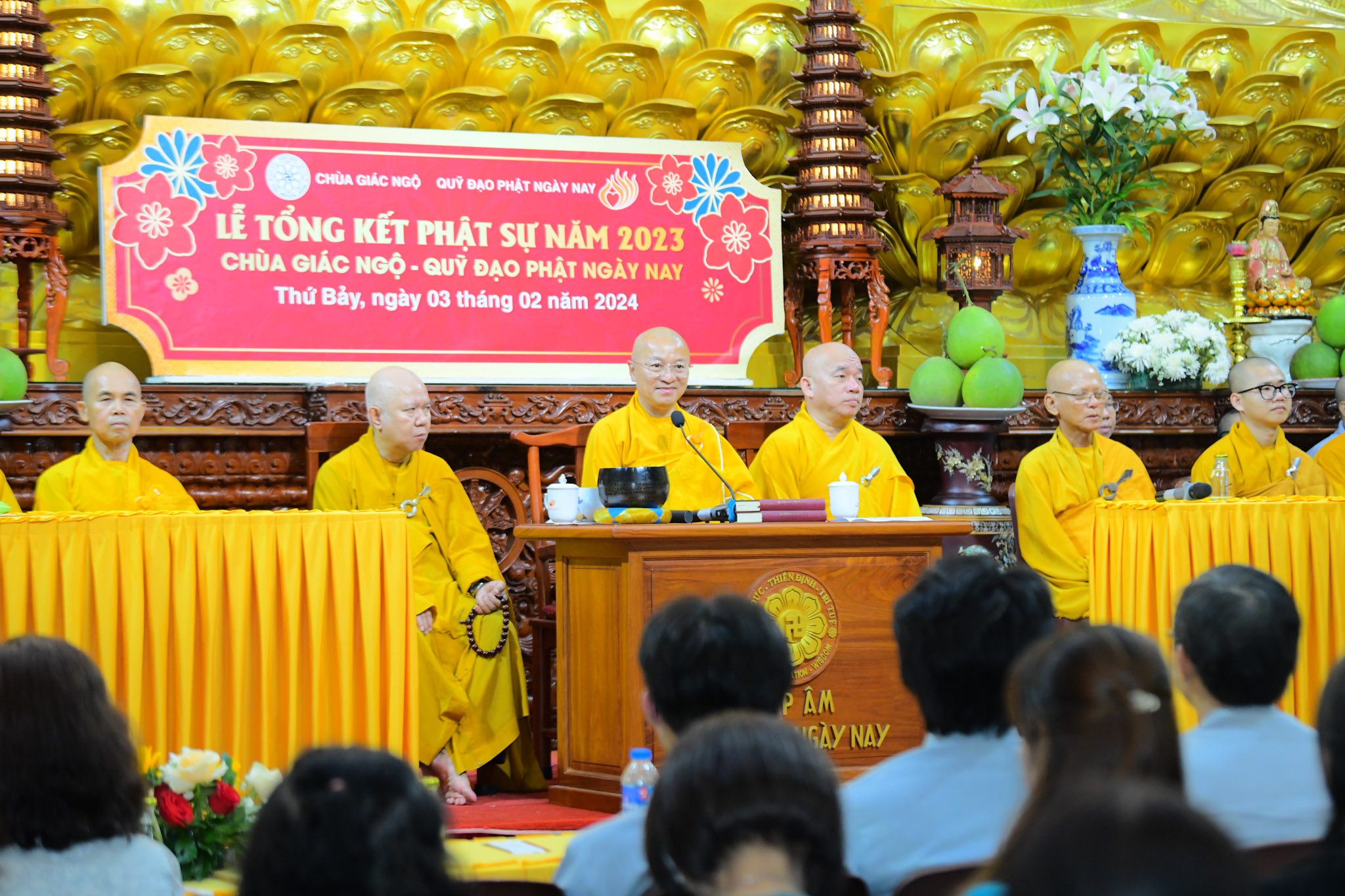Ban lời đạo từ tại lễ tổng kết, TT. Thích Nhật Từ hoan hỷ tán dương sự cố gắng của tập thể Tăng đoàn, Ni đoàn, Quỹ Đạo Phật Ngày Nay và quý Phật tử chùa Giác Ngộ. Thượng toạ nhấn mạnh các thành tựu Phật sự đã đạt được trên 04 lĩnh vực: (1) Đào tạo Tăng, Ni. (2) Các hoạt động văn hoá. (3) Các hoạt động thể hiện giá trị cốt lõi của chùa. (4) Sử dụng các giá trị bổ trợ.