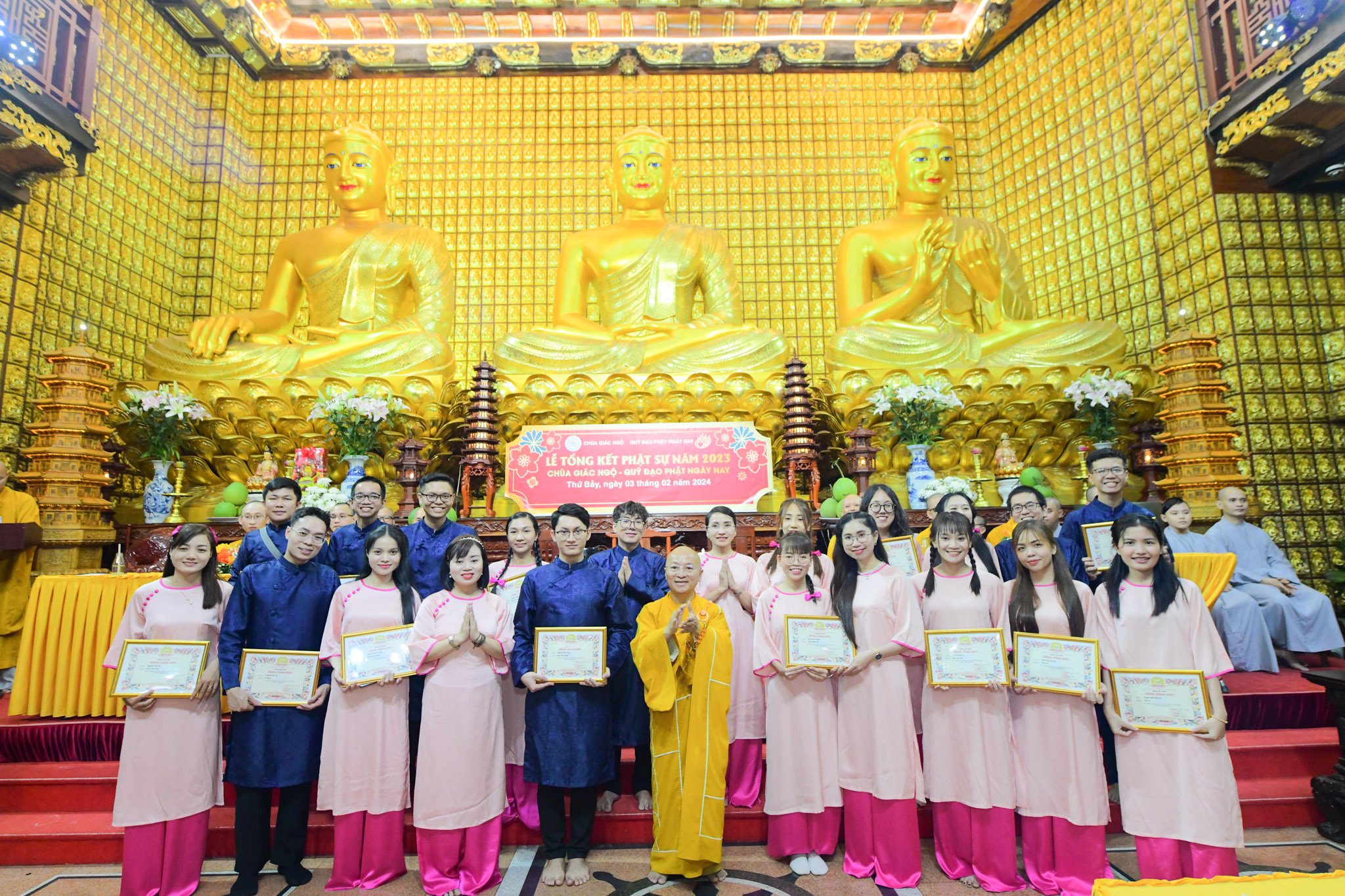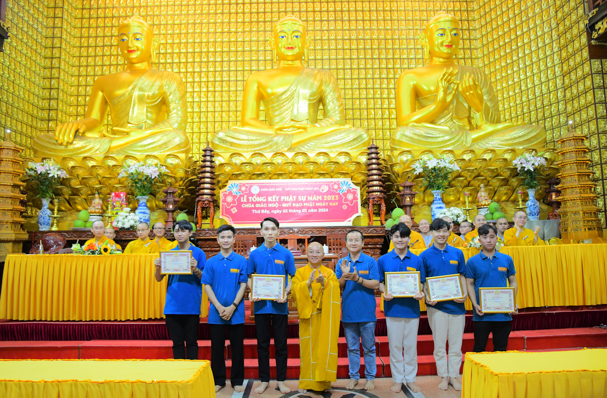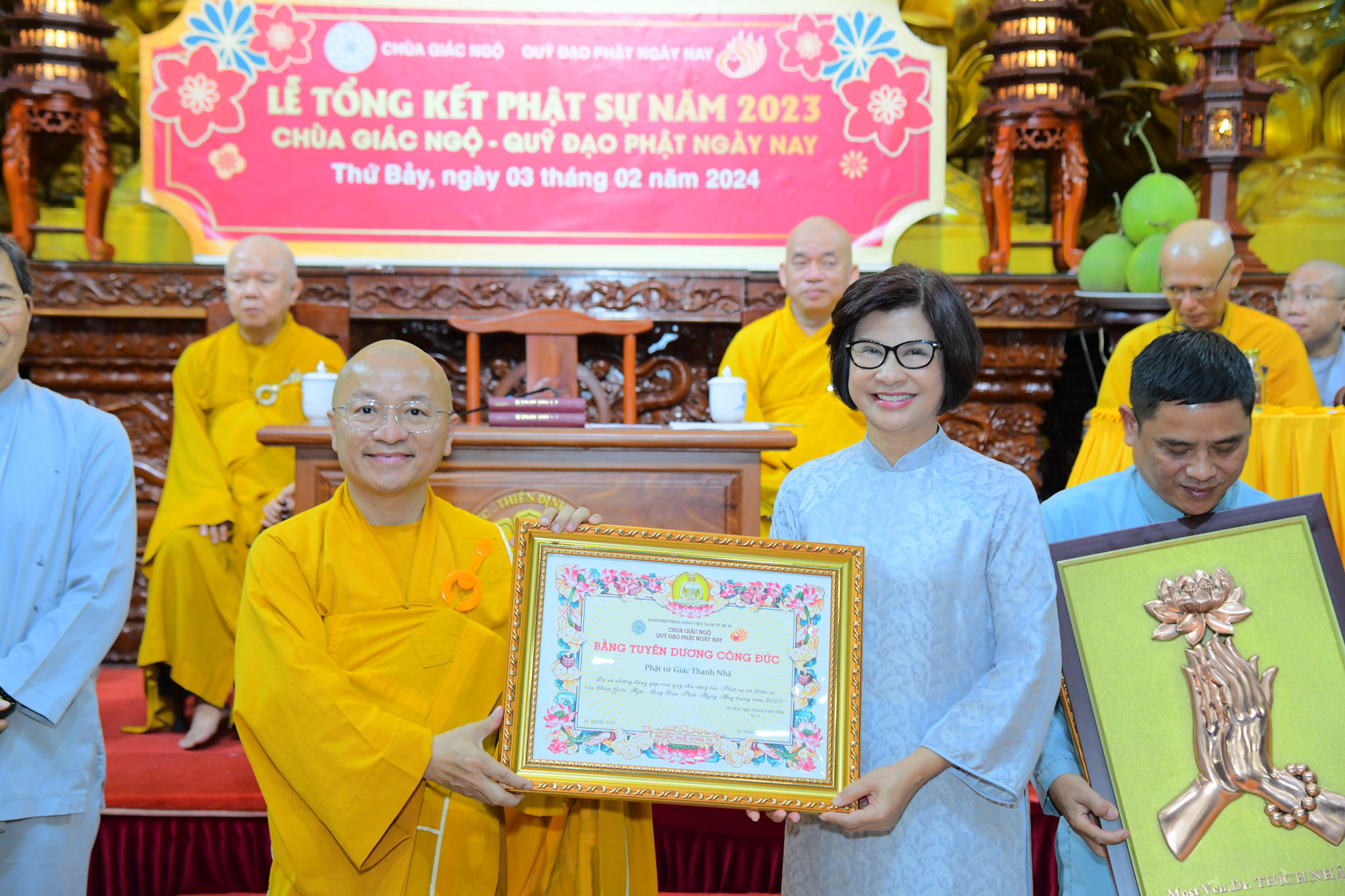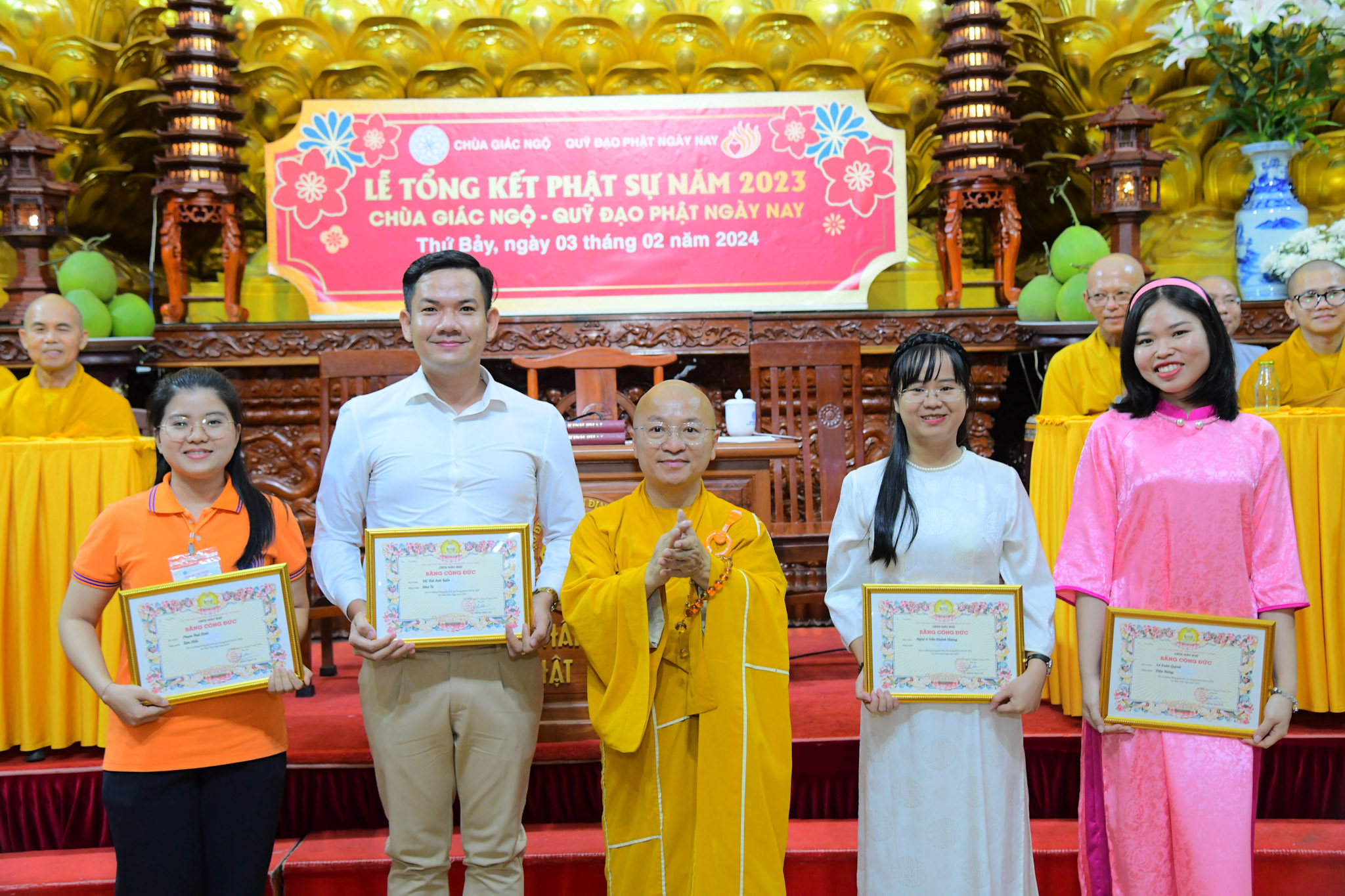 Đây cũng là dịp để tri ân, tuyên dương, khen thưởng những cá nhân và tập thể đã có những đóng góp tiêu biểu trong năm qua. Lễ tổng kết về phía Tăng đoàn chùa Giác Ngộ có sự chứng minh, tham dự của TT. Thích Nhật Từ, Uỷ viên Thường trực HĐTS GHPGVN, Phó Trưởng Ban Trị sự GHPGVN TP.HCM, Trụ trì chùa Giác Ngộ, Chủ tịch sáng lập Quỹ Đạo Phật Ngày Nay; TT. Thích Nhật Thiện, Trưởng Ban Trị sự GHPGVN Quận 10, Phó Trụ trì chùa Giác Ngộ; TT. Thích Nhật Bình, Uỷ viên Ban Trị sự GHPGVN Quận 10, Phó Trụ trì chùa Giác Ngộ cùng chư tôn thiền đức trong Tăng đoàn, Ni đoàn.