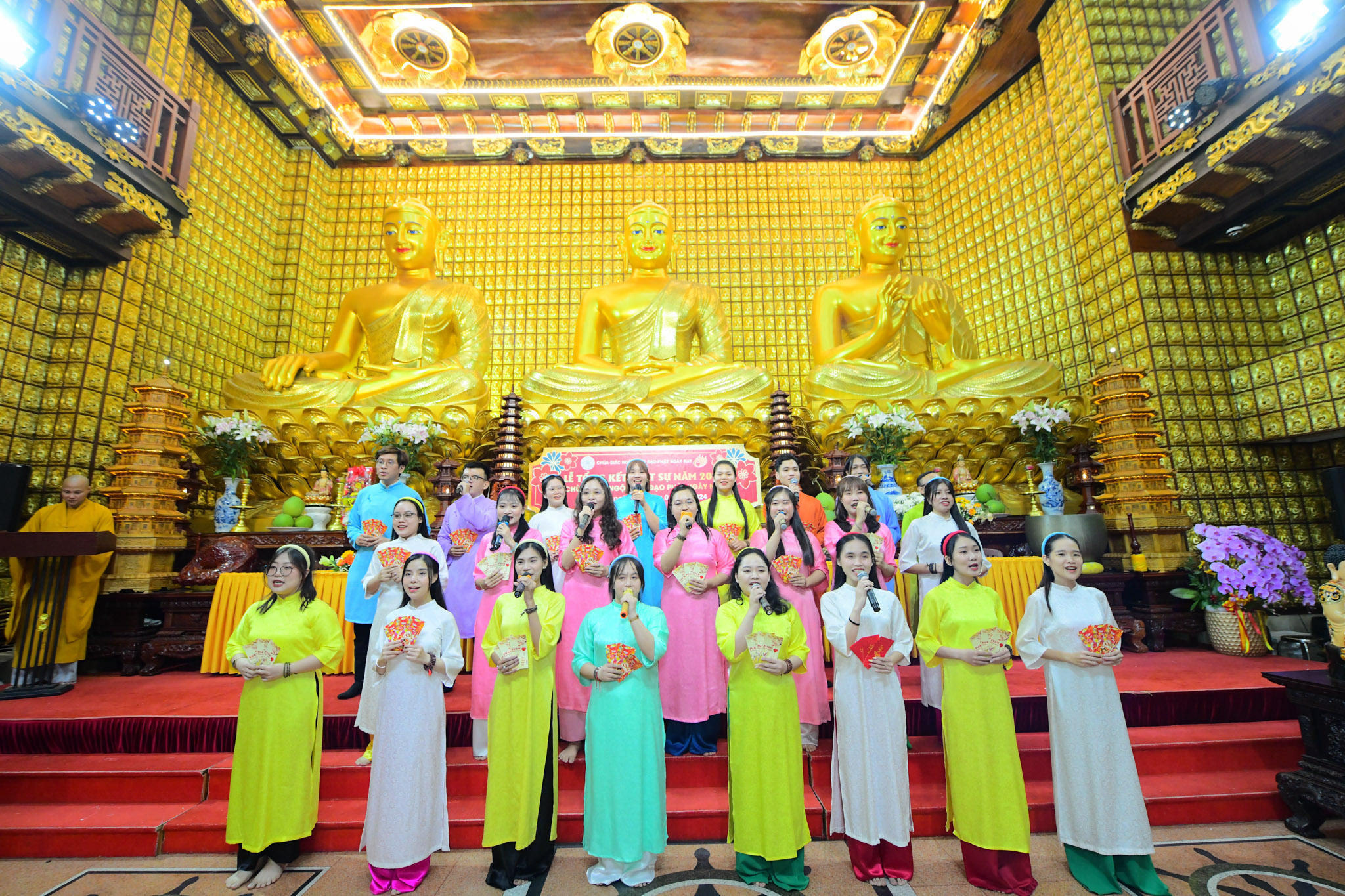 Đây là những sáng tác của Thượng toạ Trụ trì Thích Nhật Từ, những món ăn tinh thần dành cho quý Phật tử gần xa. Tiếp đó, chư tôn thiền đức cùng quý nam nữ Phật tử lần lượt xem qua các clip báo cáo tổng kết hoạt động của chùa Giác Ngộ và Quỹ Đạo Phật Ngày Nay năm 2023.