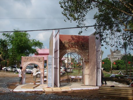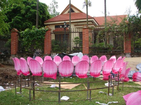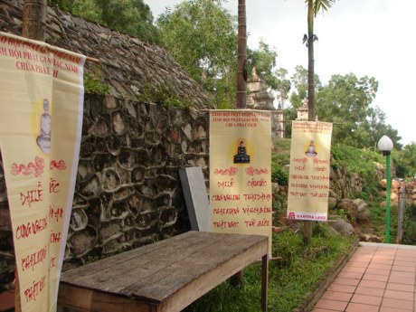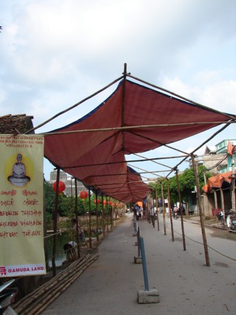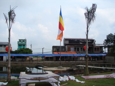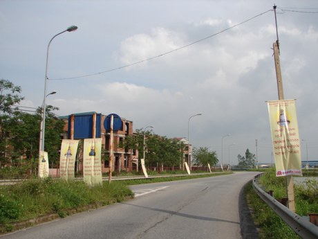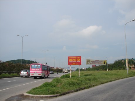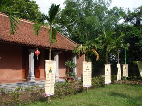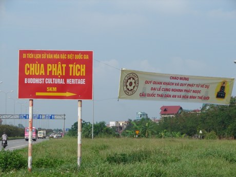Băng rôn chào mừng trên đường vào chùa Phật Tích