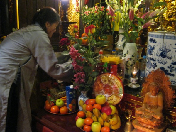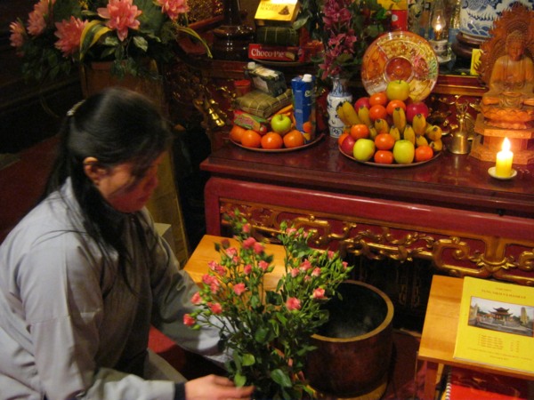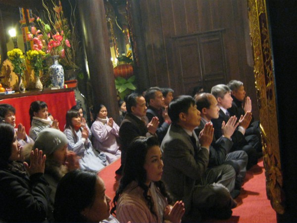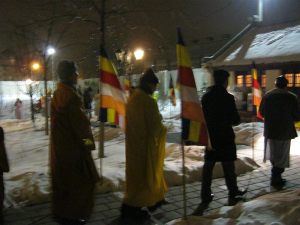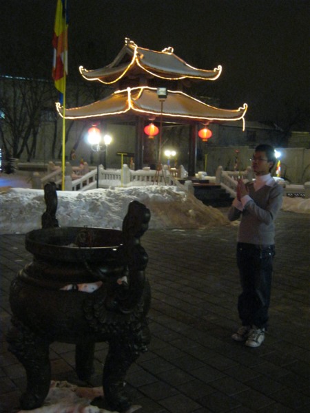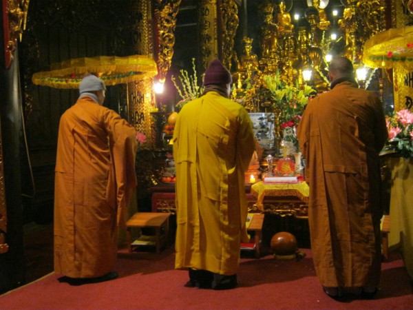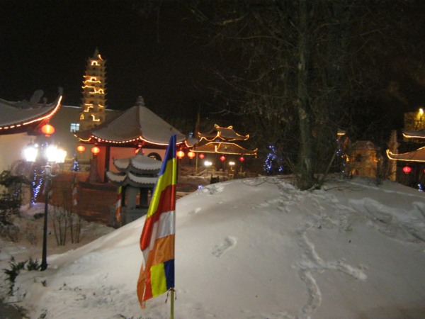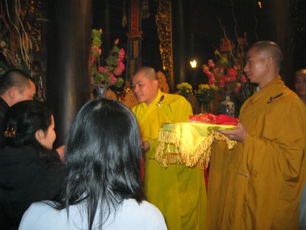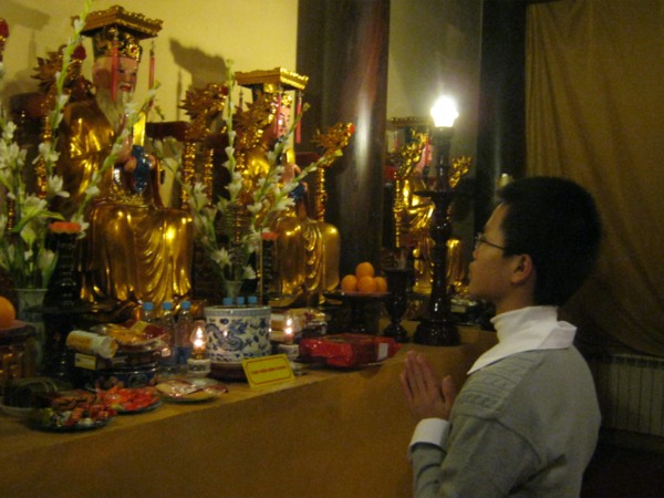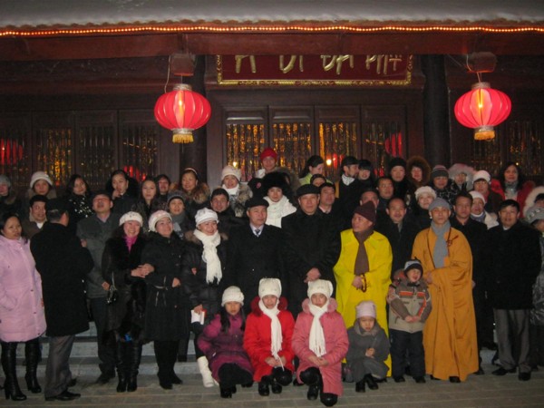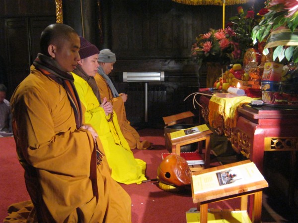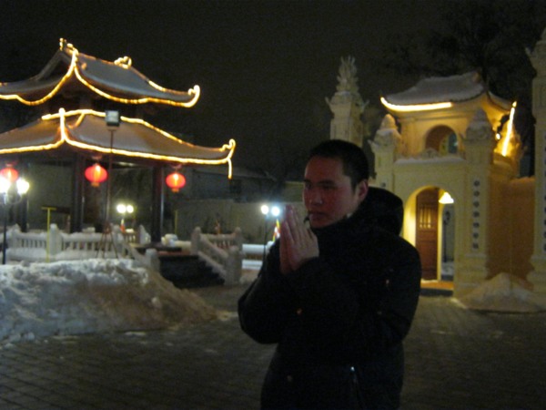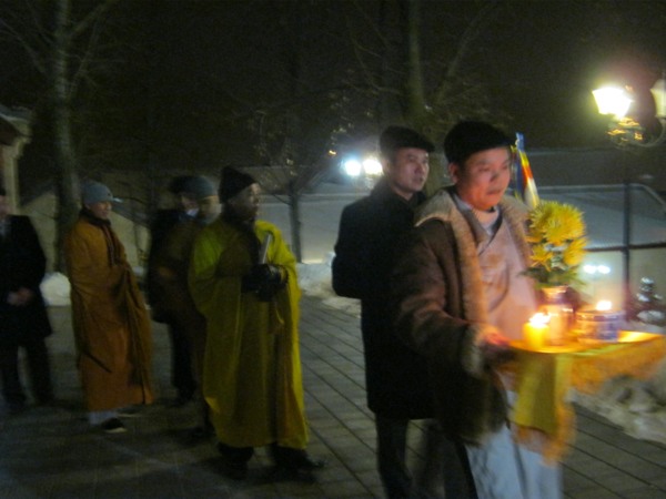 Sau khi thủ tục dâng lễ hương hoa xong, quý Thầy Tâm Chính, Giác Thọ và Nhuận Đăng lên điện Phật làm lễ dâng hương bạch Phật, tụng kinh cầu quốc thái dân an, và mừng năm mới đến bà con người Việt hiện đang sinh sống và làm việc tại tỉnh Kharkov nói riêng và ở nước Ucraina nói chung sang một năm mới luôn an lạc, hạnh phúc và thành đạt trong cộng việc cũng như cuộc sống.