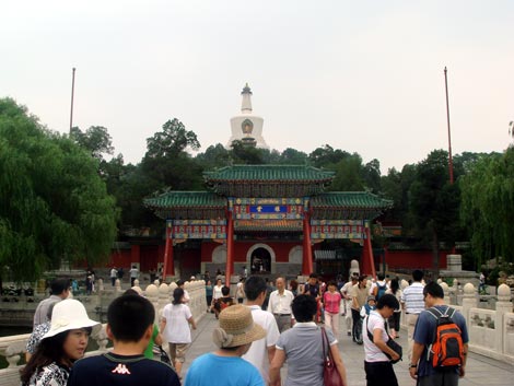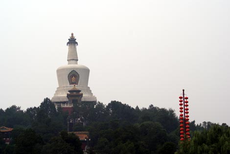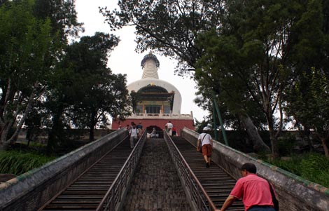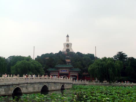 Từ thế kỷ 11, nơi này đã trở thành công viên hòang gia, khắp nơi đều có điện, các, đình, đài, người xưa vẫn thường ví von phong cảnh nơi này giống nơi tiên cảnh. Trước năm 1651, do hòan cảnh xã hội lúc bấy giờ, cũng như những yếu tố tín ngưỡng về tôn giáo, các điện trên đảo bị phá bỏ và thay vào đó là xây dựng một tháp Lat ma màu trắng theo mô hình của Phật giáo Tây Tạng, trước tháp xây một ngôi chùa, từ đó đảo Quỳnh Hoa có tên là Bạch tháp sơn, và ngôi chùa cũng có tên có tên: Bạch tháp Tự. Đến năm 1743, Bạch tháp một lần nữa được sửa chữa, trùng tru, đồng thời, chùa được đổi tên là chùa Vĩnh An