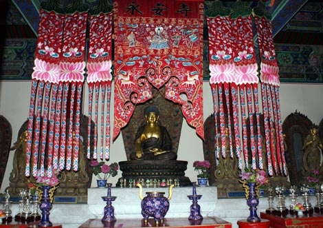 Tượng Phật bên trong của điện cao nhất đỉnh đảo Quỳnh Hoa