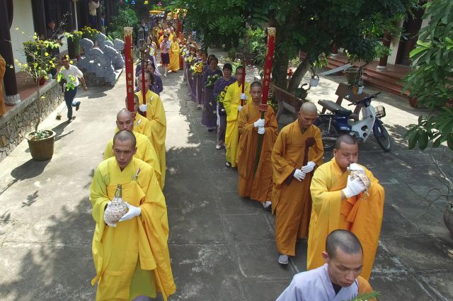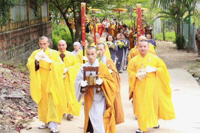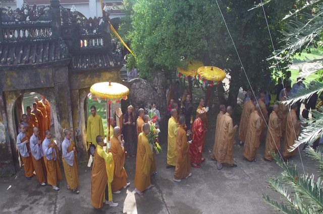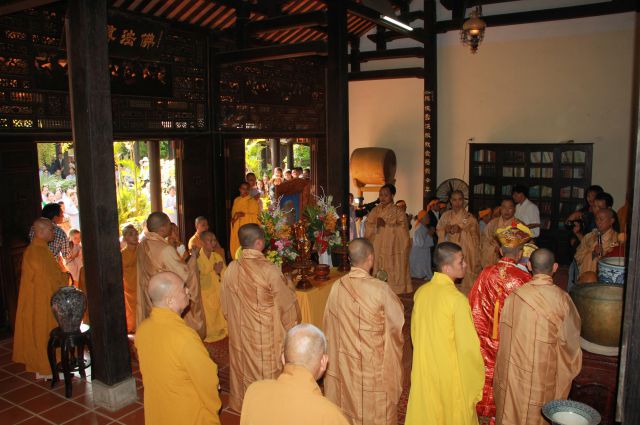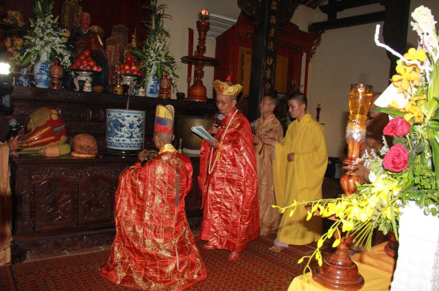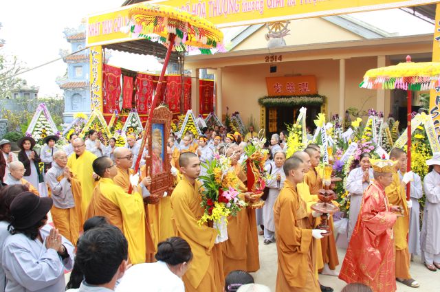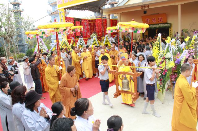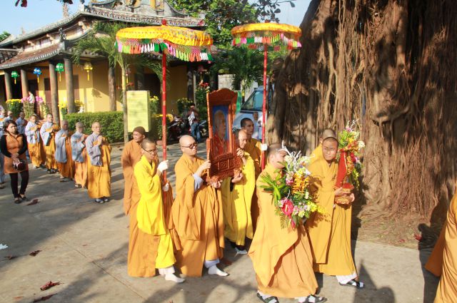 Phần nghi lễ do TT.Thích Hạnh Nhẫn, Phó ban Nghi lễ PG tỉnh Quảng Nam, Phó BTS PG TP.Hội An cùng chư tôn đức trong ban kinh sư thực hiện, với âm thanh trầm hùng của nhạc lễ, ban khánh tiết và môn đồ pháp quyến đã cung thỉnh di ảnh, long vị, y bát của Hòa thượng về lại chốn Tổ, nơi khai sinh ra dòng Lâm Tế Chúc Thánh Hội An.