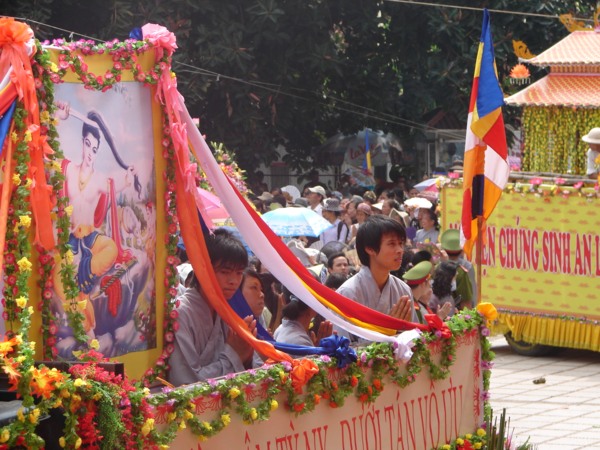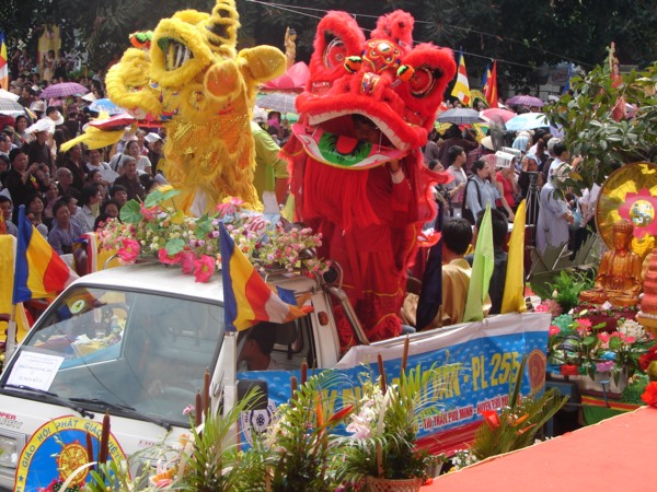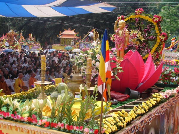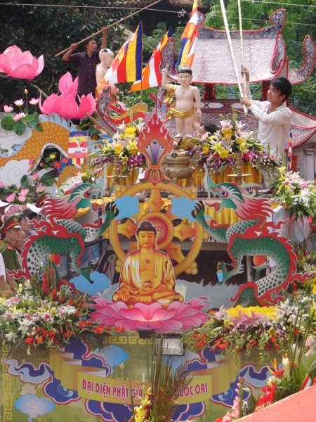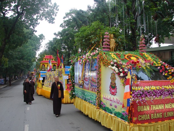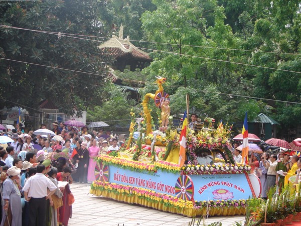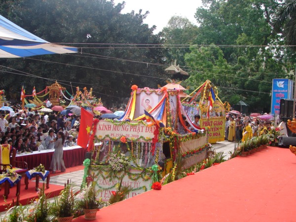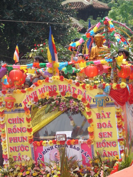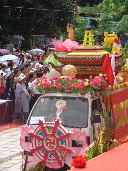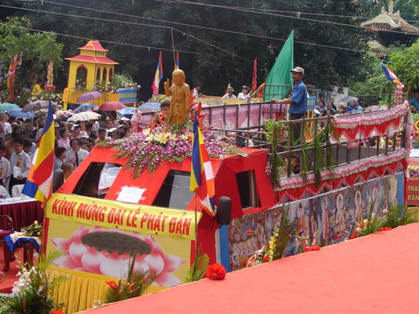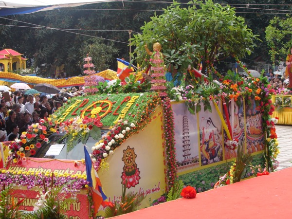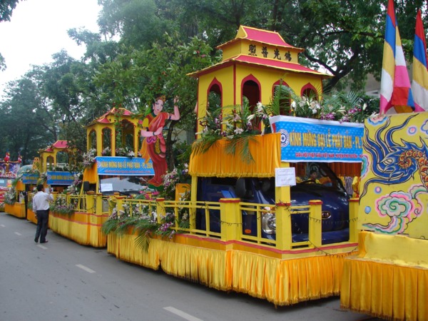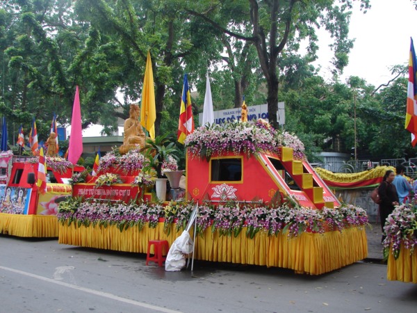 Một xe hoa không chính thức chở Phật tử đi dự lễ Phật đản. Việc trang trí xe hoa những biểu tượng Phật pháp như vậy cũng là một hình thức tu học đặc biệt của Phật tử.