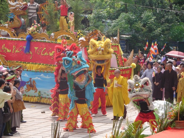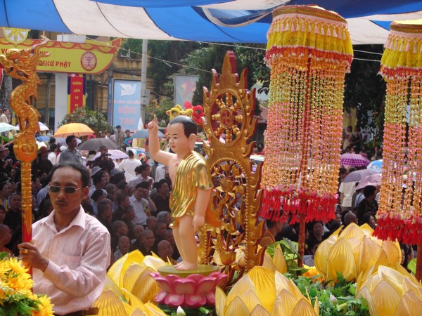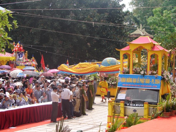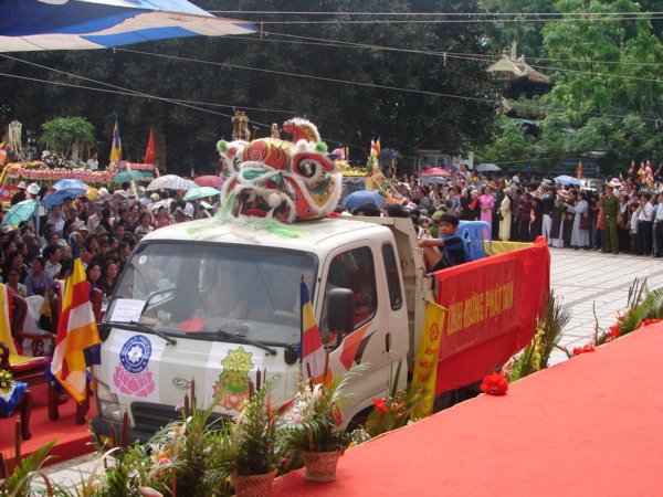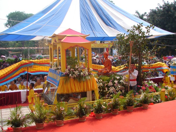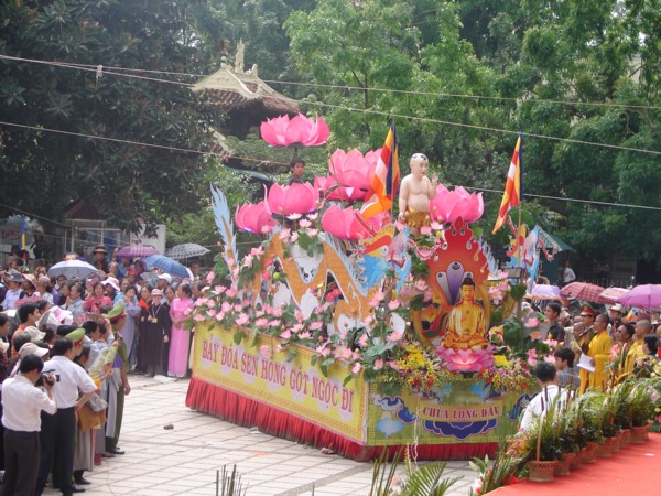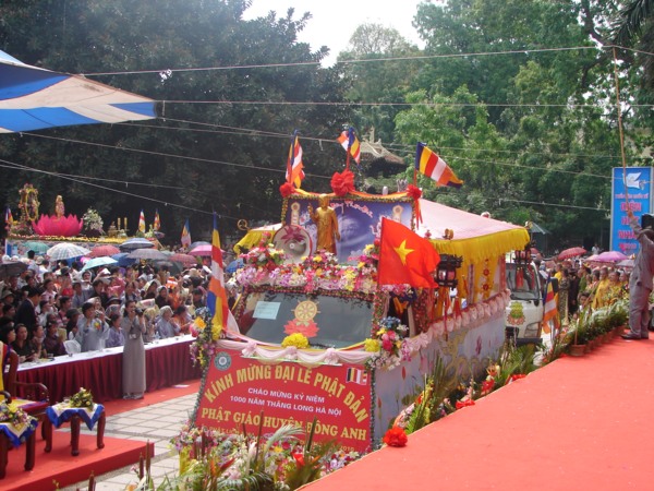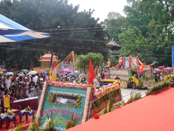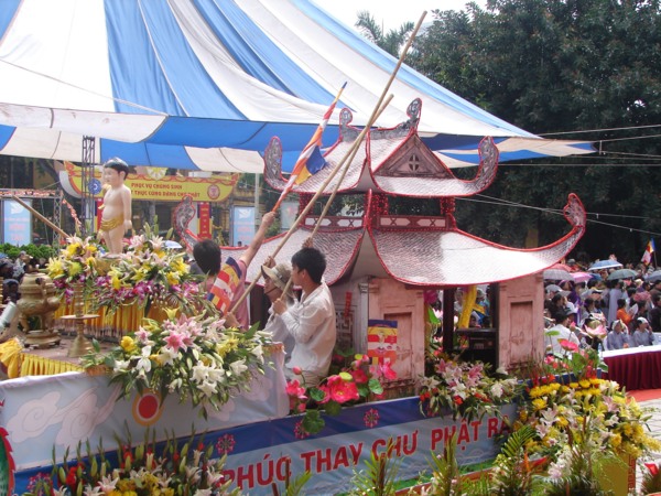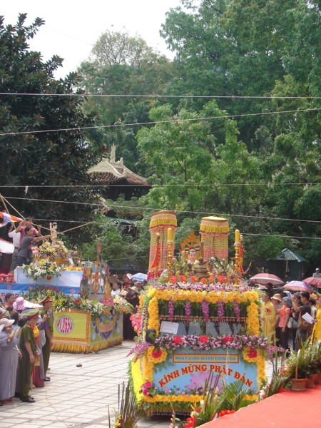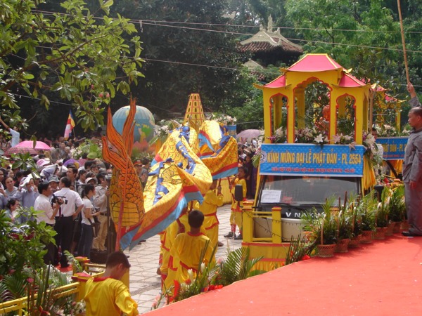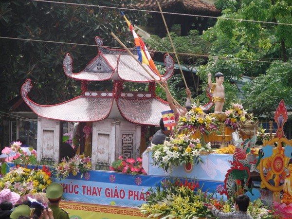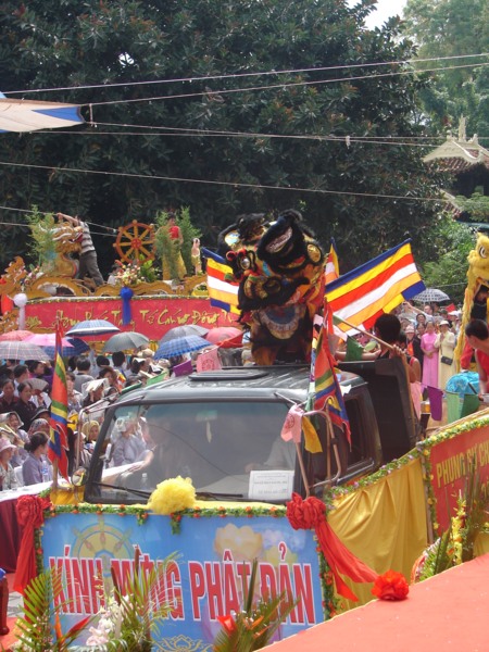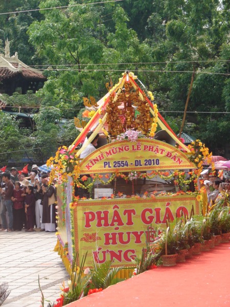 Một xe hoa không chính thức chở Phật tử đi dự lễ Phật đản. Việc trang trí xe hoa những biểu tượng Phật pháp như vậy cũng là một hình thức tu học đặc biệt của Phật tử.