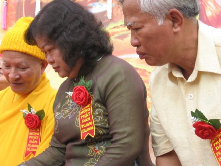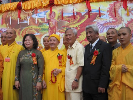 Từ trái sang: Chủ tịch MTTQVN Phạm Thế Duyệt, Phó Thủ tướng Vũ KHoan, Phó Chủ tịch nước Trương Mỹ Hoa