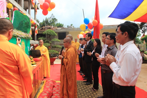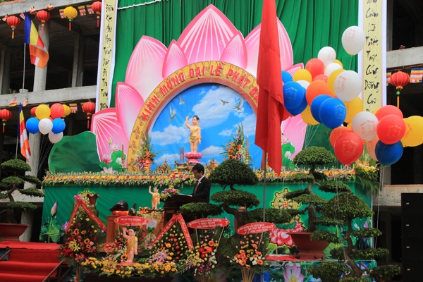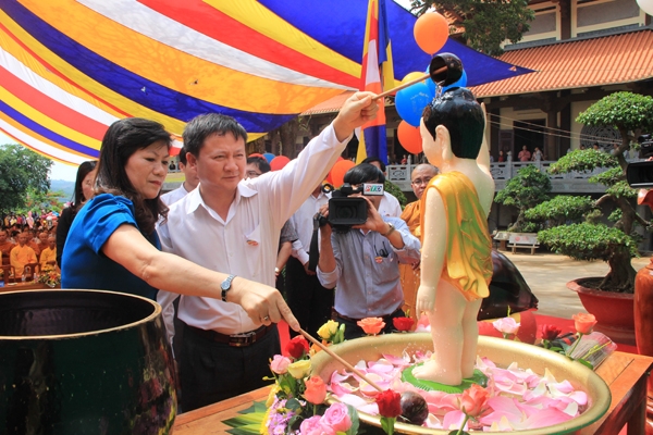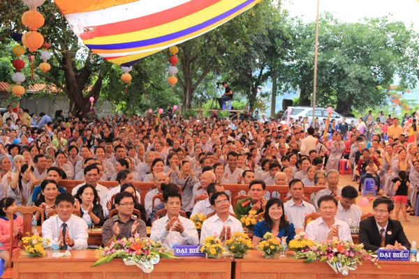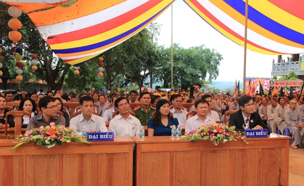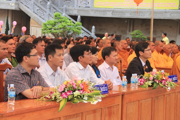 Thay mặt lãnh đạo chính quyền phát biểu tại lễ đài, ông Cao Huy, Phó Chủ tịch UBND kính chúc Chư Tôn đức Tăng Ni, Cư sĩ Phật tử Thường trực BTS Phật giáo tỉnh, Trường trực BTS Phật giáo các huyện, cùng toàn thể Tăng Ni, Cư sĩ, Phật tử lời cầu chúc mạnh khỏe, an lạc trong mùa Phật đản PL.2560. Ông Cao Huy cũng đã ghi nhận các thành tựu Phật sự của Phật giáo tỉnh trong sự nghiệp xây dựng và phát triển văn hóa, xã hội trong khối đại đoàn kết dân tộc tỉnh nhà.