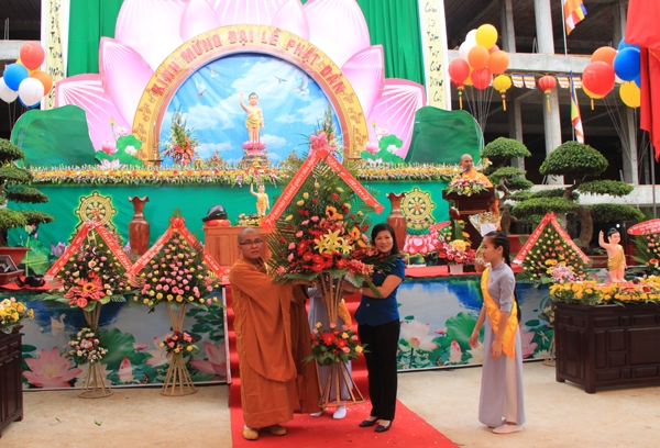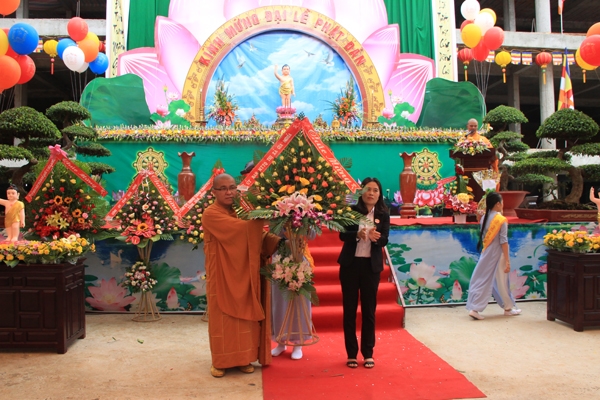 Tại buổi lễ, Thượng tọa Trưởng ban và Đại đức Phó Trưởng ban Thường trực đã đón nhận nhiều lẵng hoa chúc mừng Phật đản của lãnh đạo Tỉnh ủy, HĐND, UBND, UBMTTQVN tỉnh và các sở, ban ngành tỉnh, thị xã và phường sở tại.