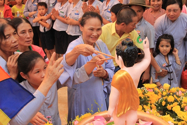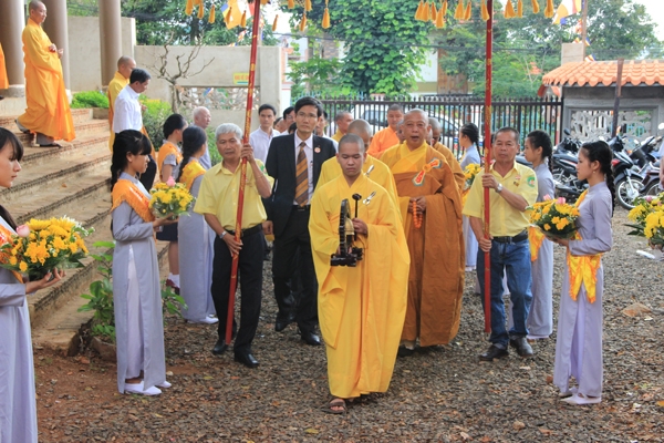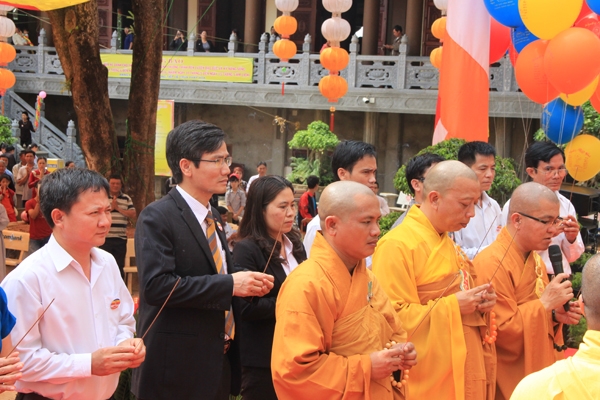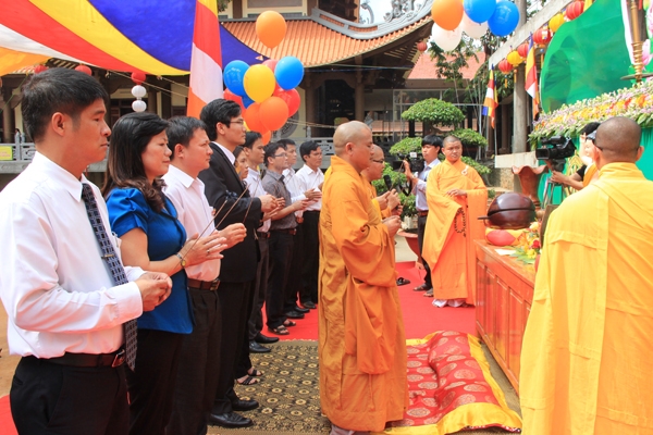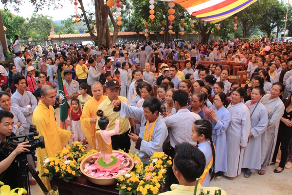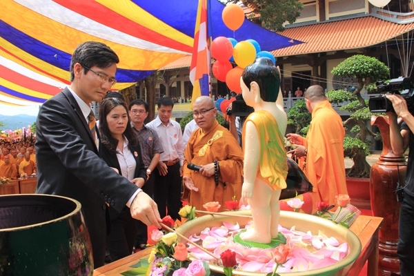 Trước sự trang nghiêm của lễ đài, toàn thể Chư Tôn đức Tăng Ni, quý vị lãnh đạo Chính quyền cùng toàn thể Phật tử đạo tràng khởi thân trang nghiêm cử hành nghi thức lễ Phật Đản. Chư Tôn đức và đại diện quan khách thành kính niêm hương cúng dường trước tôn tượng Đức Phật đản sinh tại lễ đài.