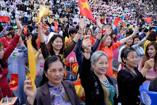 Tất cả đứng ngồi trật tự hai bên đường hàng mấy tiếng đồng hồ chờ đợi đoàn diễu hành đèn lồng đi qua rồi vẫy tay, cúi chào hay hét to trong niềm vui tưởng như vỡ ra trong lồng ngực.