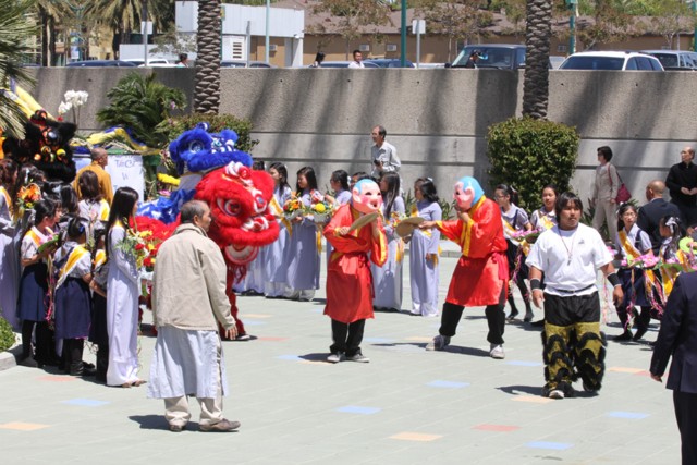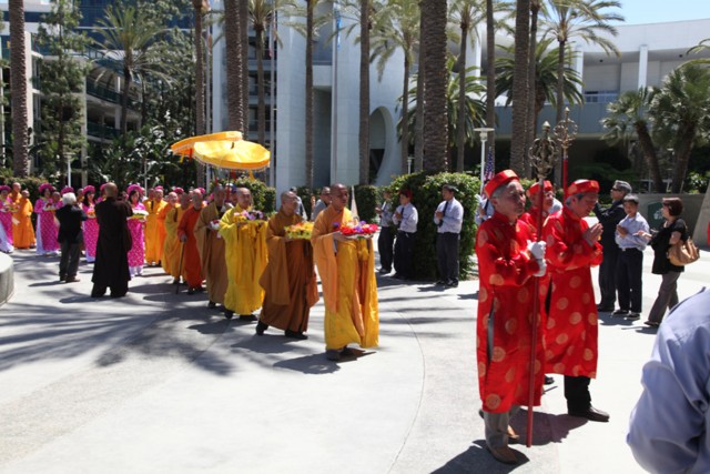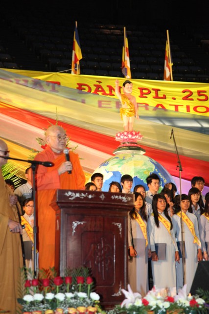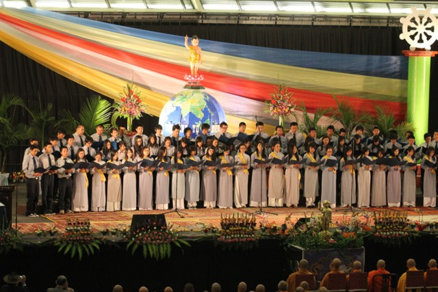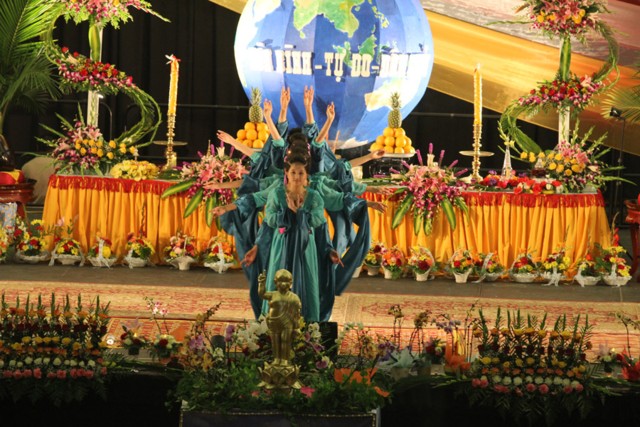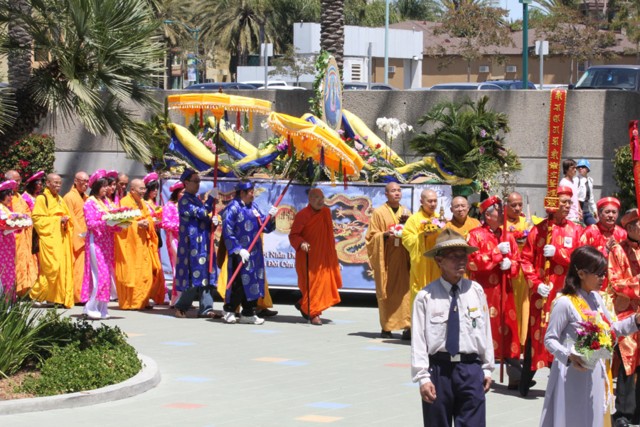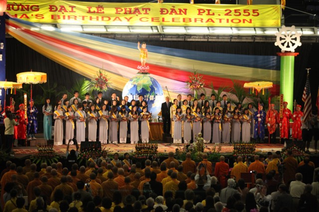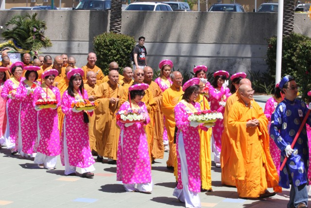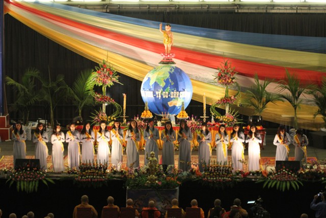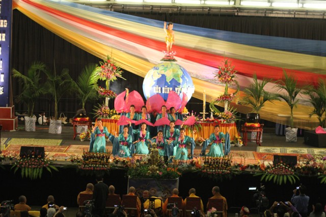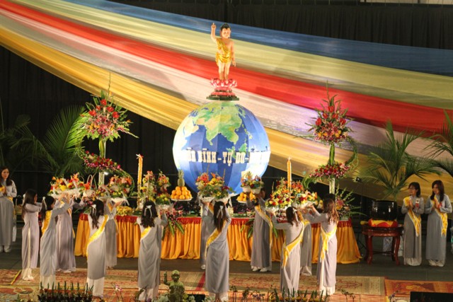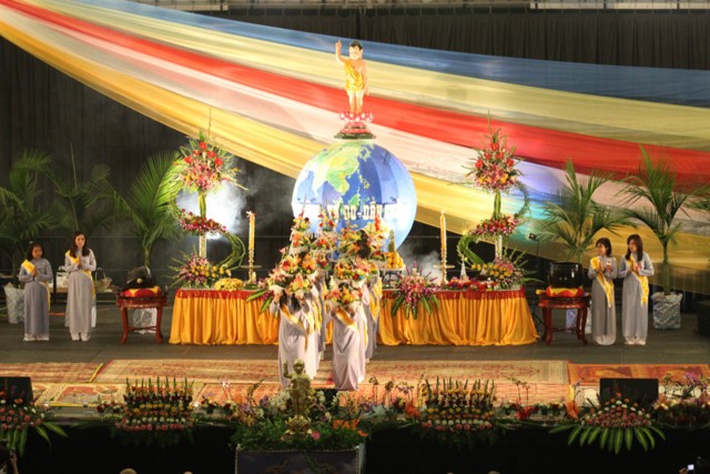 Chương trình Phật đản tại đây bao gồm các hoạt động như rước kiệu Ngọc Xá Lợi, chụp hình lưu niệm chư tôn đức Tăng Ni trên lễ đài, diễn văn Khai Mạc của HT. Trưởng Ban – Thích Chơn Thành (ca đoàn Hoa Từ Bi và GĐPT đứng trên sân khấu làm hậu cảnh), Liên khúc Khánh Đản (GĐPT), Hòa thượng Thích Thắng Hoan tuyên đọc Thông Bạch Phật Đản, đạo từ Phật Đản của Hòa thượng Thích Tâm Châu – HT. Thượng thủ, Thích Tâm Châu, nghi thức mừng Phật Đản (nhạc Trầm Hương Đốt, tụng ba biến Chú Đại Bi), vũ khúc mừng Phật Đản (GĐPT), Văn Nghệ.