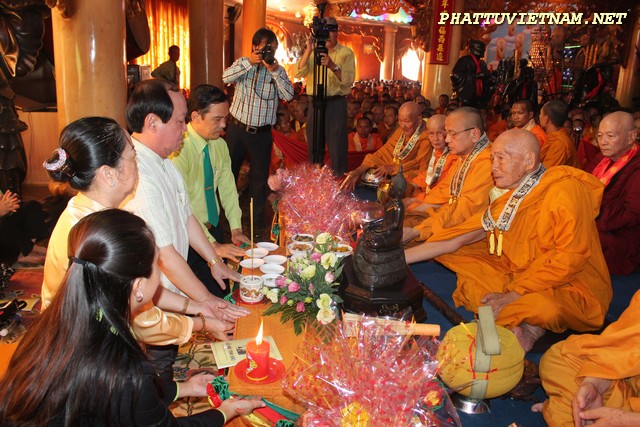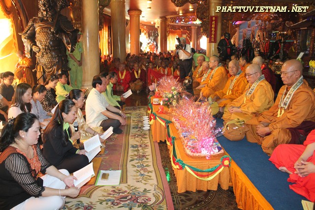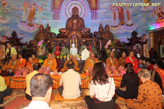 Quang lâm chứng minh: HT.Thích Trì Giới, TT.Thích Bửu Chánh – Phó ban trị sự GHOGVN tỉnh Đồng Nai, ĐĐ.Thích Thiện Minh – Phó tổng biên tập tạp chí PG Nguyên Thủy. Ngoài ra có sự hiện diện của chư tôn đức Tăng – Tu nữ và qúy Phật tử gần xa đến tham dự.