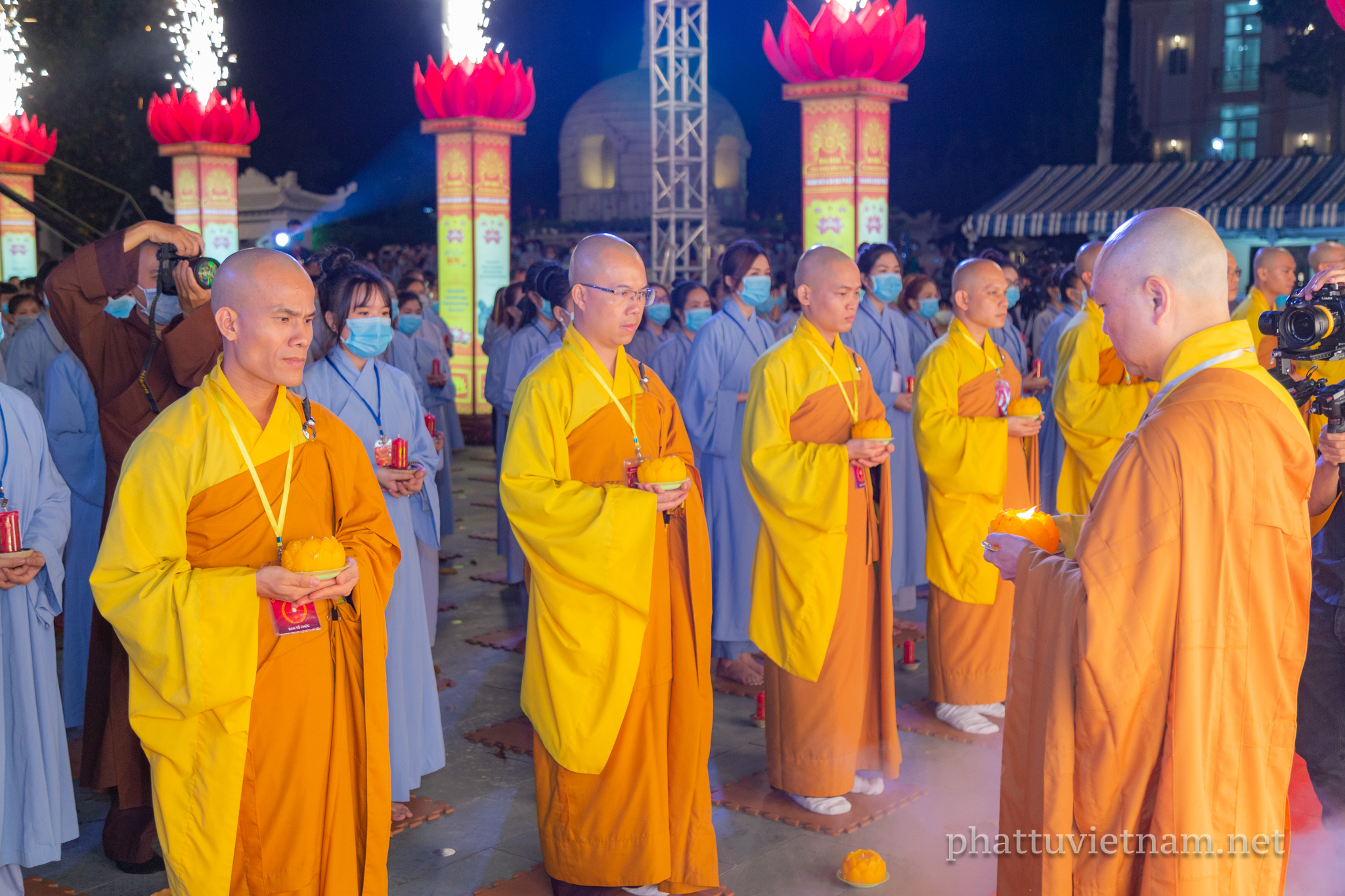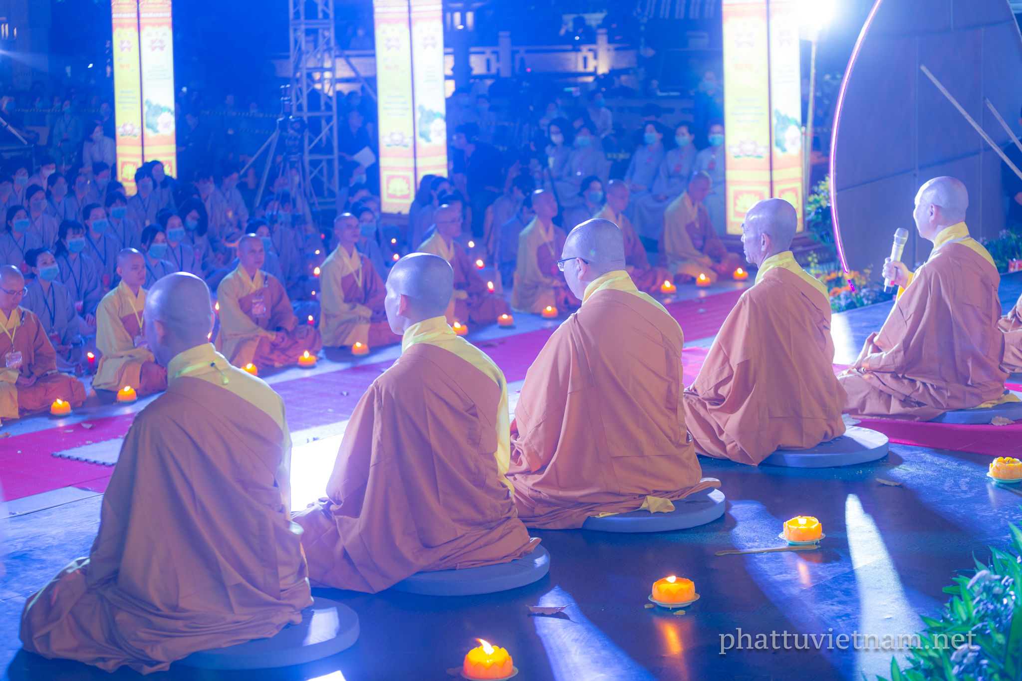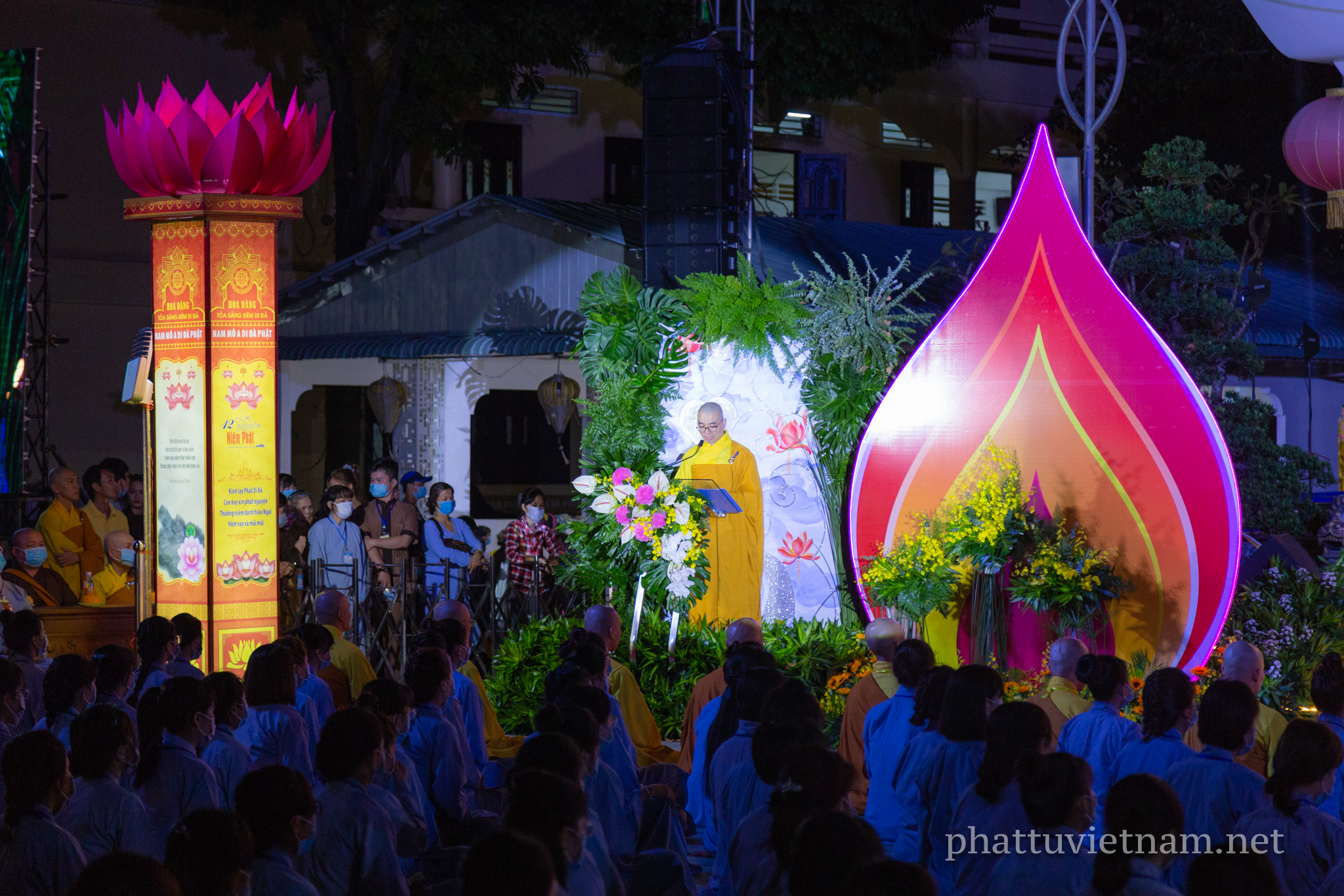 Đạo từ cho buổi lễ, TT.Thích Chân Tính – Trưởng BTC Đêm Hội Hoa Đăng đã cùng với đại chúng đã hướng tâm cầu nguyện cũng như gởi năng lượng bình an đến với những nạn nhân trong đại dịch đang diễn ra trên toàn thế giới, cùng với người đã gánh chịu thiên tai lũ lụt vừa qua.