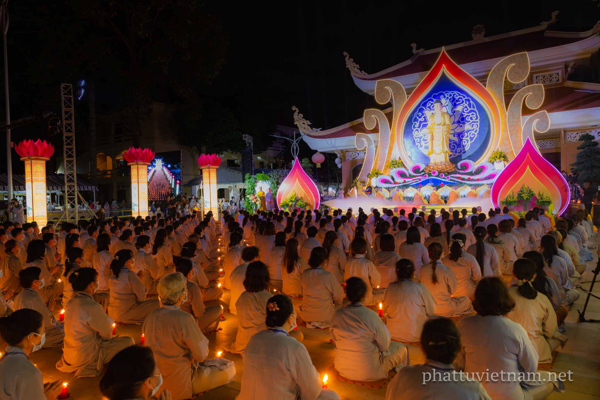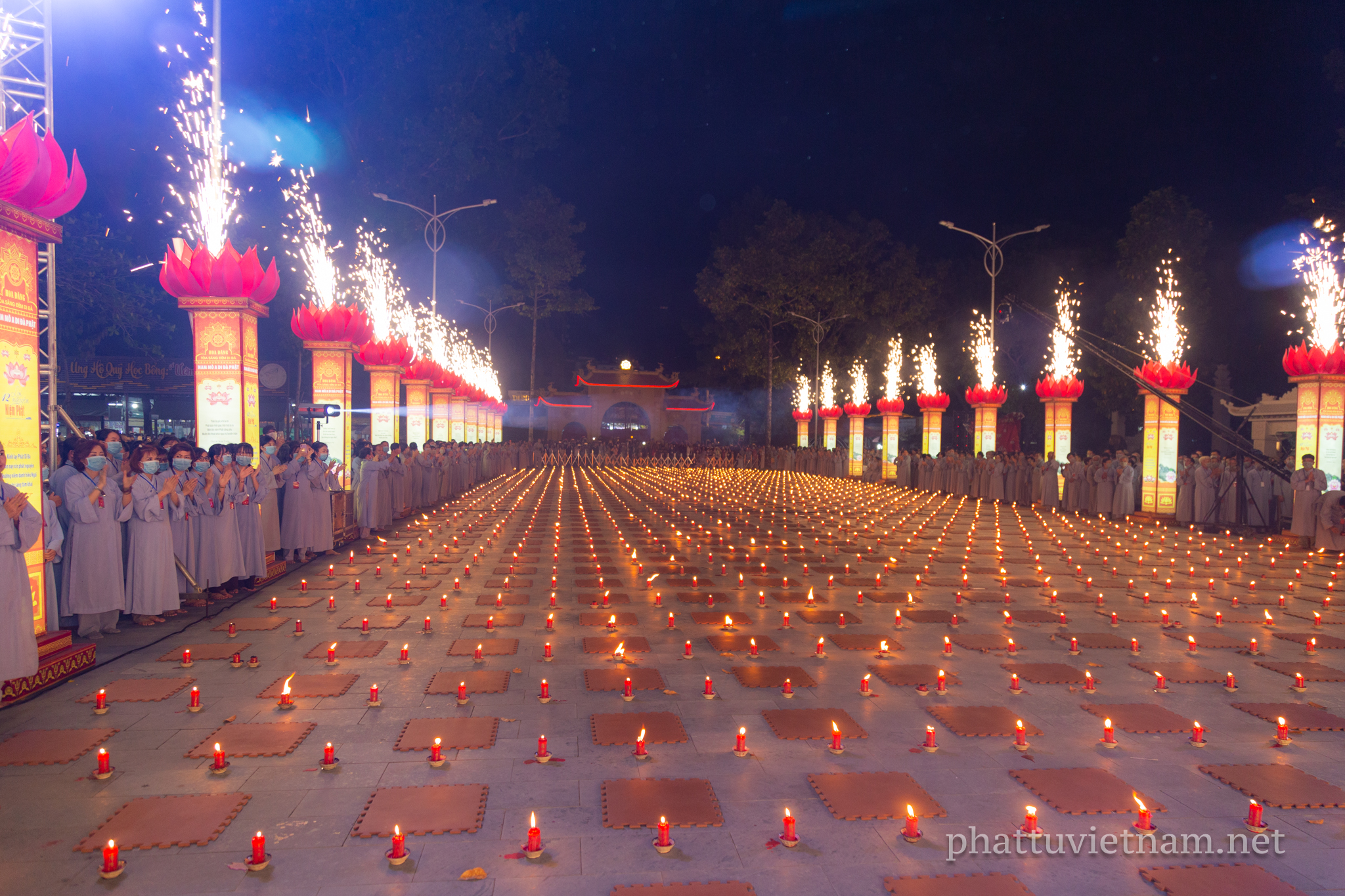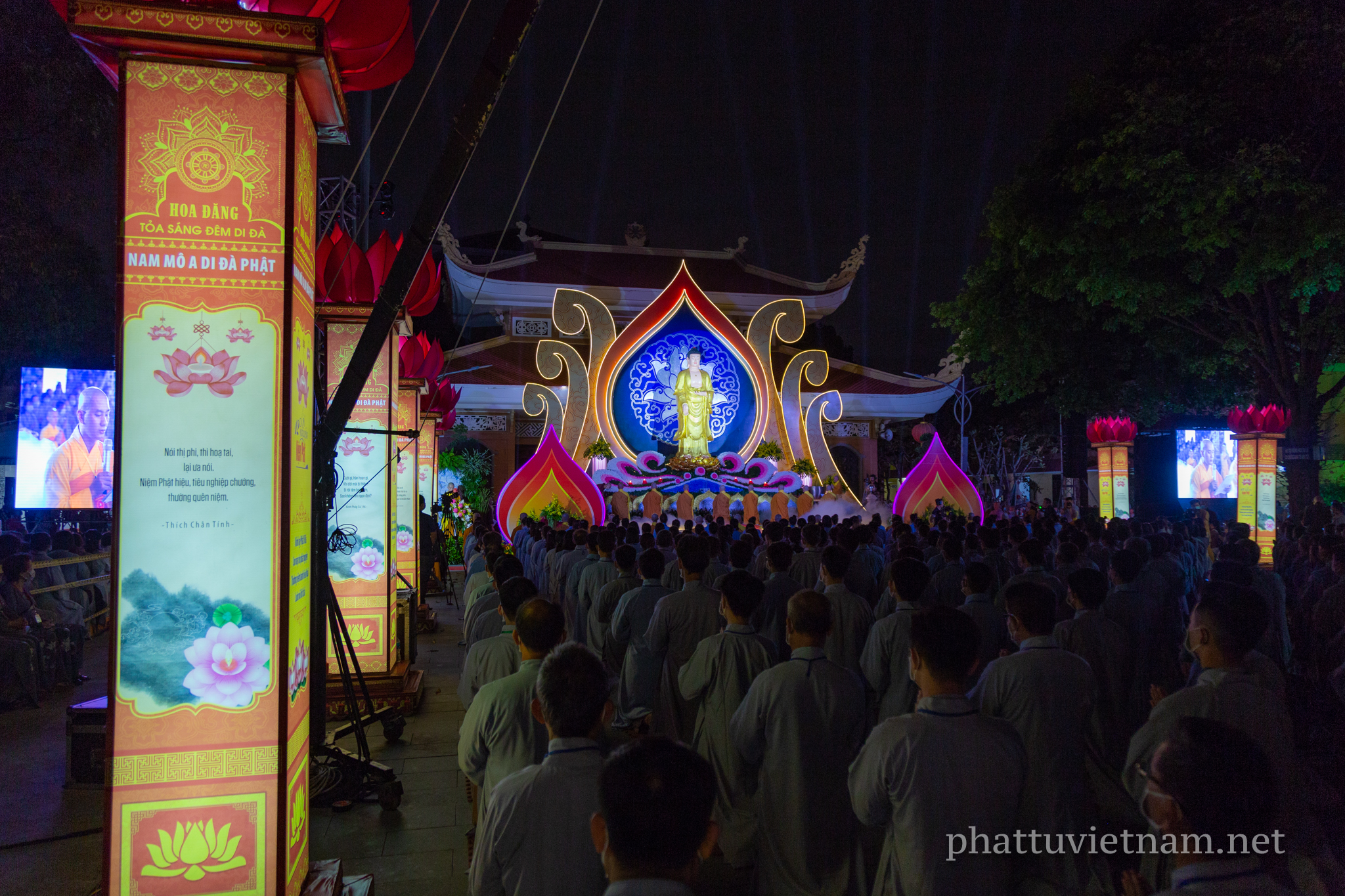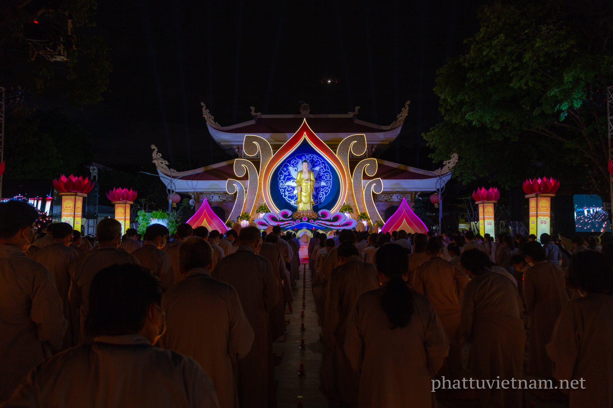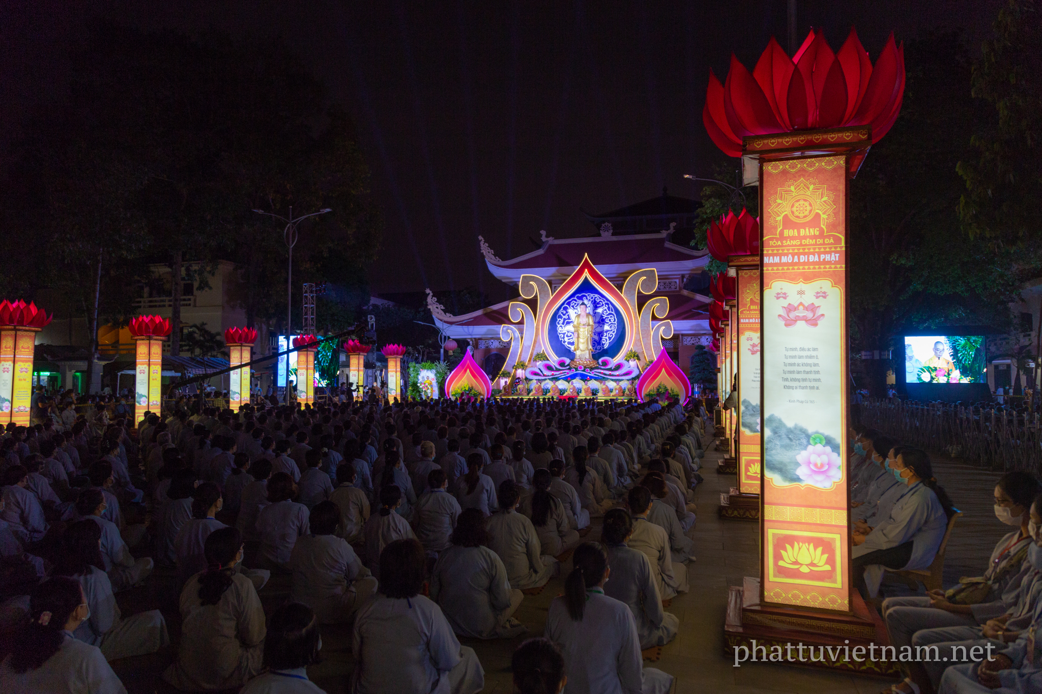 Hàng nghìn ngọn nến lung linh được thắp sáng trong đêm hoa đăng kỷ niệm ngày khánh đản của Đức Từ Phụ A Di Đà, những điều cao đẹp, những giá trị đạo đức thiêng liêng cao cả nhất, được tôn vinh và đưa vào đời sống cộng đồng. Chính những thông điệp dạt dào tình thương, tràn đầy nhân bản ấy sẽ đi vào tận cùng ngõ ngách của cuộc đời, làm cho cuộc thế thăng hoa, khiến cho trái tim con người rung động quay về nương tựa Ngài – đấng Thiện Thệ A Di Đà – vị cha lành của bốn loài, đấng toàn tri trong ba cõi.