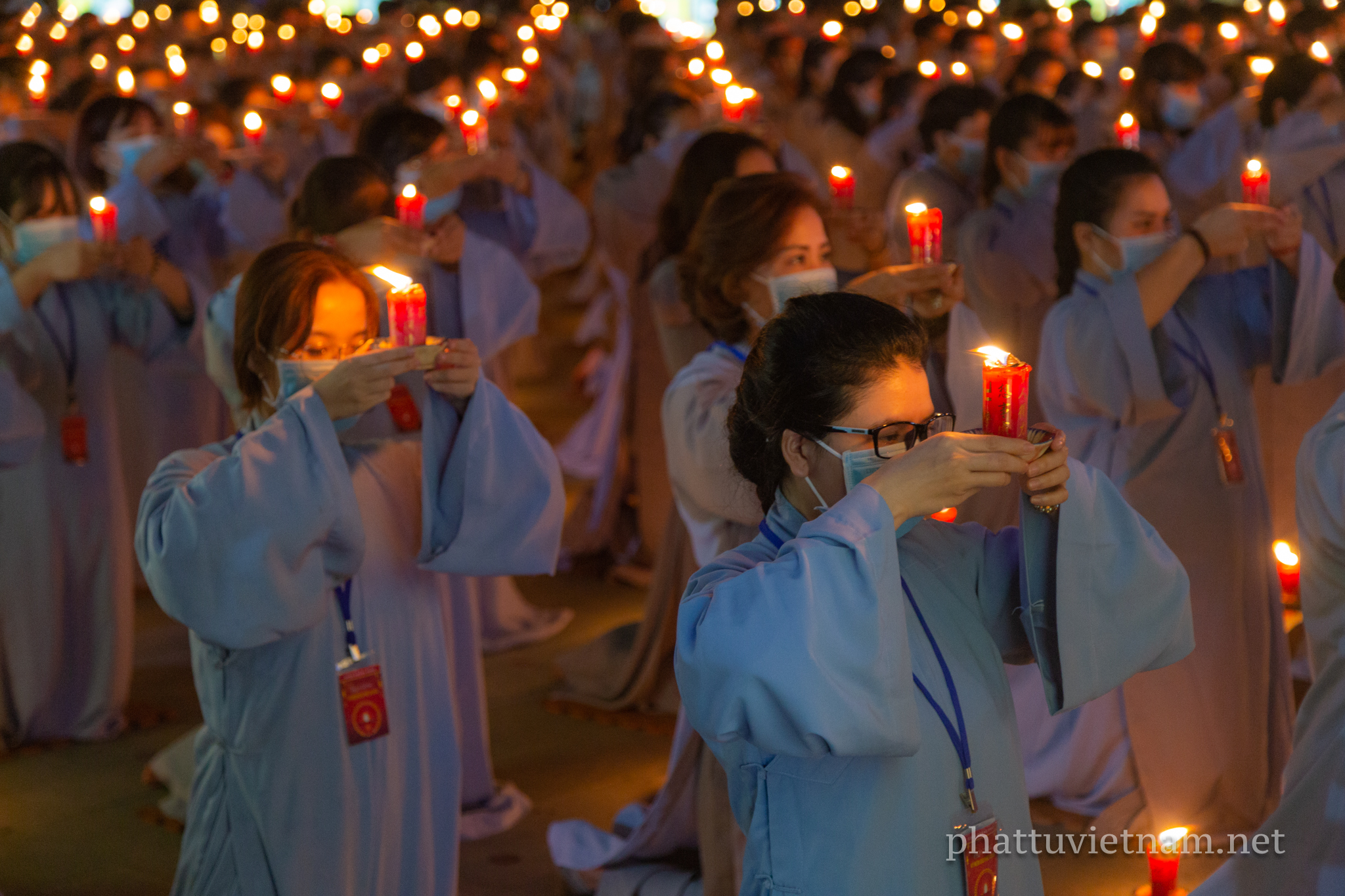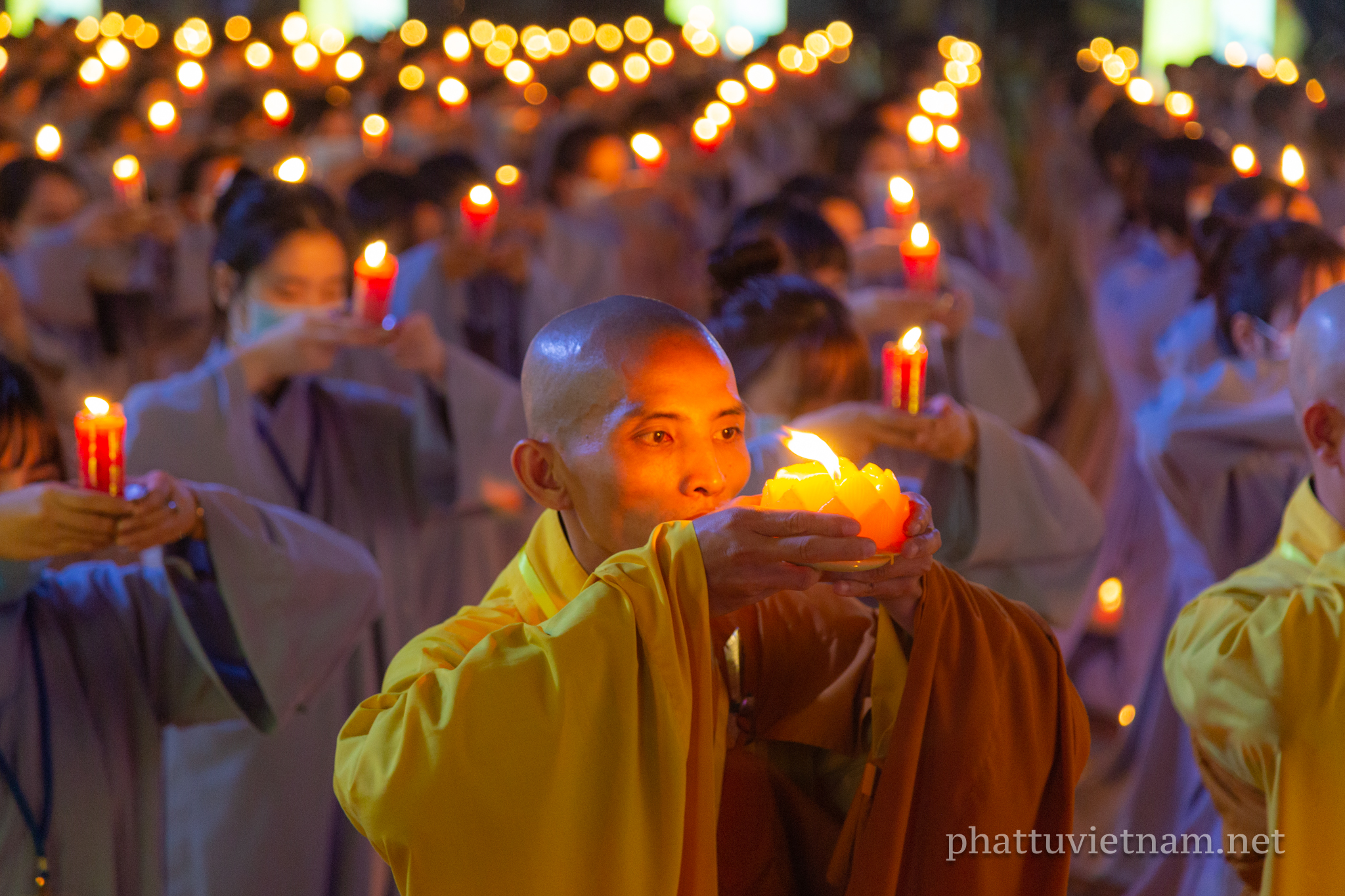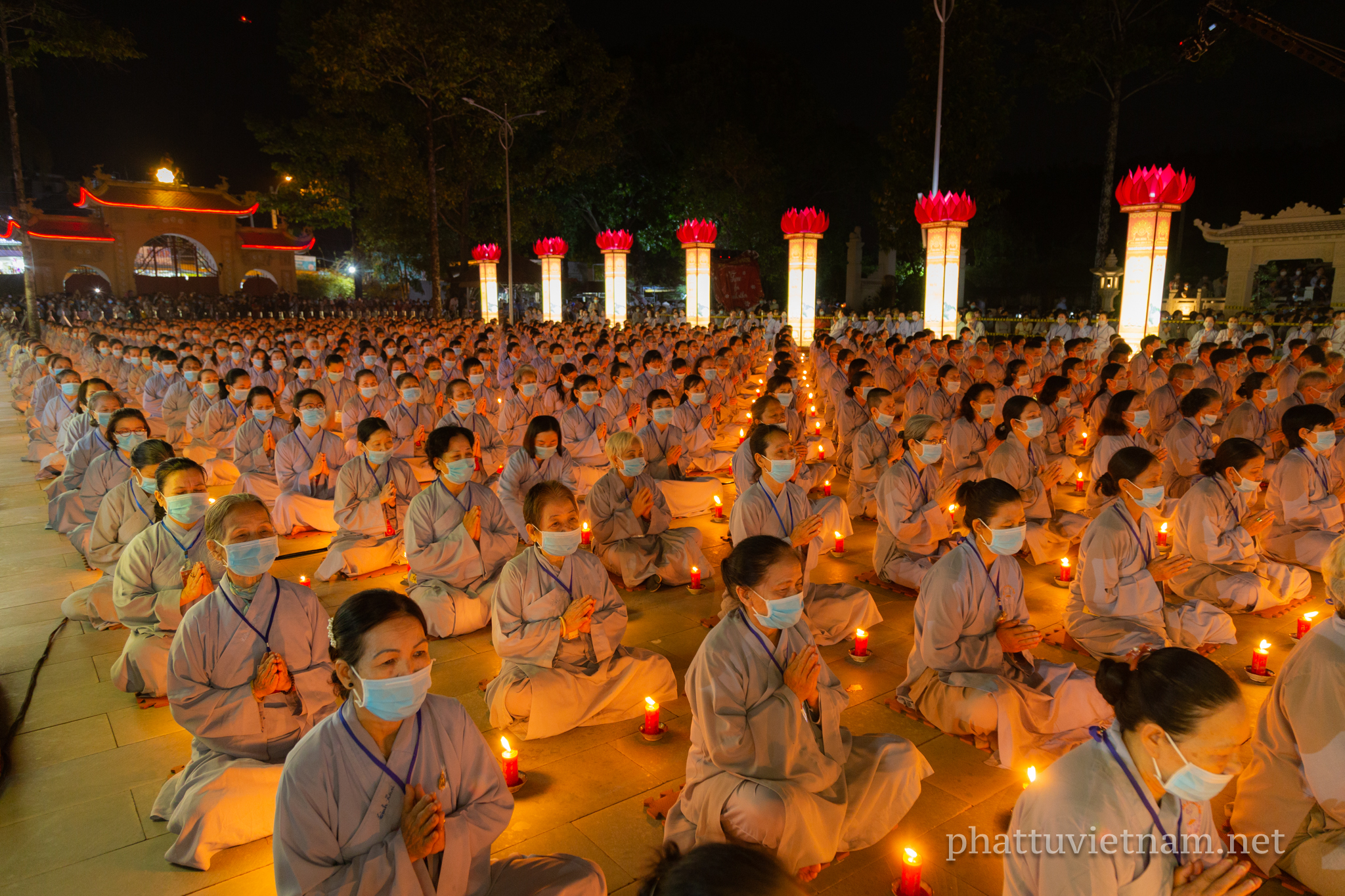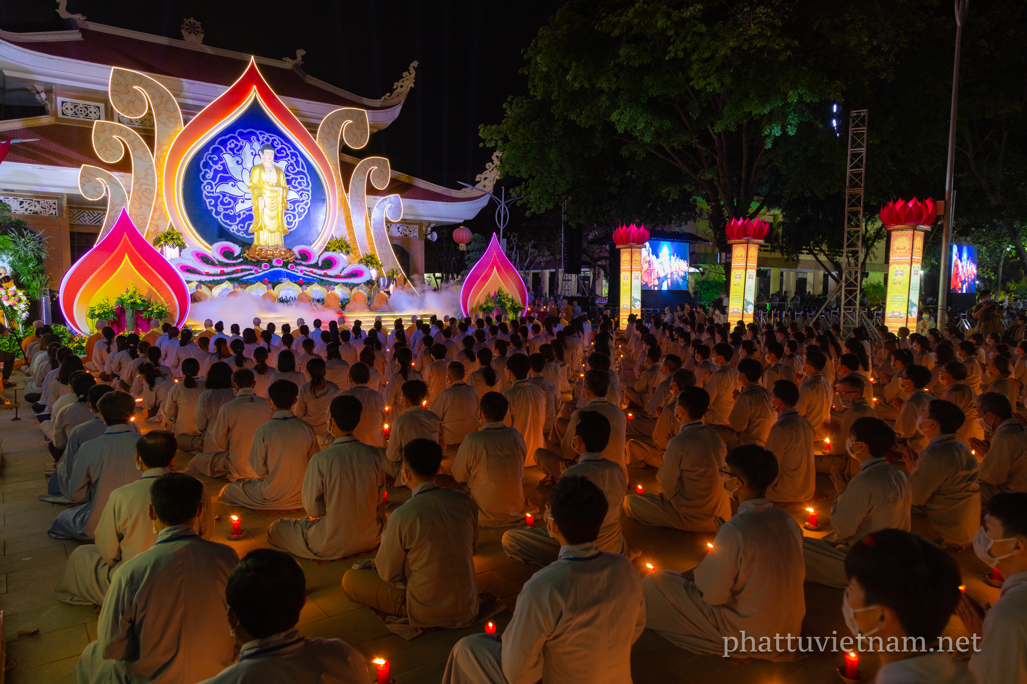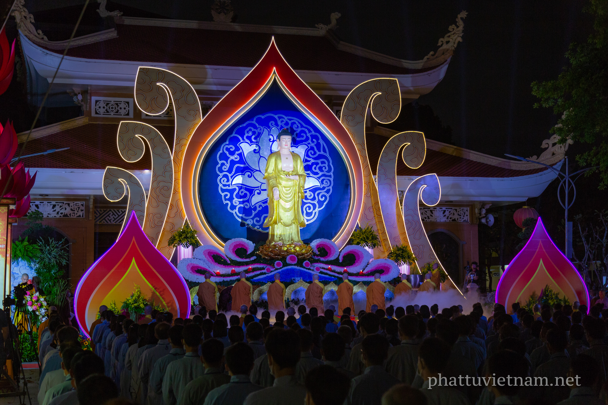Hàng nghìn ngọn nến lung linh được thắp sáng trong đêm hoa đăng kỷ niệm ngày khánh đản của Đức Từ Phụ A Di Đà, những điều cao đẹp, những giá trị đạo đức thiêng liêng cao cả nhất, được tôn vinh và đưa vào đời sống cộng đồng. Chính những thông điệp dạt dào tình thương, tràn đầy nhân bản ấy sẽ đi vào tận cùng ngõ ngách của cuộc đời, làm cho cuộc thế thăng hoa, khiến cho trái tim con người rung động quay về nương tựa Ngài – đấng Thiện Thệ A Di Đà – vị cha lành của bốn loài, đấng toàn tri trong ba cõi.