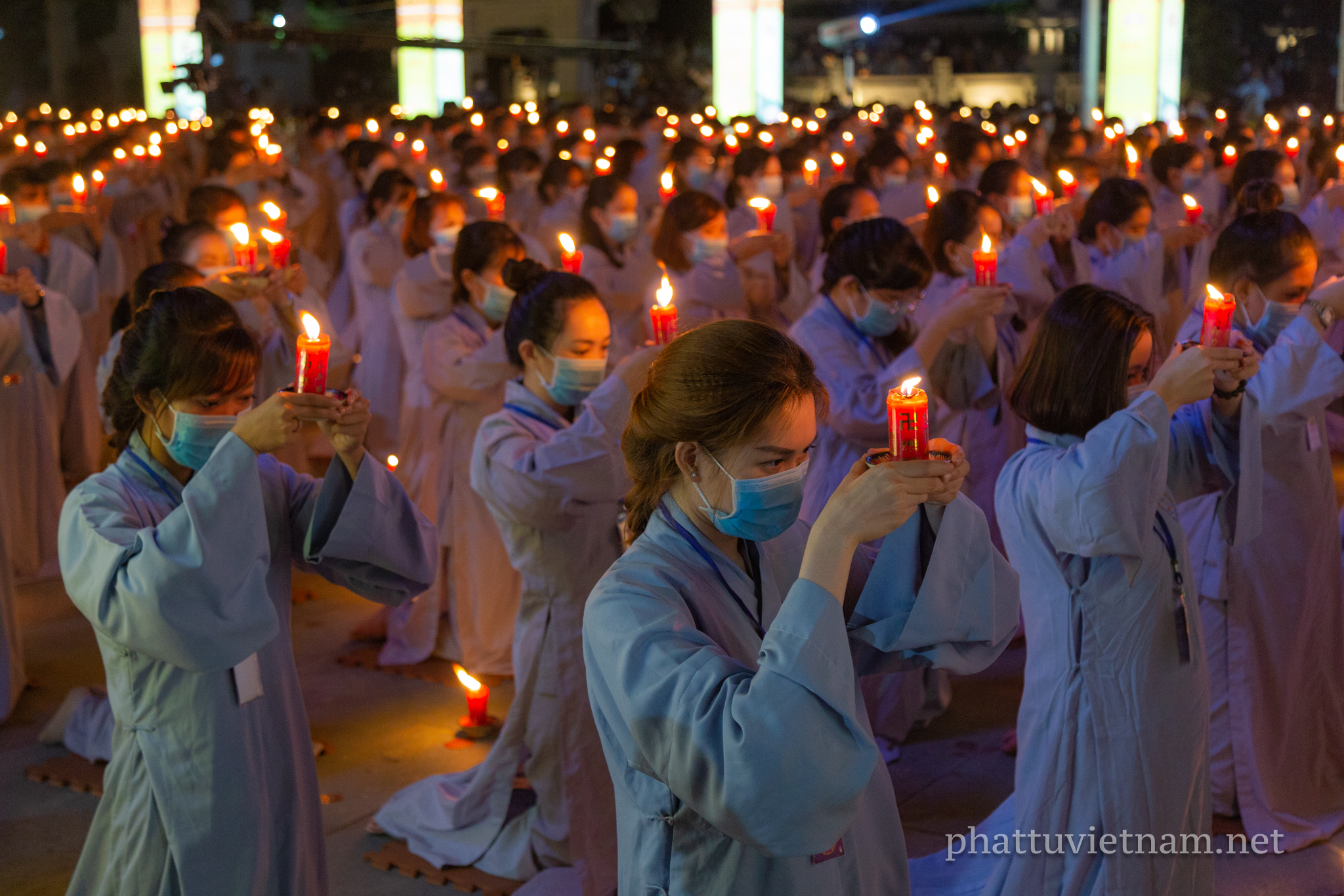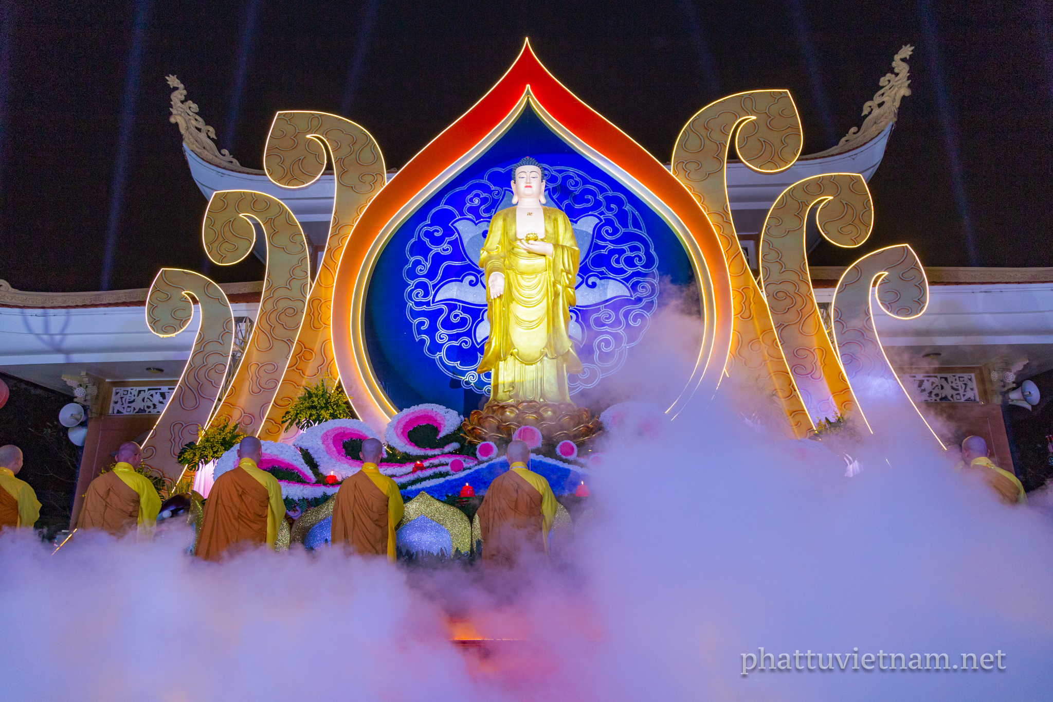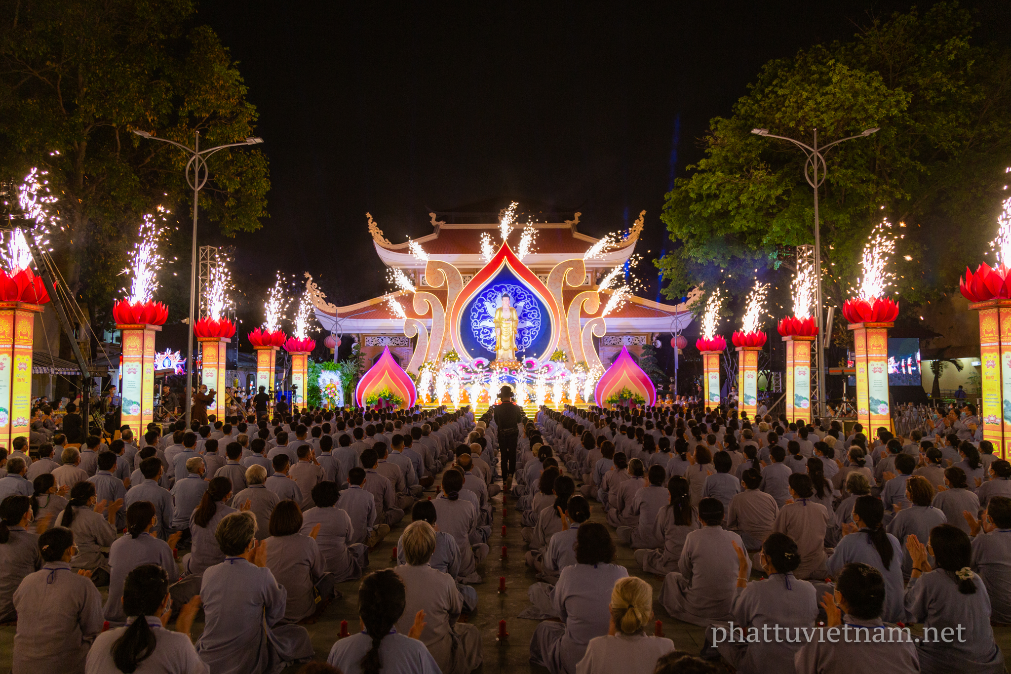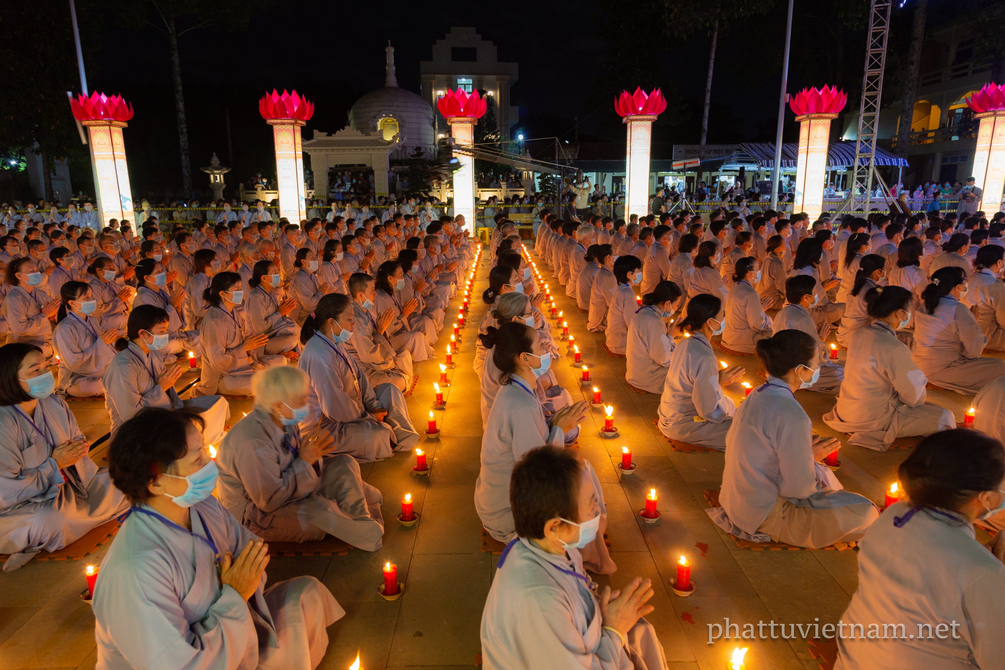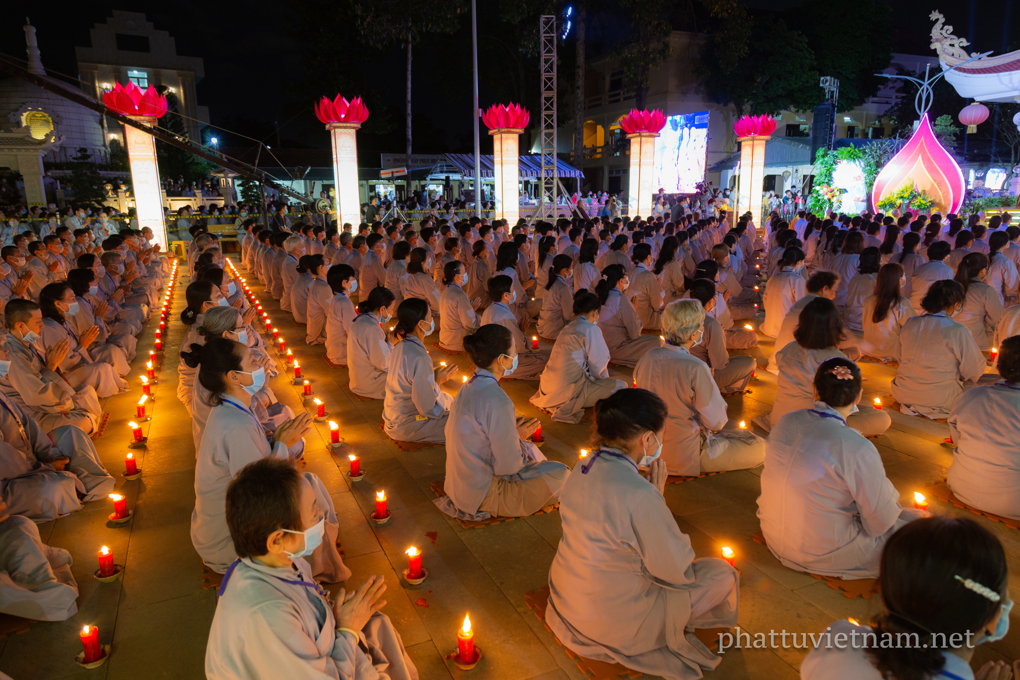 Hàng nghìn ngọn nến lung linh được thắp sáng trong đêm hoa đăng kỷ niệm ngày khánh đản của Đức Từ Phụ A Di Đà, những điều cao đẹp, những giá trị đạo đức thiêng liêng cao cả nhất, được tôn vinh và đưa vào đời sống cộng đồng. Chính những thông điệp dạt dào tình thương, tràn đầy nhân bản ấy sẽ đi vào tận cùng ngõ ngách của cuộc đời, làm cho cuộc thế thăng hoa, khiến cho trái tim con người rung động quay về nương tựa Ngài – đấng Thiện Thệ A Di Đà – vị cha lành của bốn loài, đấng toàn tri trong ba cõi.