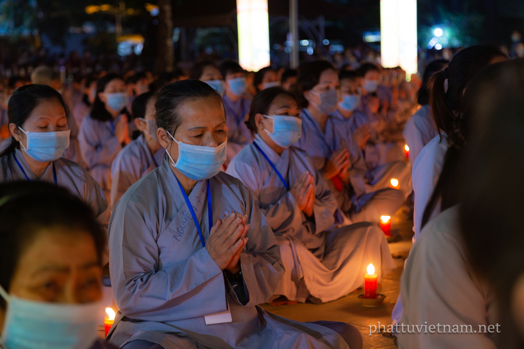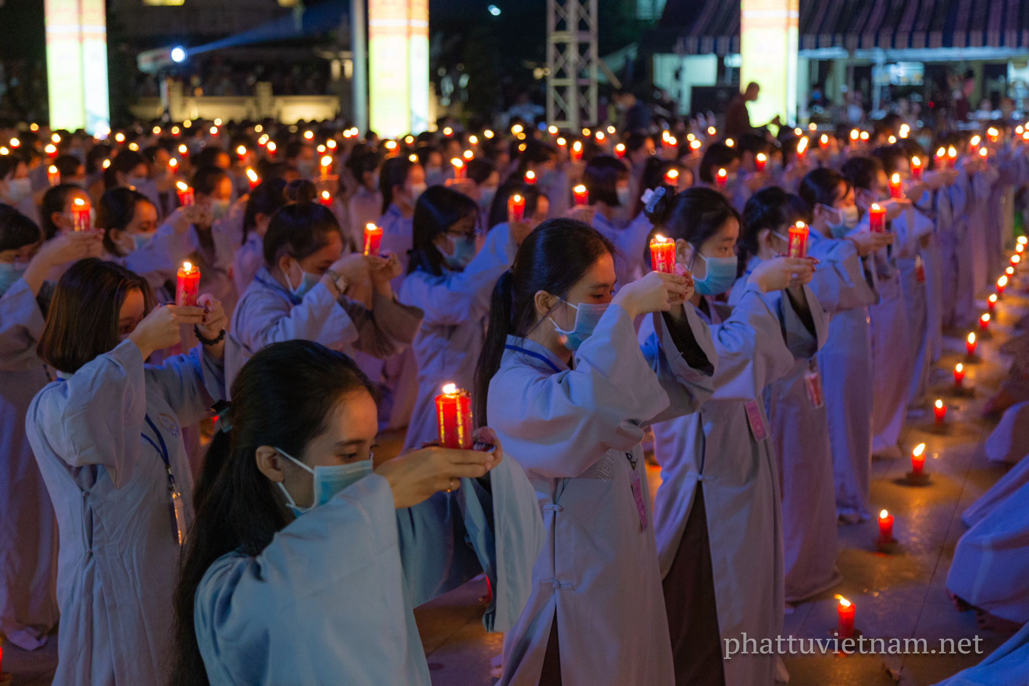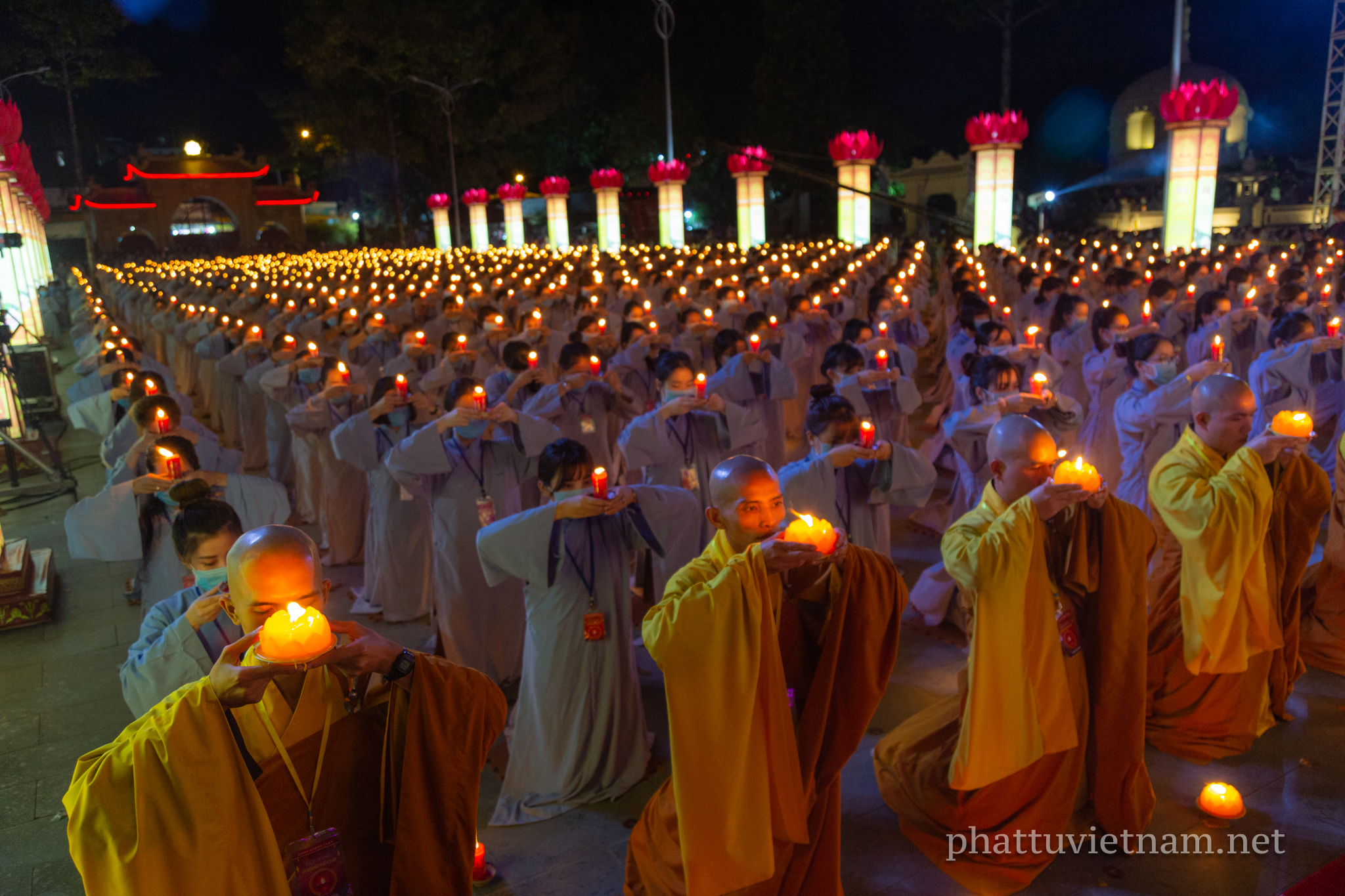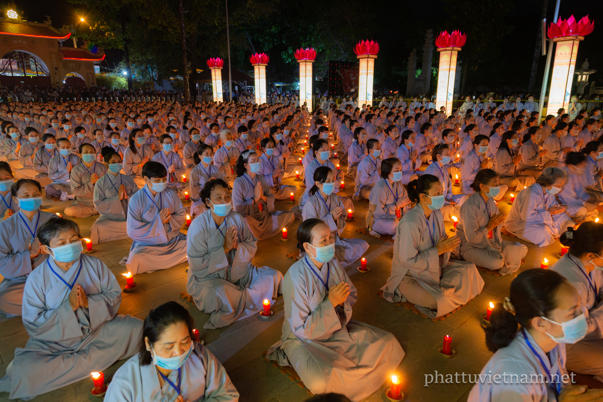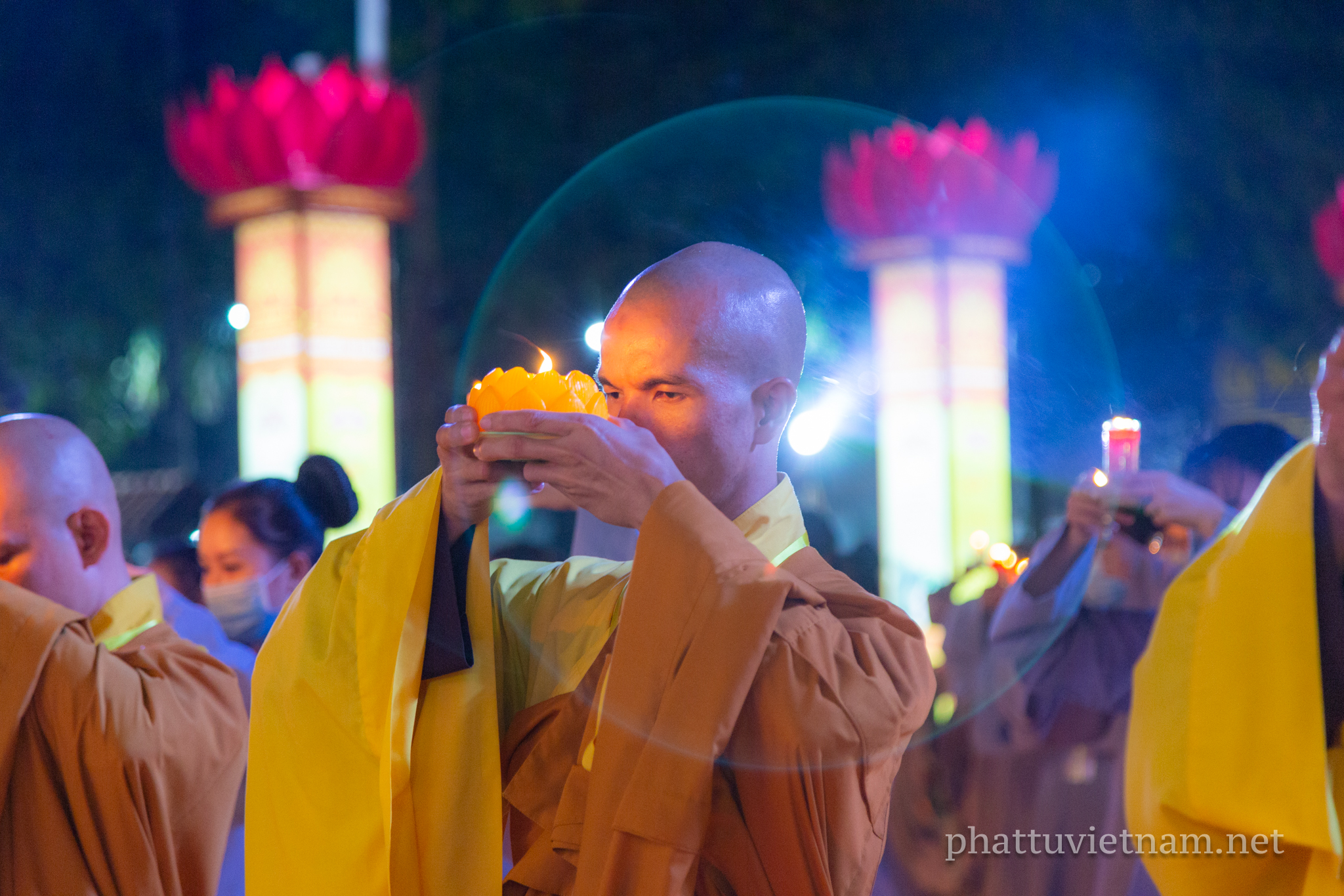 Hàng nghìn ngọn nến lung linh được thắp sáng trong đêm hoa đăng kỷ niệm ngày khánh đản của Đức Từ Phụ A Di Đà, những điều cao đẹp, những giá trị đạo đức thiêng liêng cao cả nhất, được tôn vinh và đưa vào đời sống cộng đồng. Chính những thông điệp dạt dào tình thương, tràn đầy nhân bản ấy sẽ đi vào tận cùng ngõ ngách của cuộc đời, làm cho cuộc thế thăng hoa, khiến cho trái tim con người rung động quay về nương tựa Ngài – đấng Thiện Thệ A Di Đà – vị cha lành của bốn loài, đấng toàn tri trong ba cõi.
