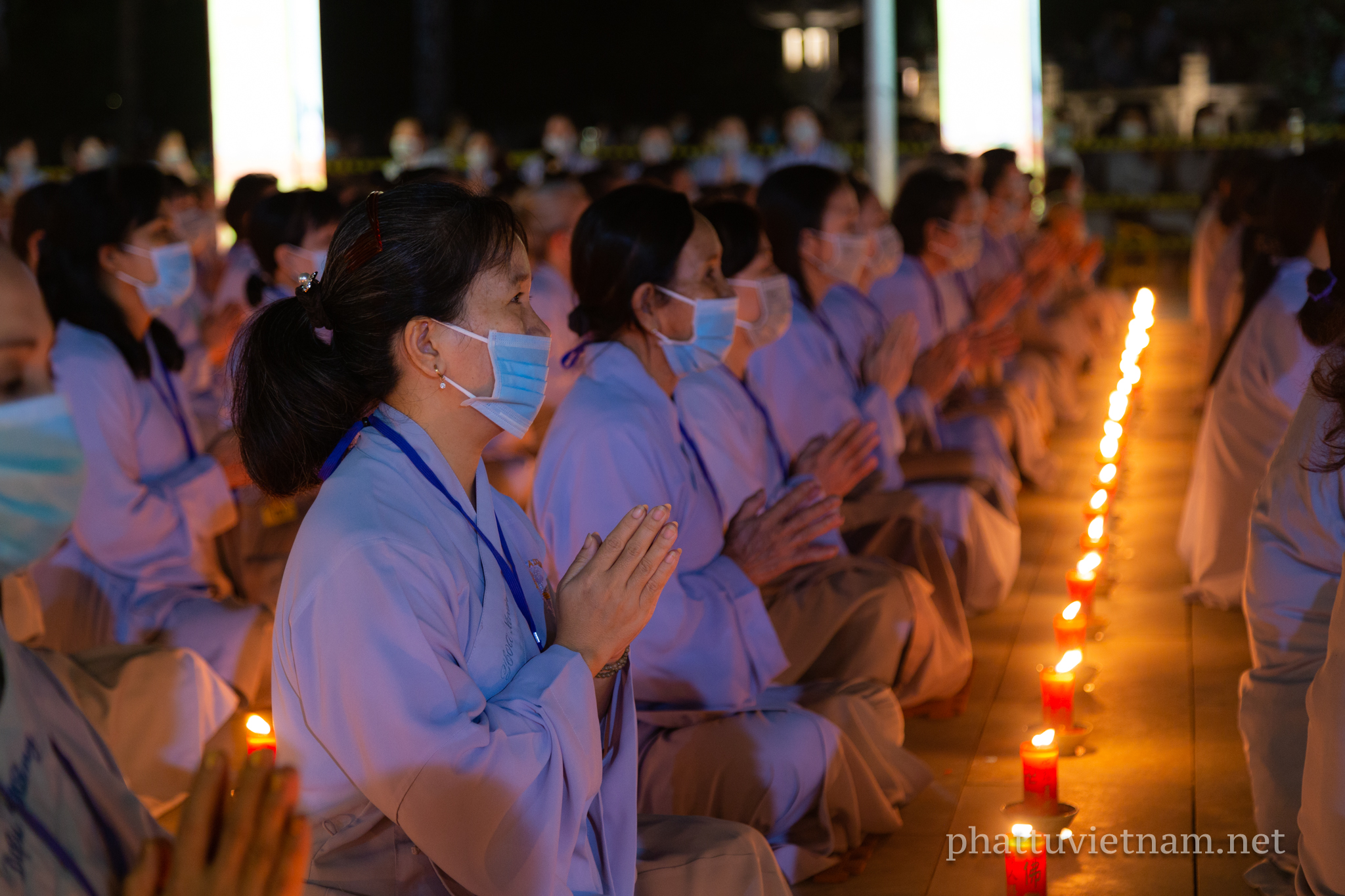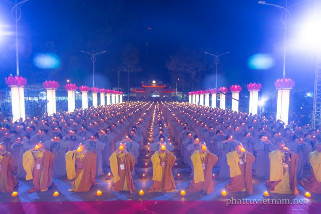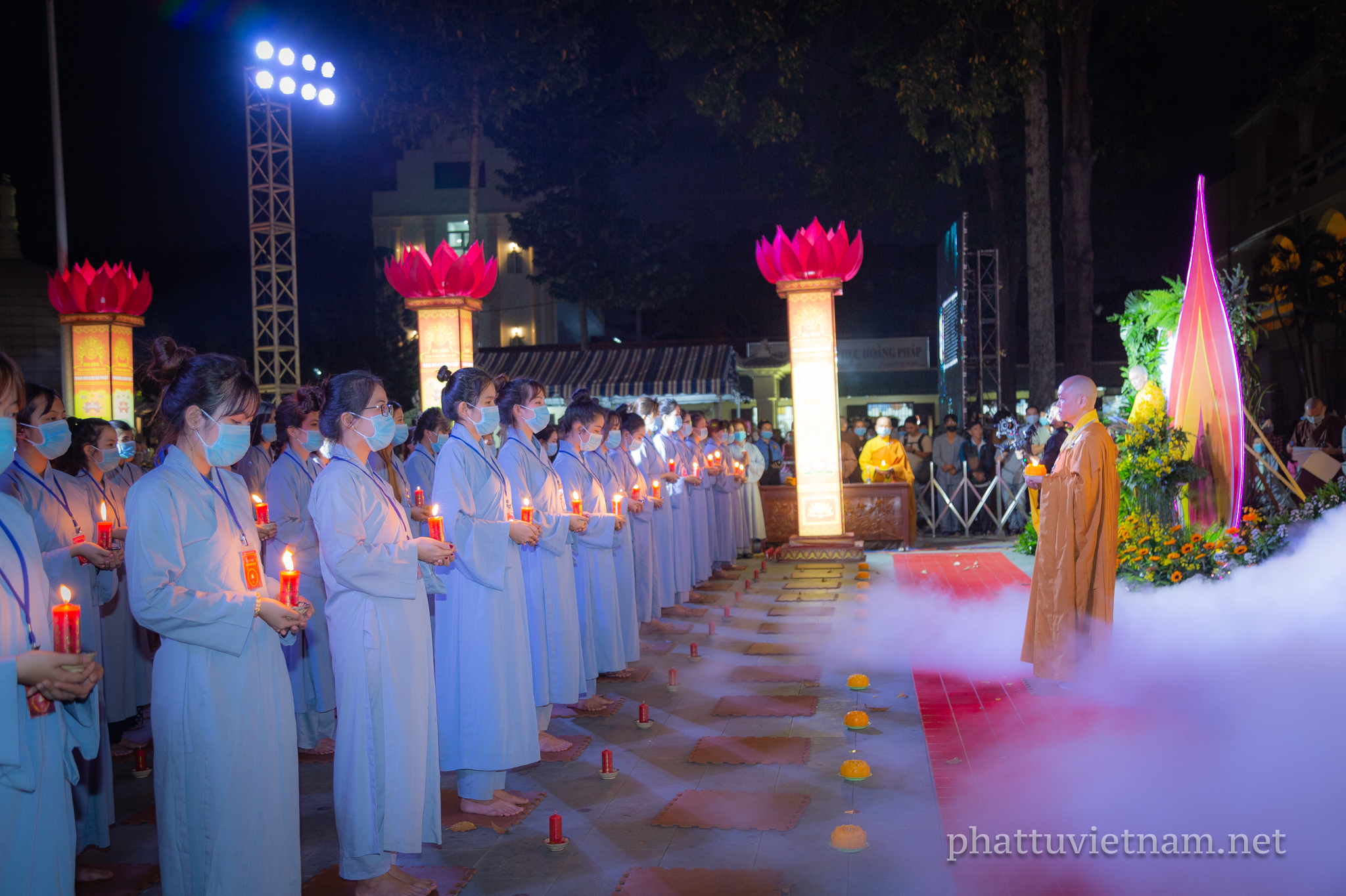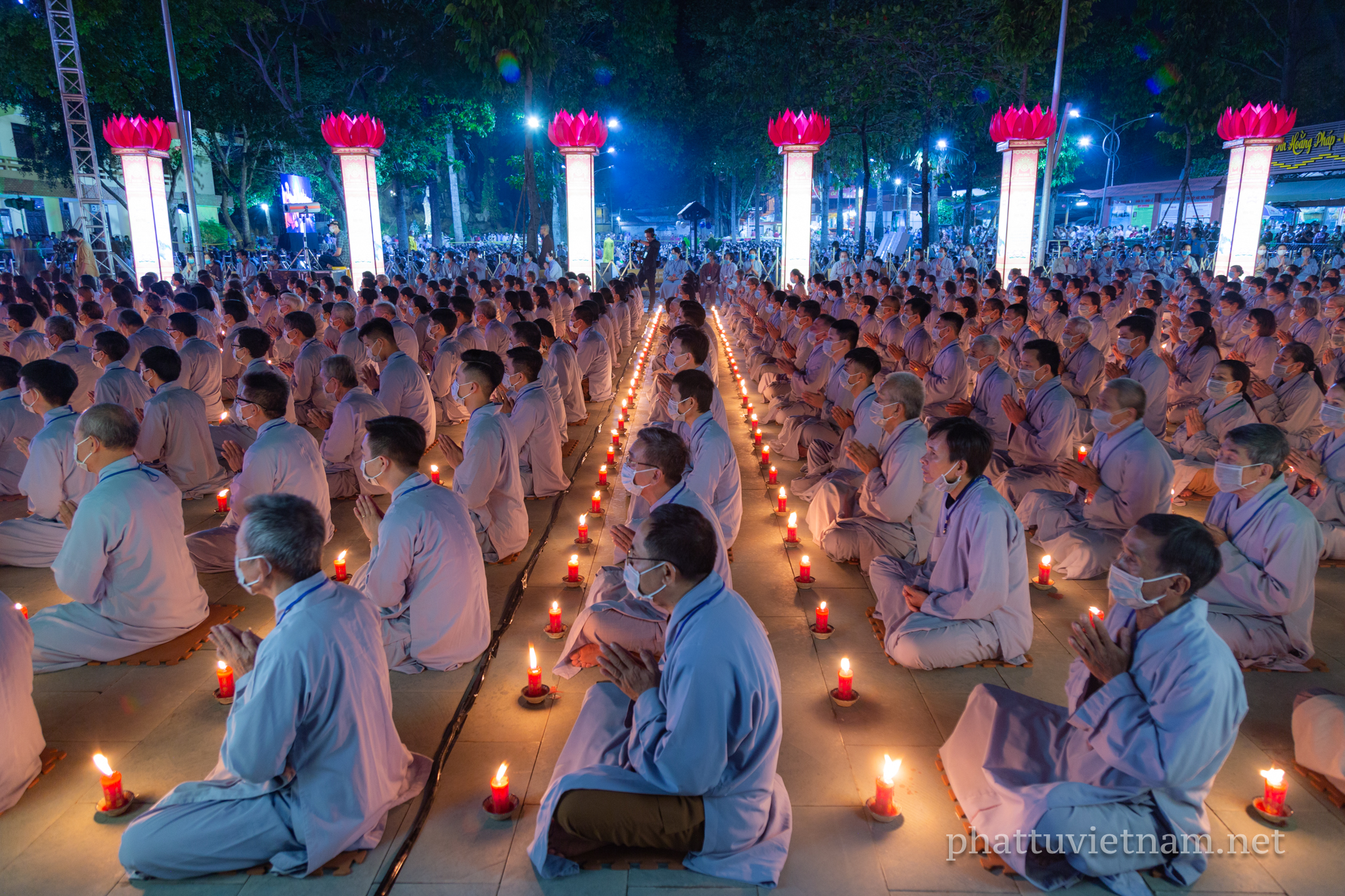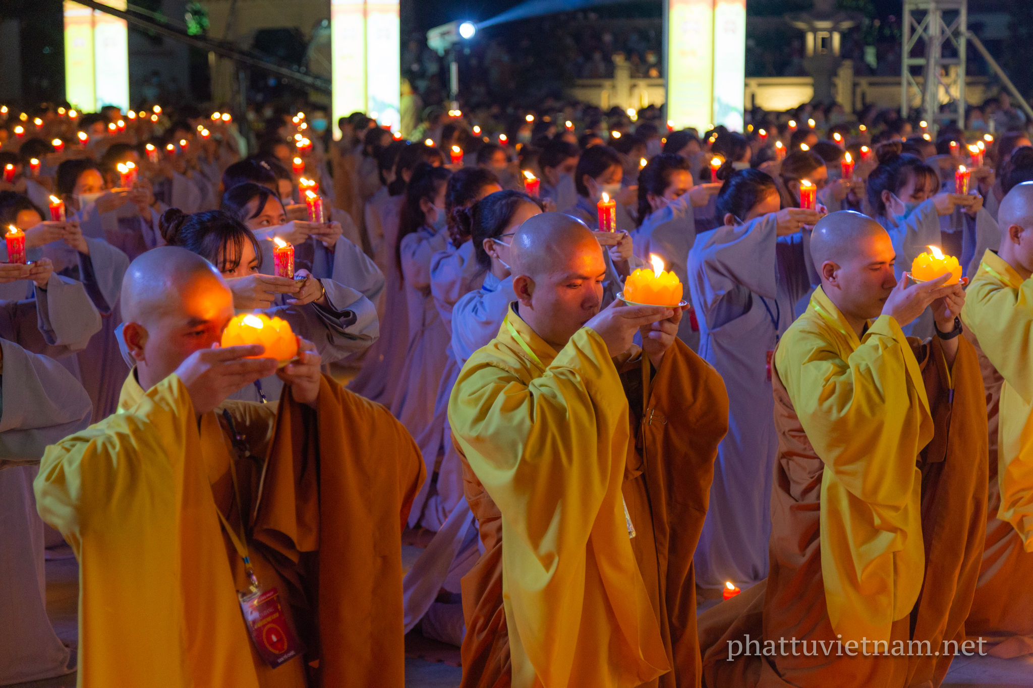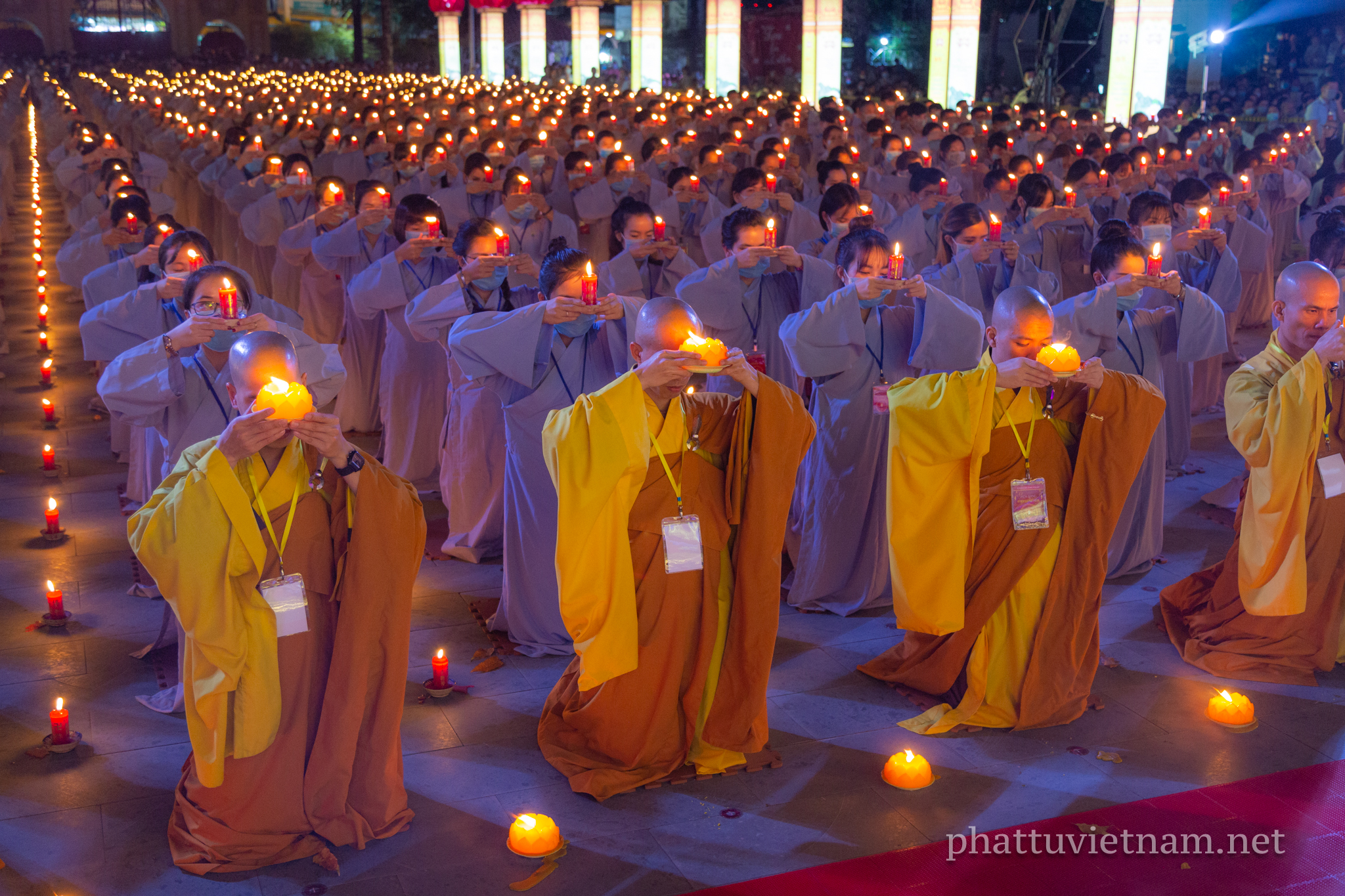 Hàng nghìn ngọn nến lung linh được thắp sáng trong đêm hoa đăng kỷ niệm ngày khánh đản của Đức Từ Phụ A Di Đà, những điều cao đẹp, những giá trị đạo đức thiêng liêng cao cả nhất, được tôn vinh và đưa vào đời sống cộng đồng. Chính những thông điệp dạt dào tình thương, tràn đầy nhân bản ấy sẽ đi vào tận cùng ngõ ngách của cuộc đời, làm cho cuộc thế thăng hoa, khiến cho trái tim con người rung động quay về nương tựa Ngài – đấng Thiện Thệ A Di Đà – vị cha lành của bốn loài, đấng toàn tri trong ba cõi.
