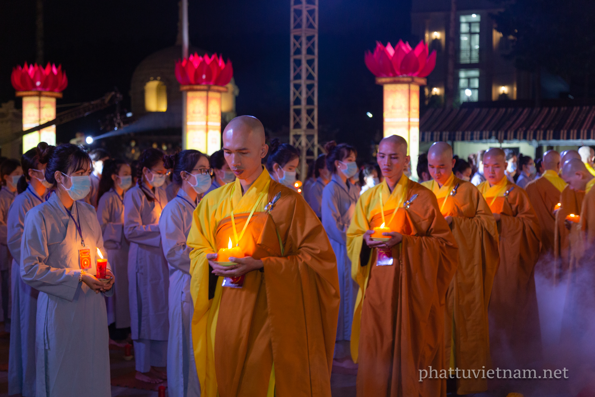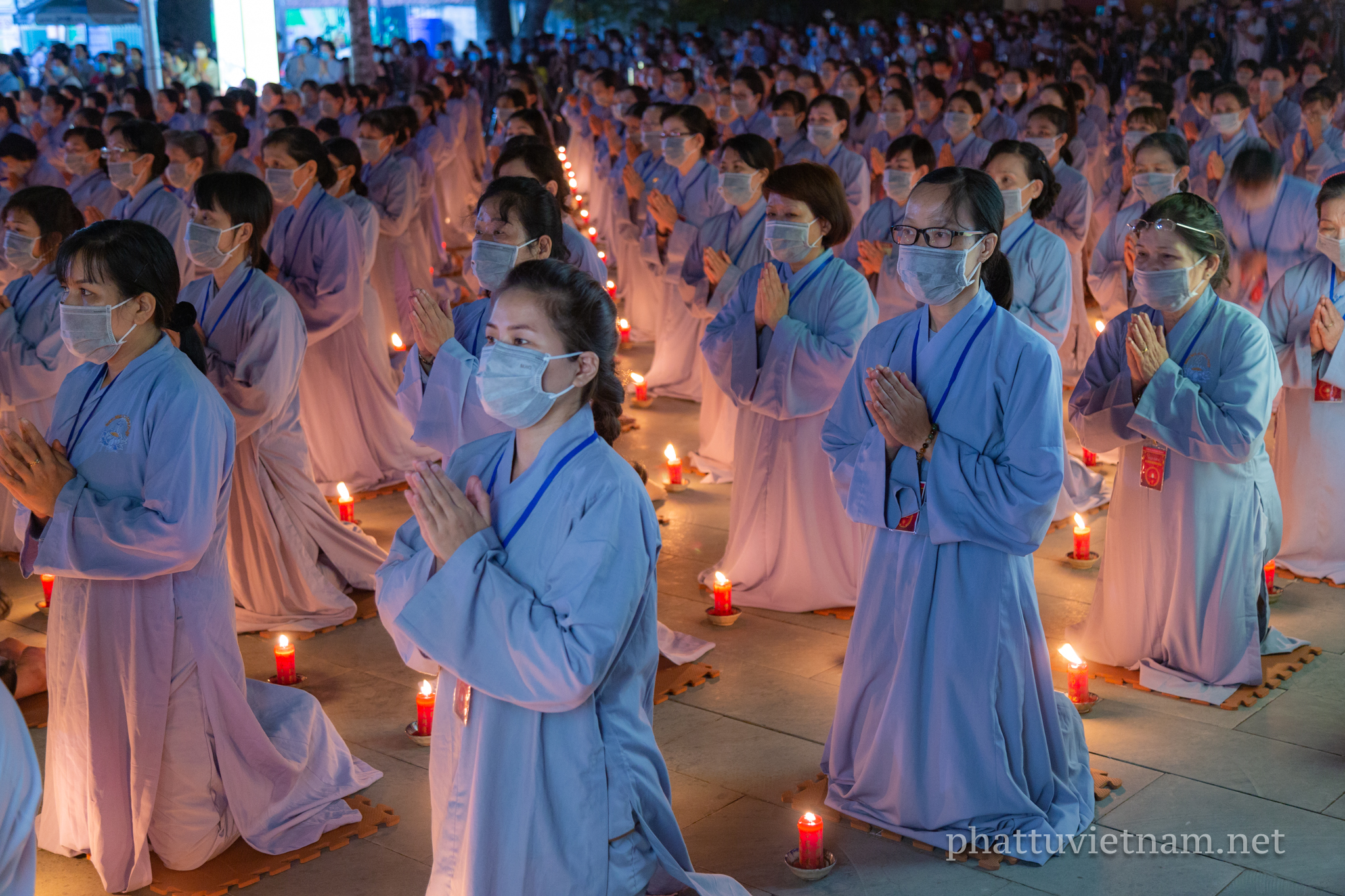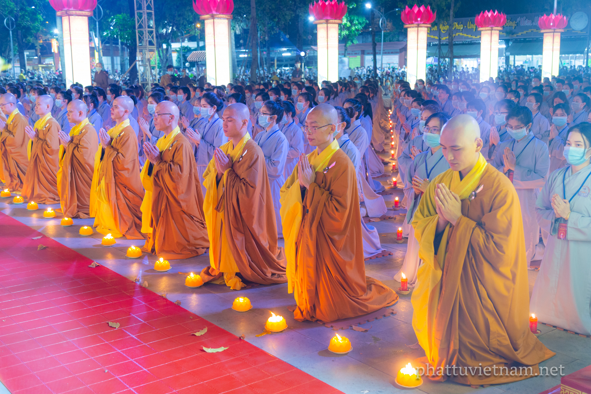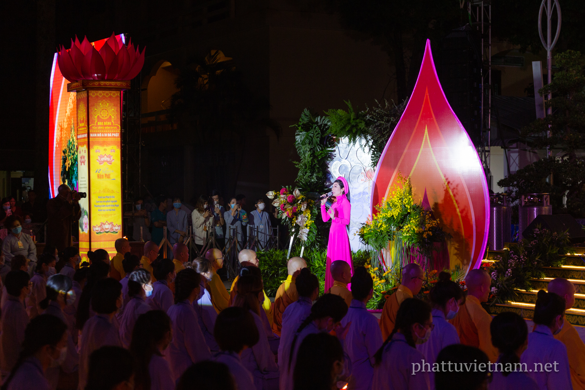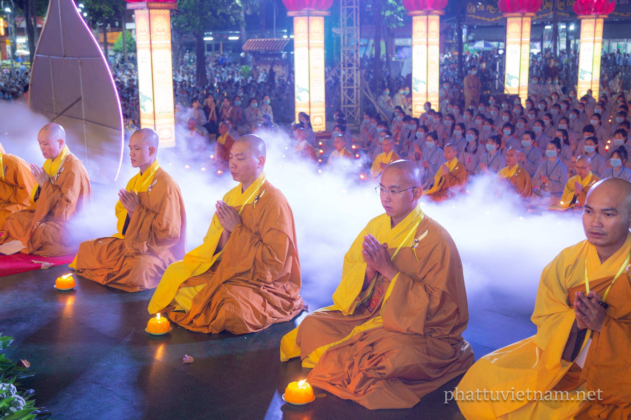 Hàng nghìn ngọn nến lung linh được thắp sáng trong đêm hoa đăng kỷ niệm ngày khánh đản của Đức Từ Phụ A Di Đà, những điều cao đẹp, những giá trị đạo đức thiêng liêng cao cả nhất, được tôn vinh và đưa vào đời sống cộng đồng. Chính những thông điệp dạt dào tình thương, tràn đầy nhân bản ấy sẽ đi vào tận cùng ngõ ngách của cuộc đời, làm cho cuộc thế thăng hoa, khiến cho trái tim con người rung động quay về nương tựa Ngài – đấng Thiện Thệ A Di Đà – vị cha lành của bốn loài, đấng toàn tri trong ba cõi.