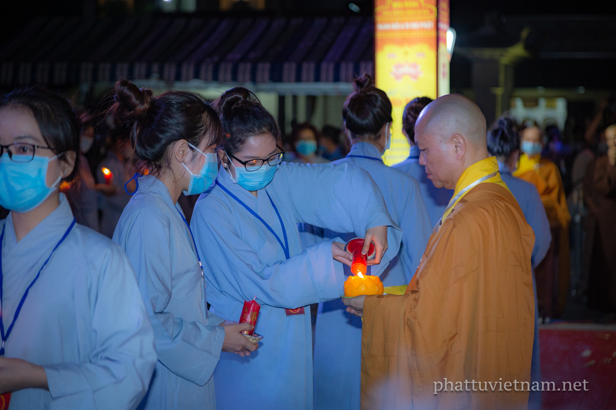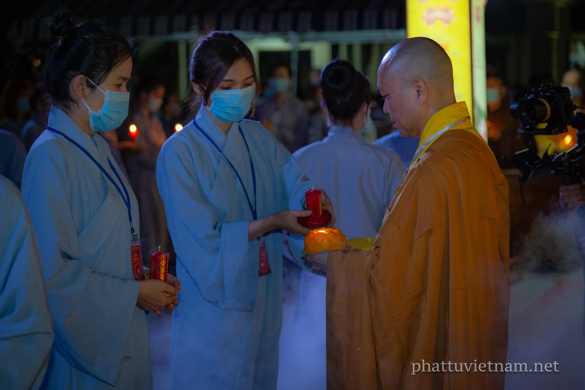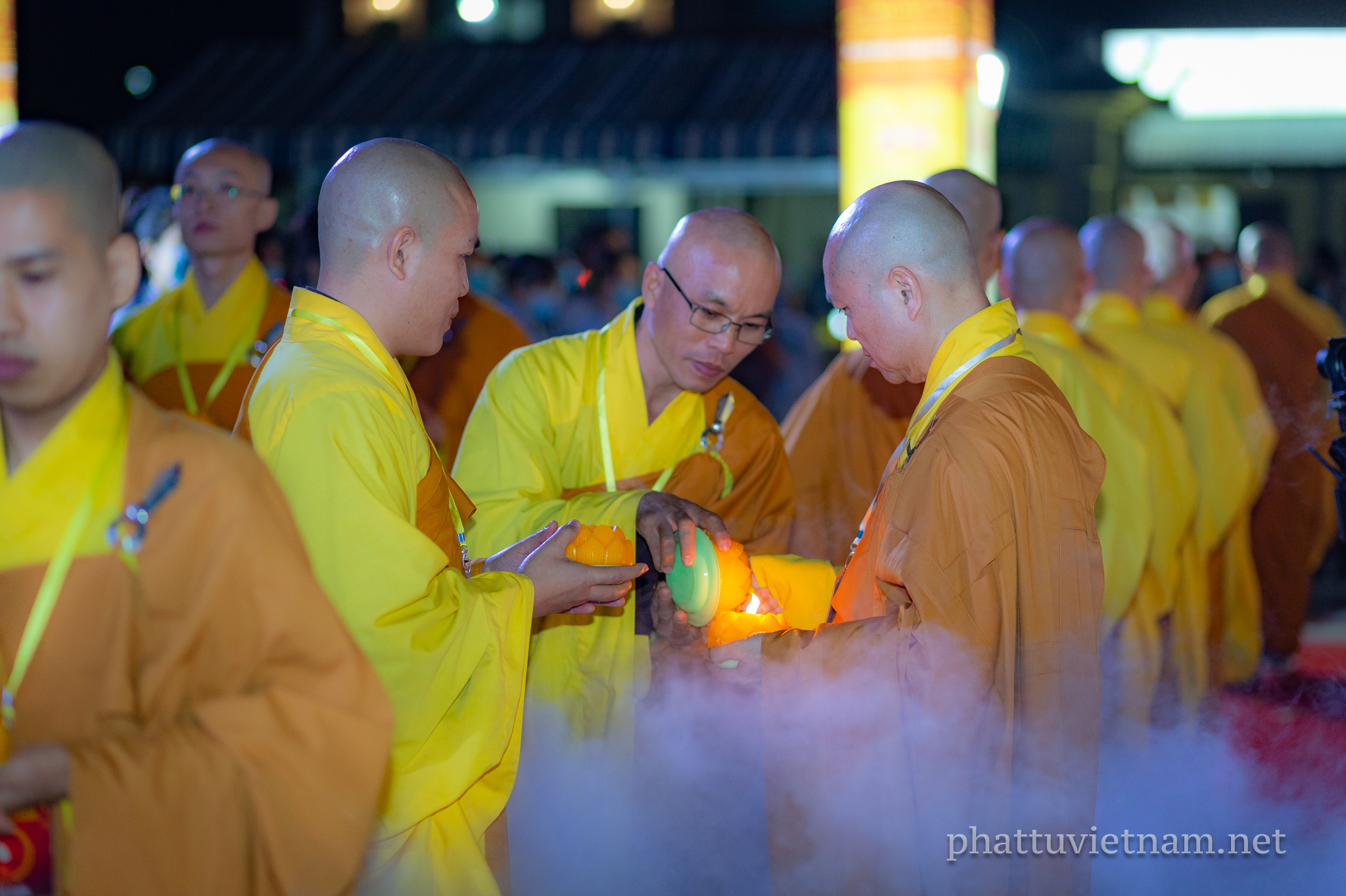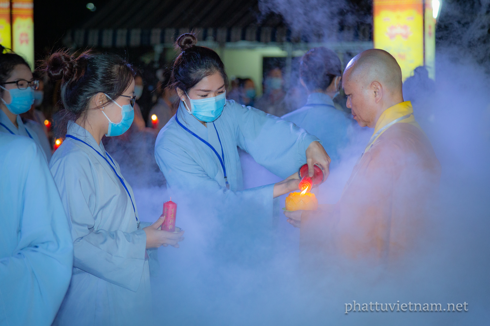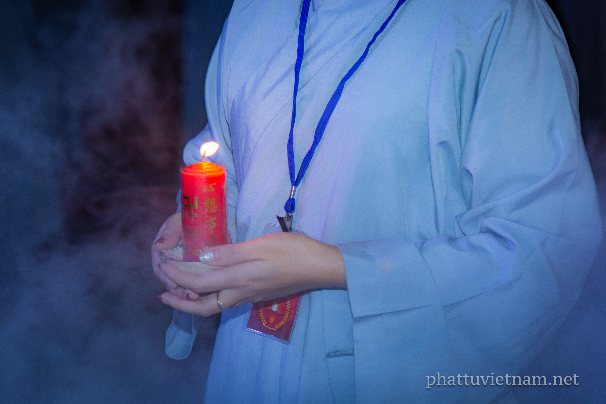 Sau diễn văn khai mạc, hội chúng đối trước tôn dung Đức Phật A Di Đà cử hành nghi thức truyền đăng. Chư Tôn đức đã niêm hương, bạch Phật, khai kinh cầu nguyện và thực hiện nghi thức thắp nến, đại chúng hòa trong tiếng niệm tôn hiệu đức Phật A Di Đà. Đồng thời, ánh sáng lung linh từ ngọn nến trên tay Thượng toạ Trụ trì bắt đầu lan tỏa đến chư Tôn đức Tăng Ni và hàng Phật tử, như ánh sáng của trí tuệ, chiếu soi vào dòng đời, phá tan màn vô minh si ám, thắp sáng niềm tin và sự hy vọng. Và từ ngọn nến được truyền đầu tiên ấy, ánh sáng cứ tiếp tục truyền đi, một vùng sáng đã dần dần lan tỏa.