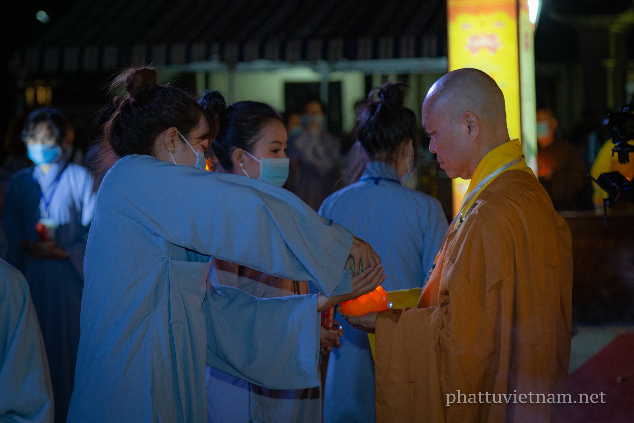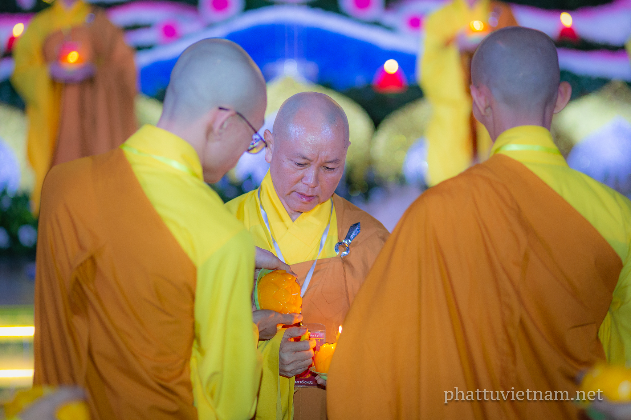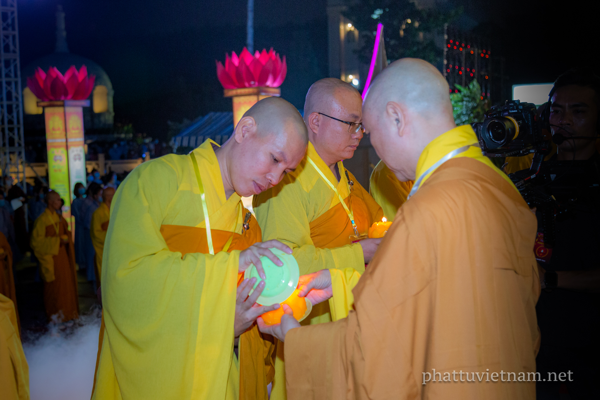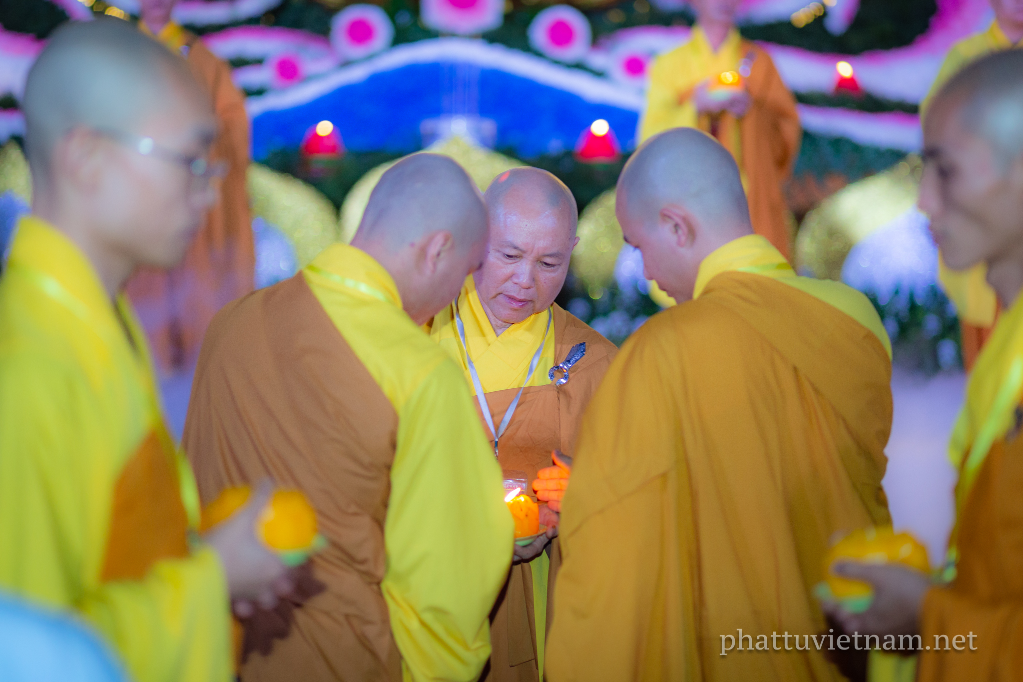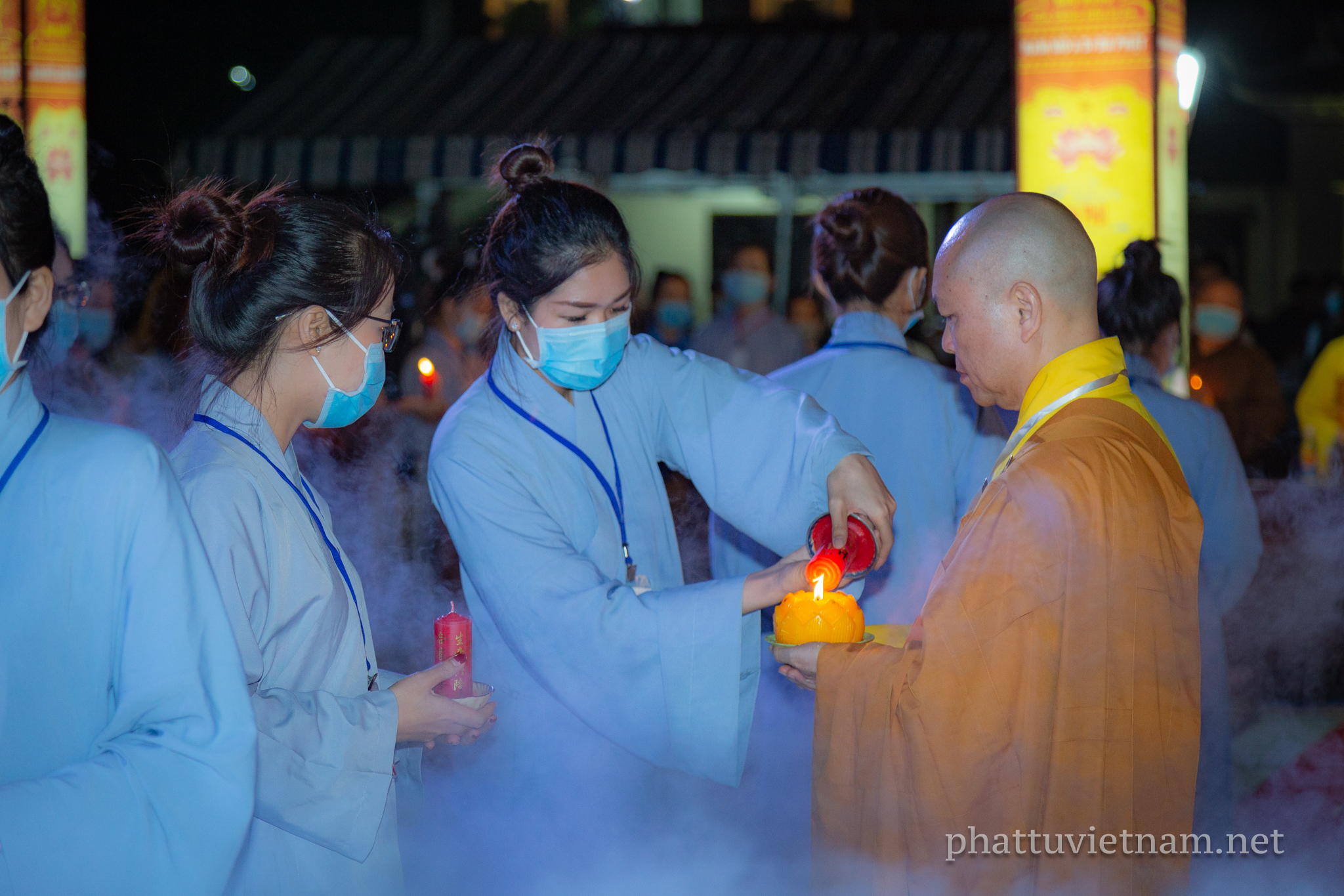Sau diễn văn khai mạc, hội chúng đối trước tôn dung Đức Phật A Di Đà cử hành nghi thức truyền đăng. Chư Tôn đức đã niêm hương, bạch Phật, khai kinh cầu nguyện và thực hiện nghi thức thắp nến, đại chúng hòa trong tiếng niệm tôn hiệu đức Phật A Di Đà. Đồng thời, ánh sáng lung linh từ ngọn nến trên tay Thượng toạ Trụ trì bắt đầu lan tỏa đến chư Tôn đức Tăng Ni và hàng Phật tử, như ánh sáng của trí tuệ, chiếu soi vào dòng đời, phá tan màn vô minh si ám, thắp sáng niềm tin và sự hy vọng. Và từ ngọn nến được truyền đầu tiên ấy, ánh sáng cứ tiếp tục truyền đi, một vùng sáng đã dần dần lan tỏa.