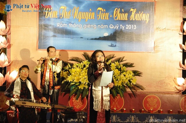 Trang chủ Văn hóa Chùm ảnh: Đêm thơ Nguyên tiêu tại chùa Hương Văn hóa Chùm ảnh: Đêm thơ Nguyên tiêu tại chùa Hương Bởi (phattuvietnam.net) - 26 Tháng Hai, 2013 Facebook Twitter Google+ Pinterest WhatsApp Email Print Viber Tham gia chương trình có các nghệ sĩ đến từ Đài Tiếng nói Việt Nam, Nhà hát ca múa nhạc Việt Nam… Ngoài các tiết mục ngâm thơ còn có tiết mục hát ca khúc phổ thơ về Chùa Hương. Chương trình do NSƯT Việt Hương – Đài truyền hình Việt Nam đạo diễn.